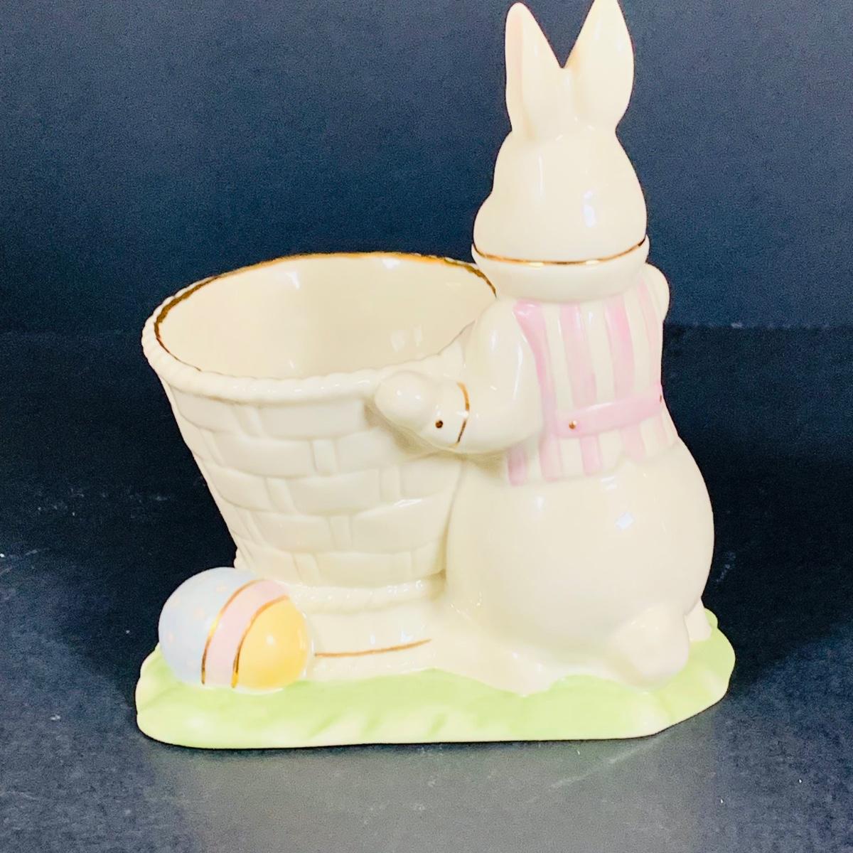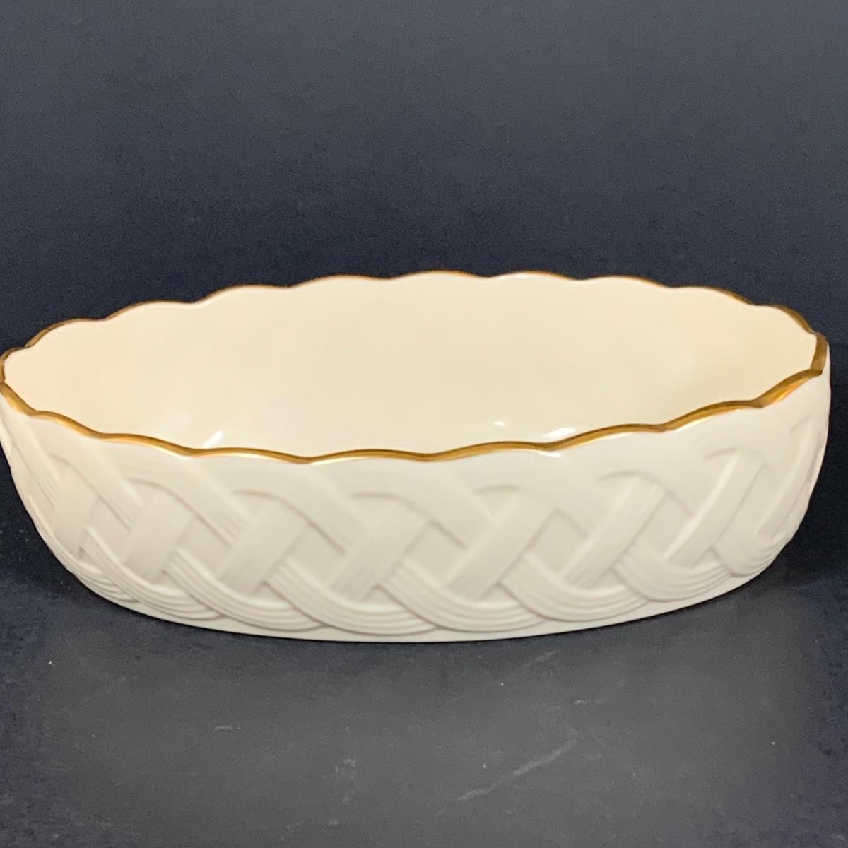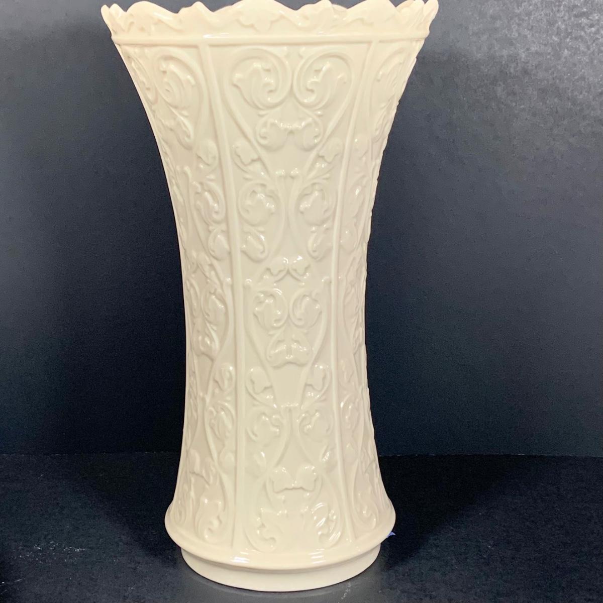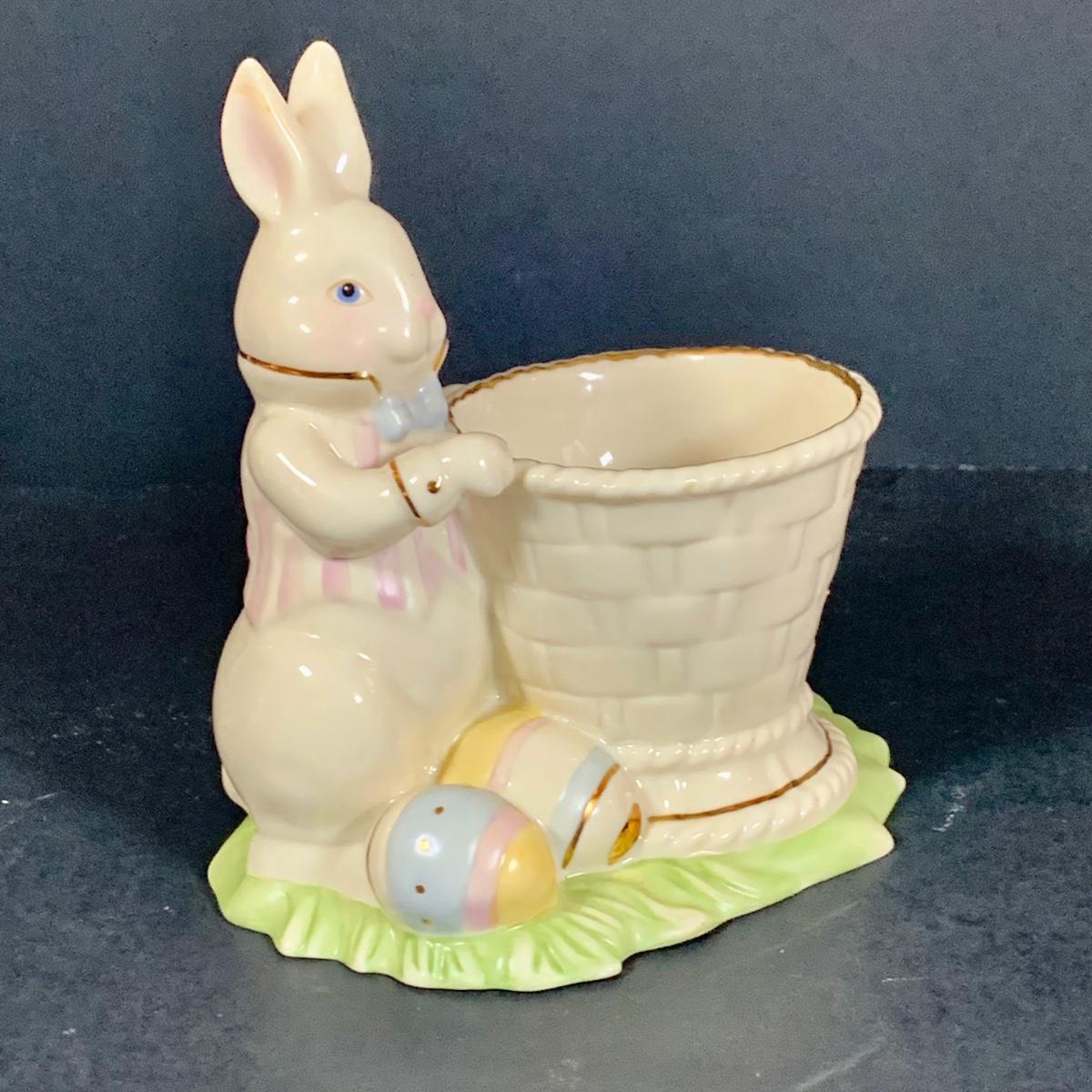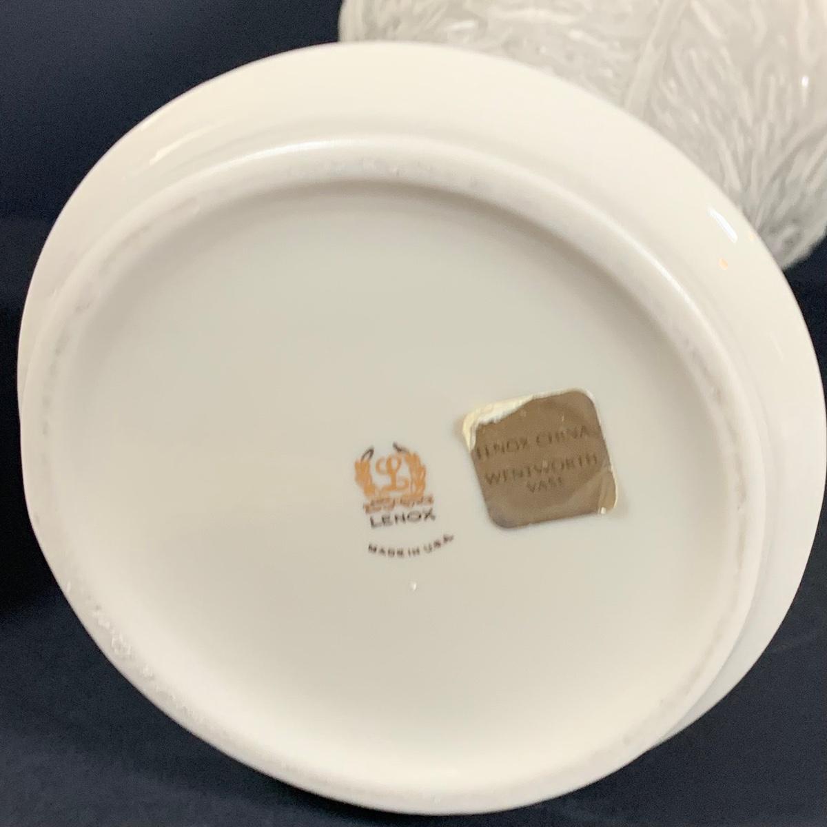 LOT 202: Tall Lenox Wentworth Vase, Lenox Lattice Oval Server and Lenox Easter Bunny Votive Candle Holder