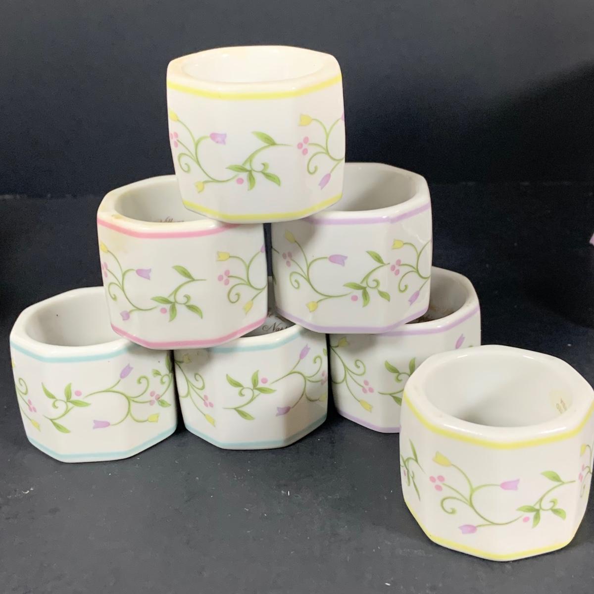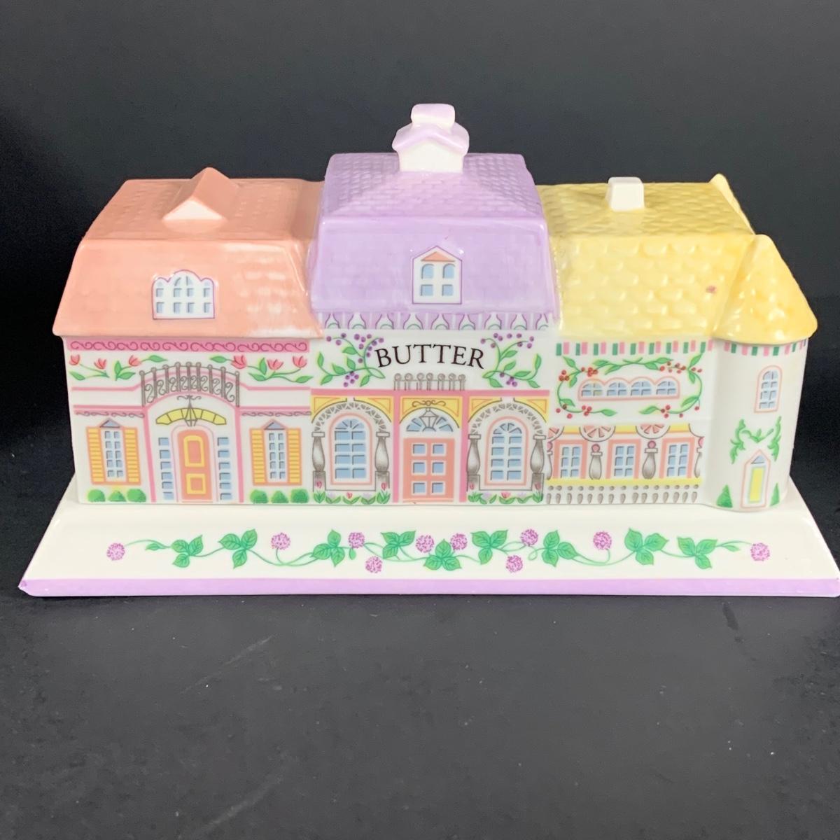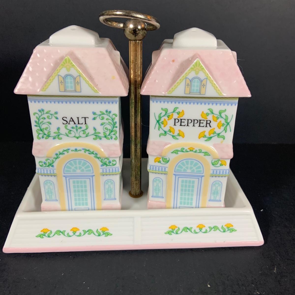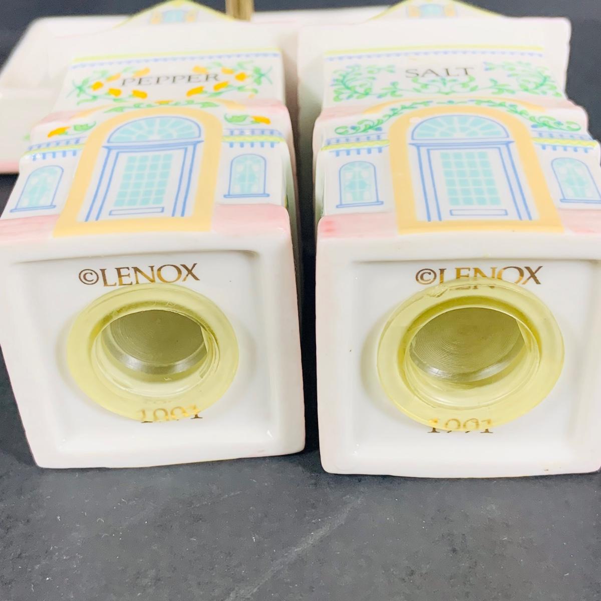 LOT205: Lenox The Love Village Butter Dish, Salt and Pepper Shakers with Caddie and Napkin Rings