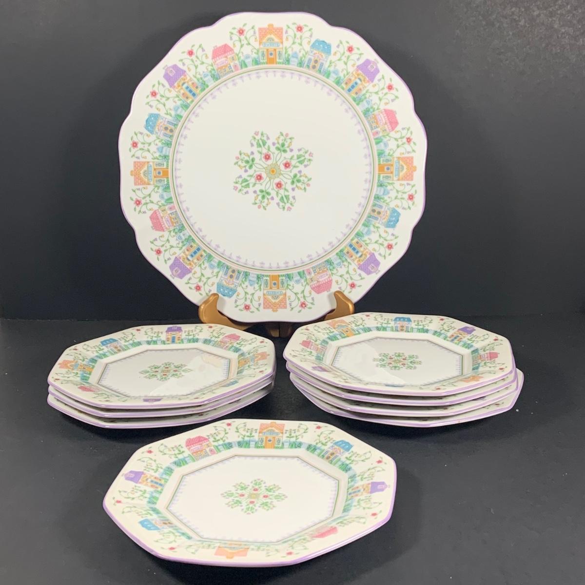LOT 208: Lenox The Love Village Cake Plate and Set of Eight (8) Desert Plates