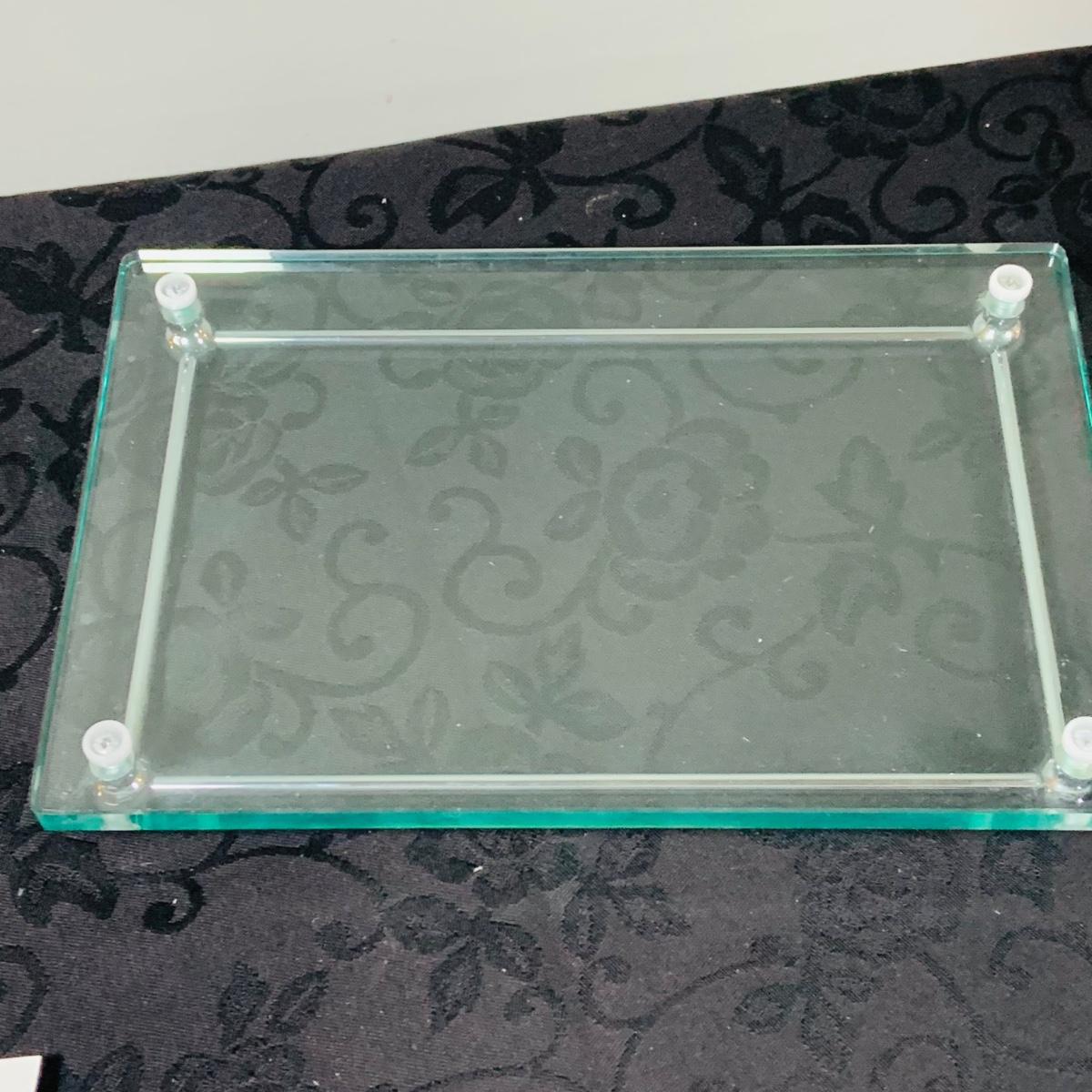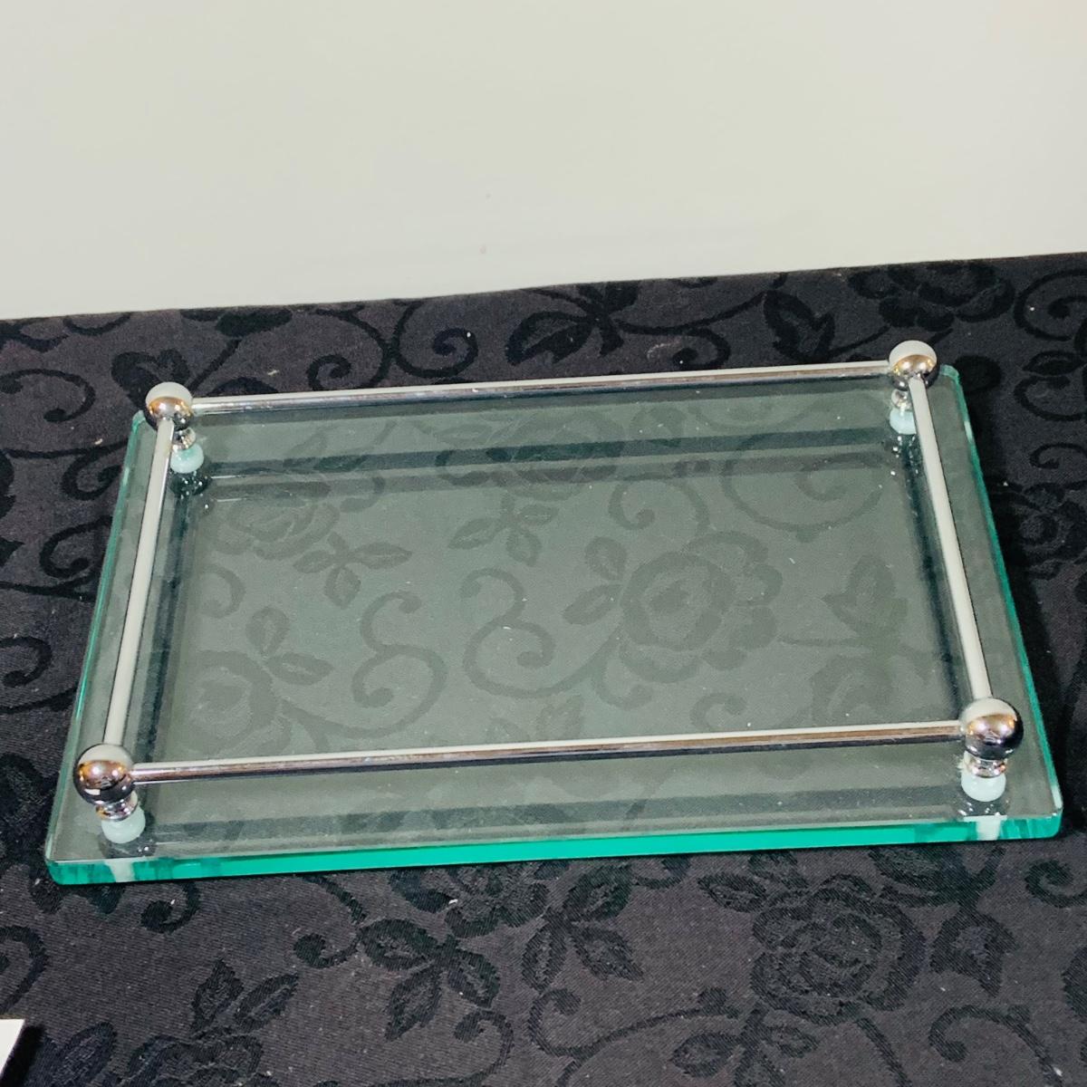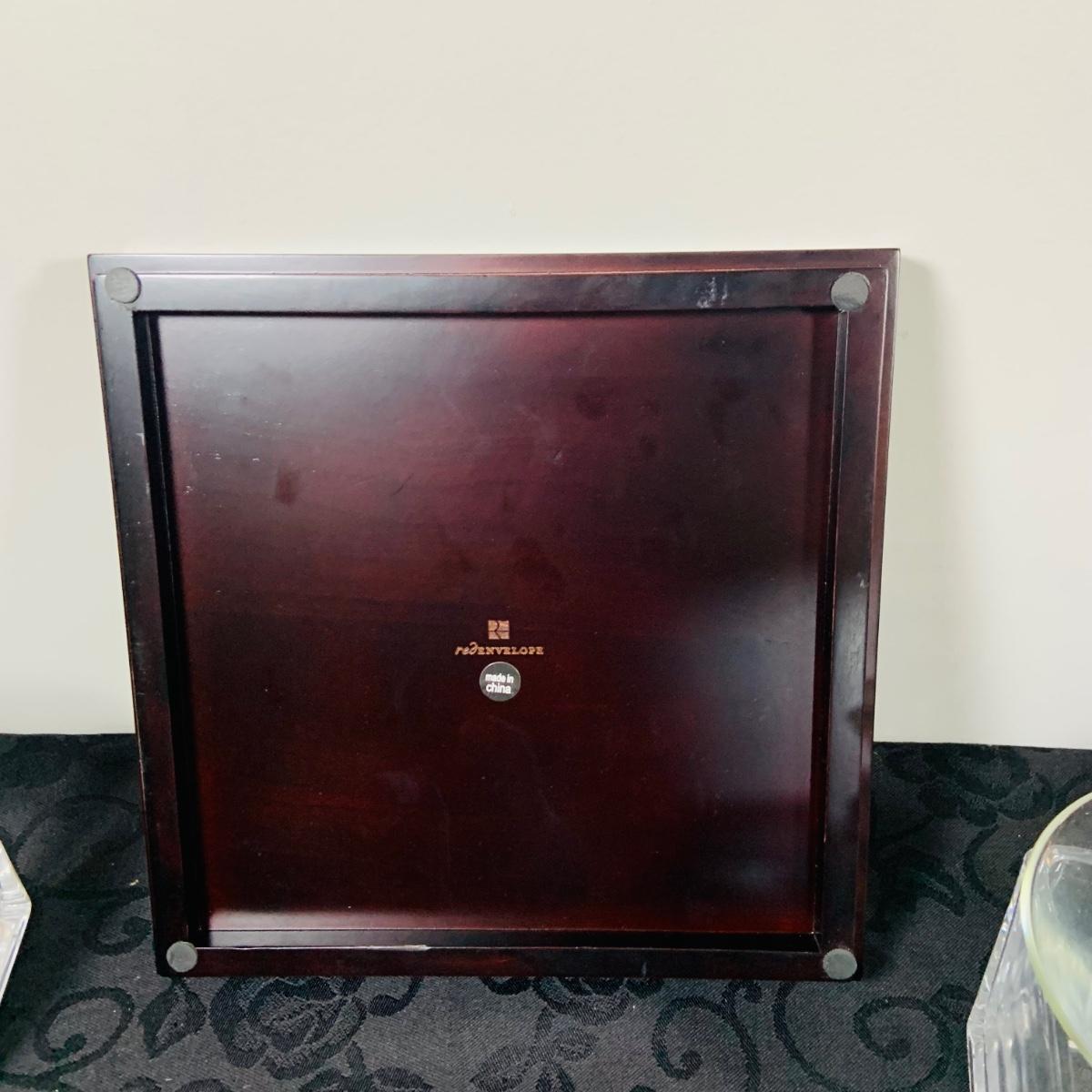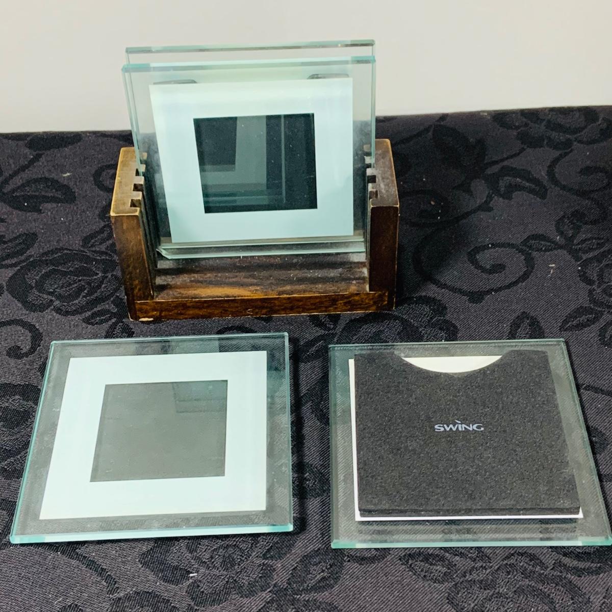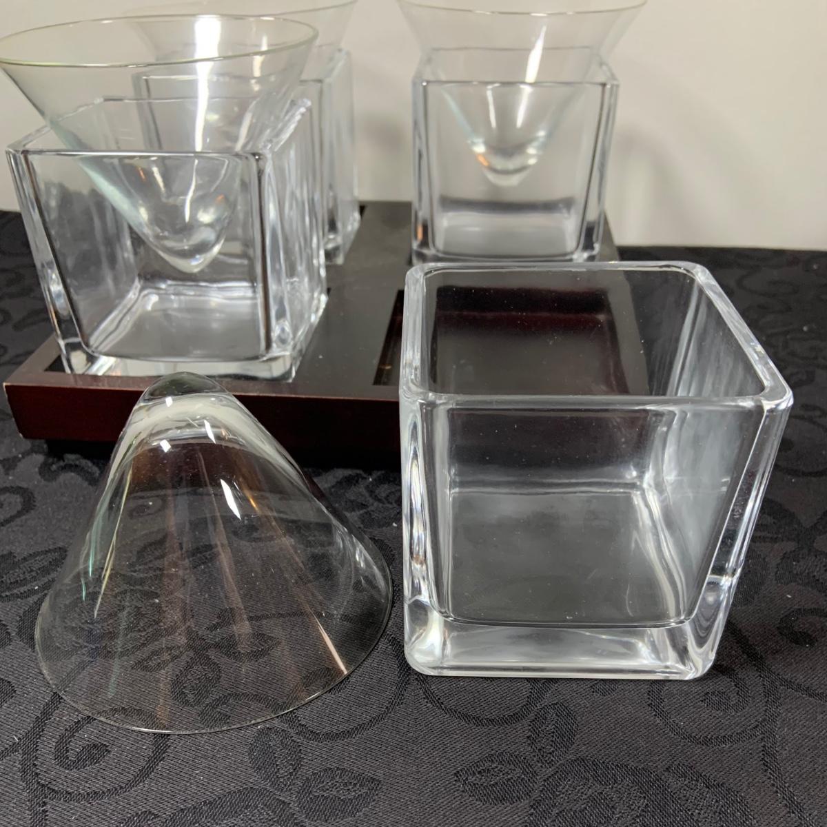 LOT216: For the Modern Bar - Red Envelope Cubist Martini Glass Set with Tray, Swing Glass Picture Frame Coasters, and Glass Tray