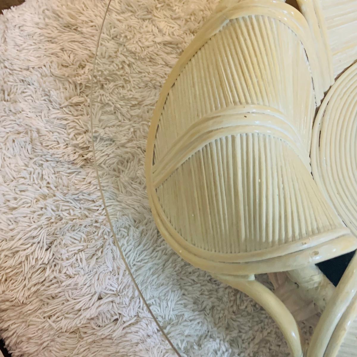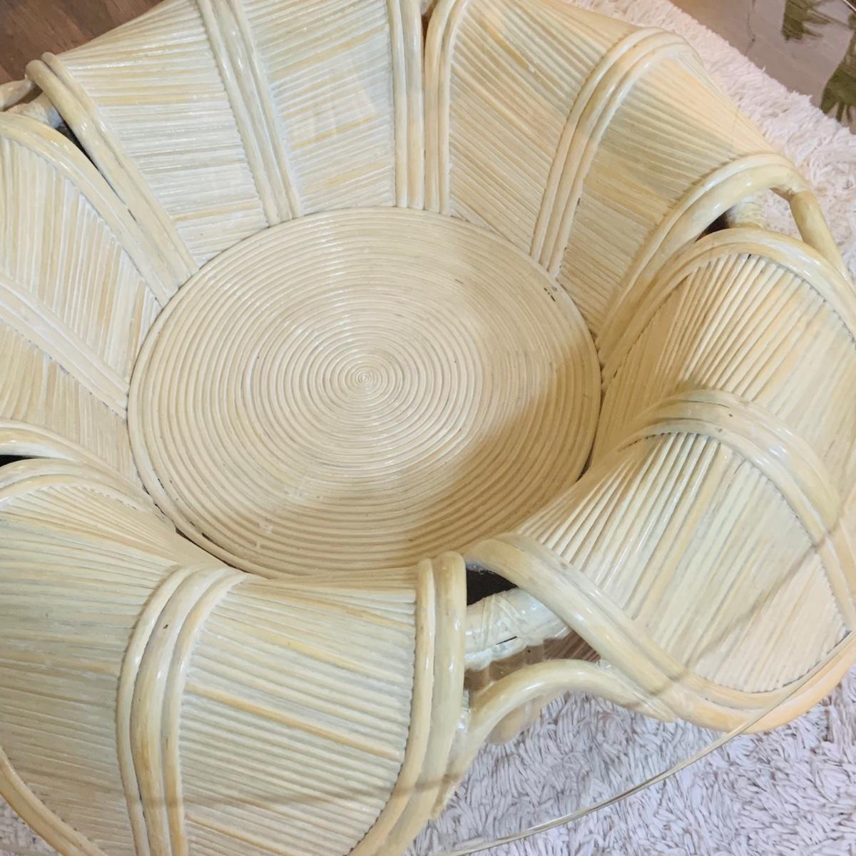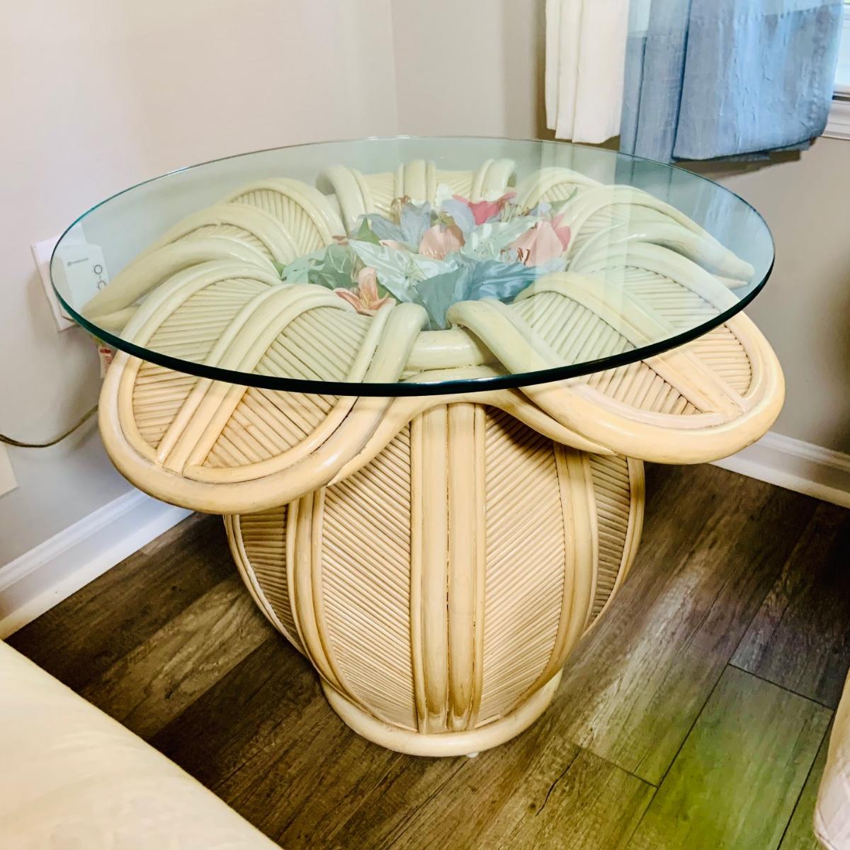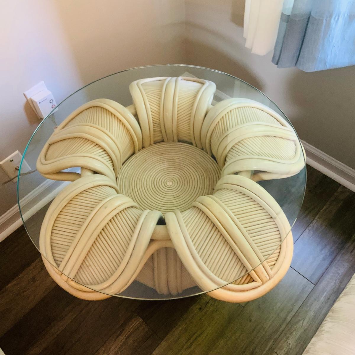 LOT 218: Rattan Split Reed Bell Flower Side and Coffee Tables with Glass Tops