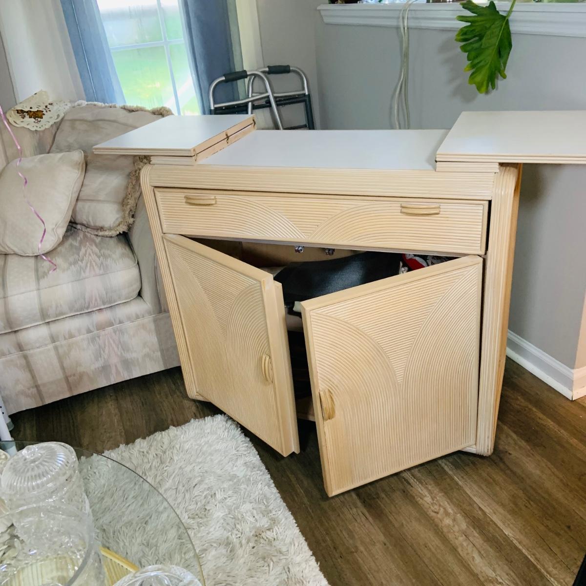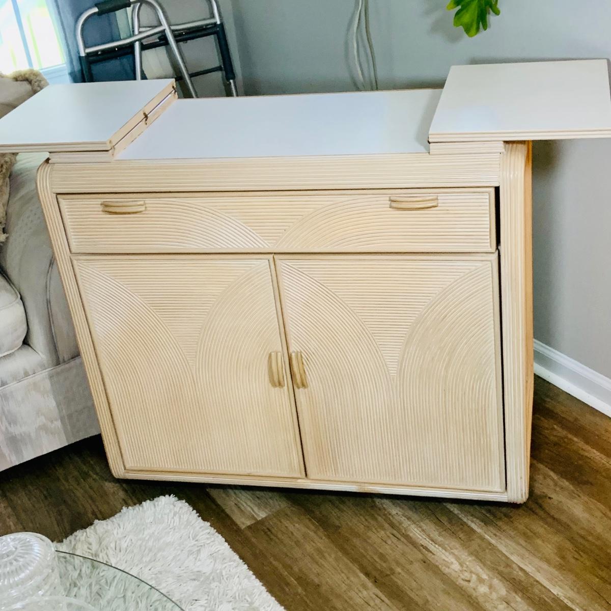 LOT 221: Pencil Reed Rattan Serving Bar Cart