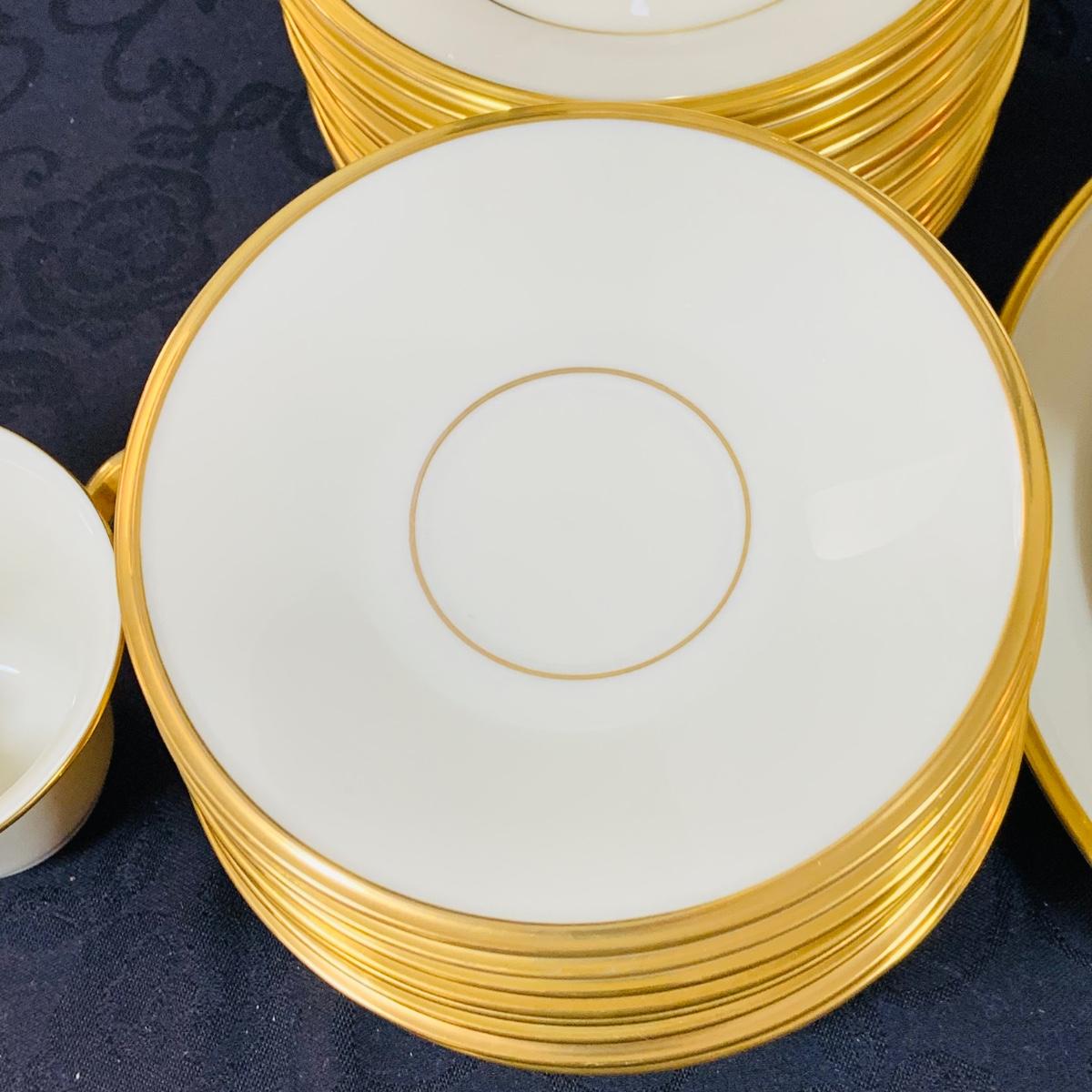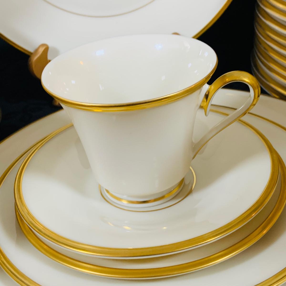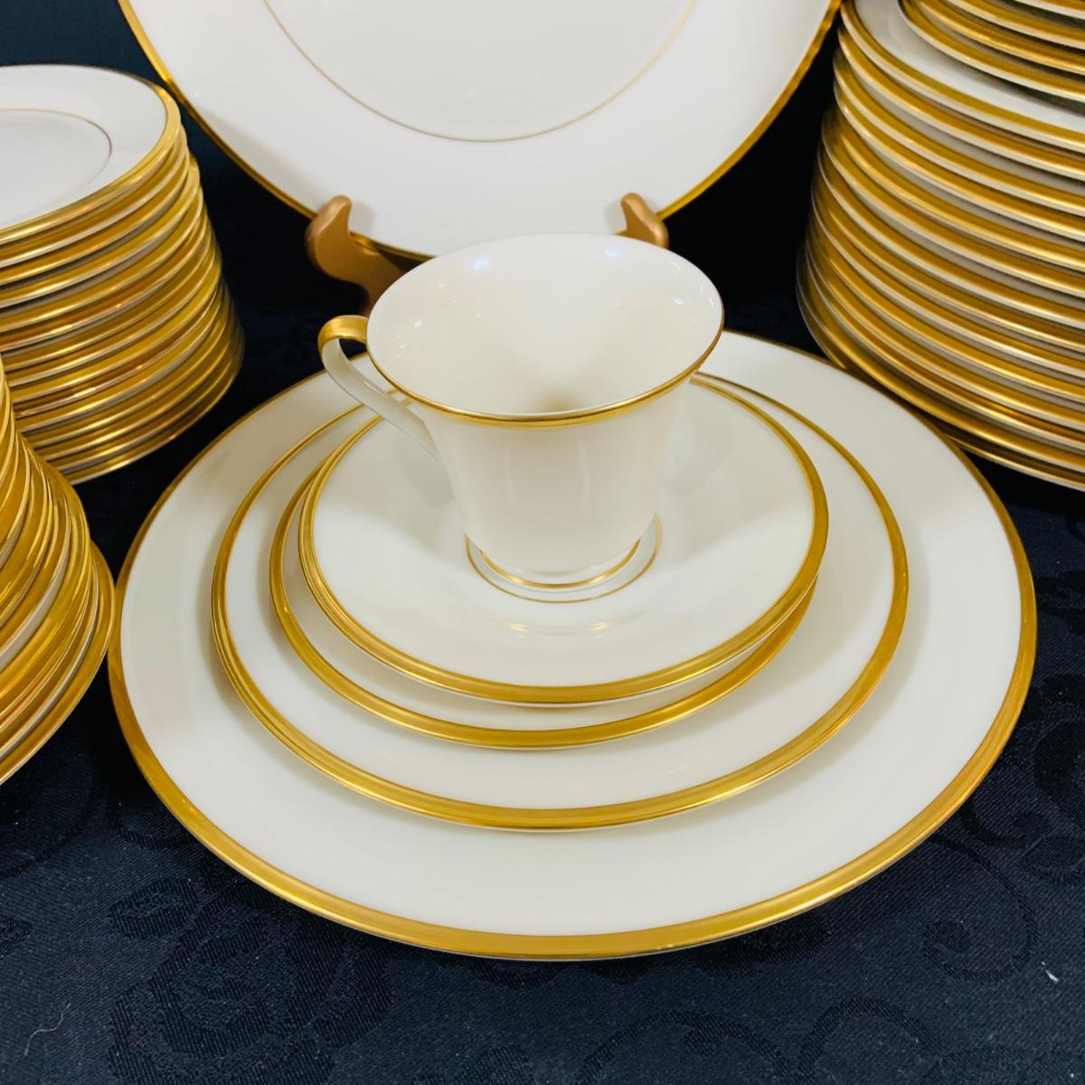 LOT 227 Lenox Dimension Collection Eternal Gold Rimmed China- Five (5) Piece Table Setting Cup, Saucer, Dinner Plate, Salad Plate and Dessert Plate. - 16 of Each Piece
