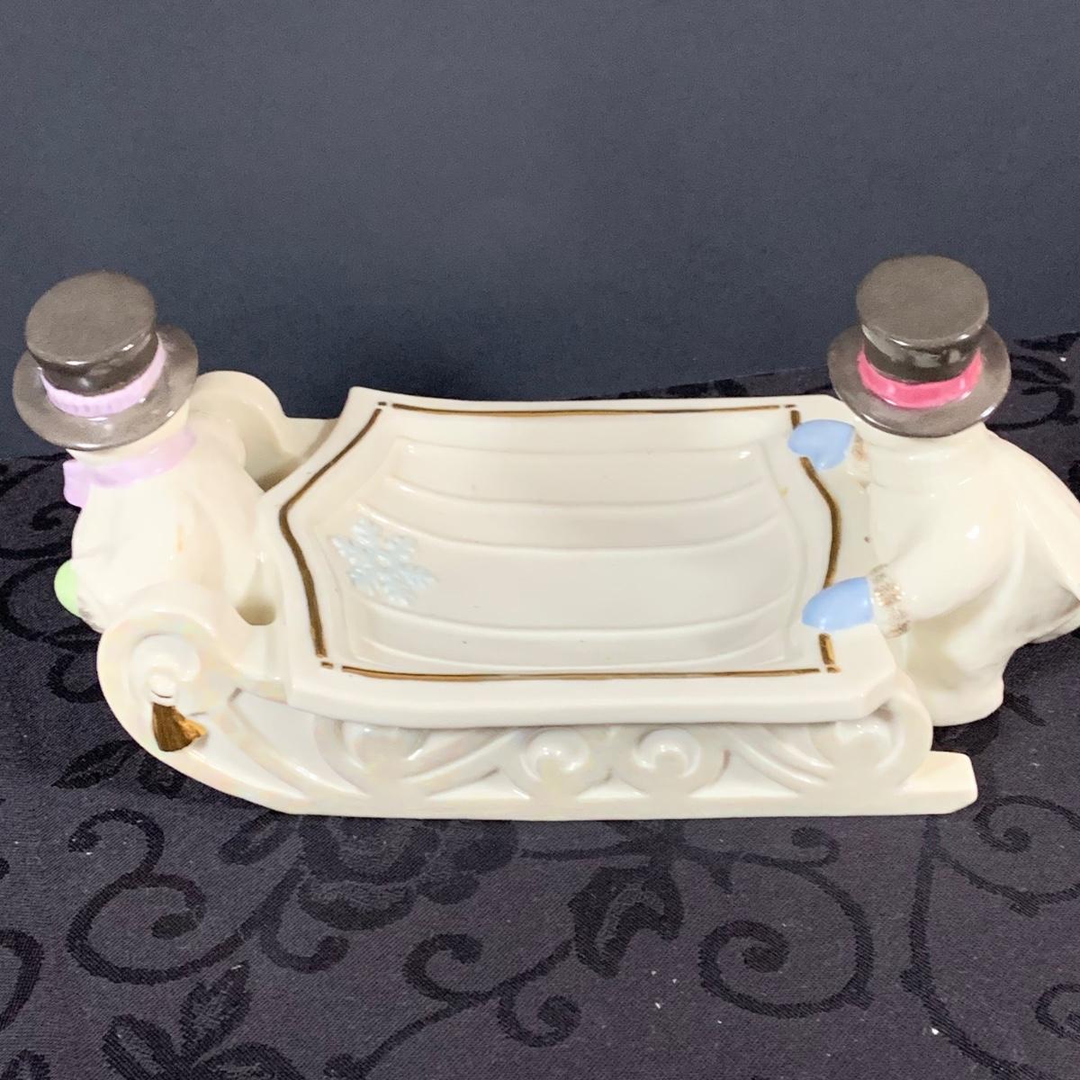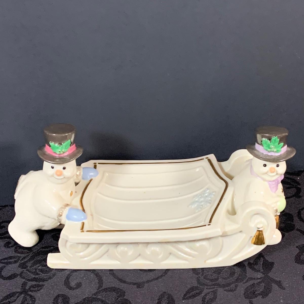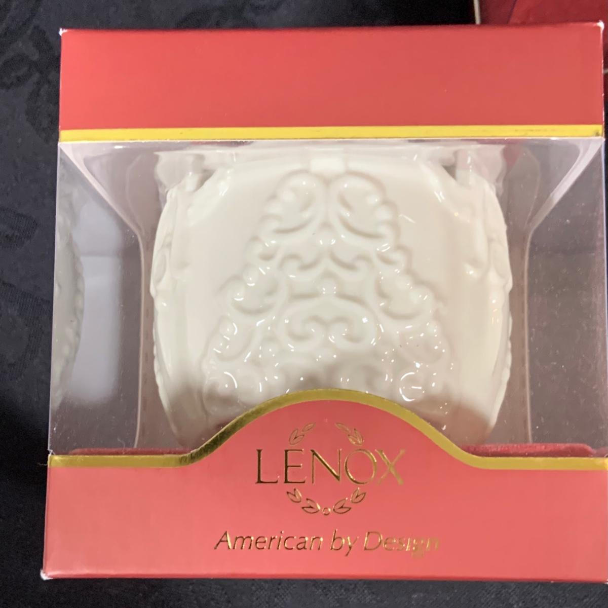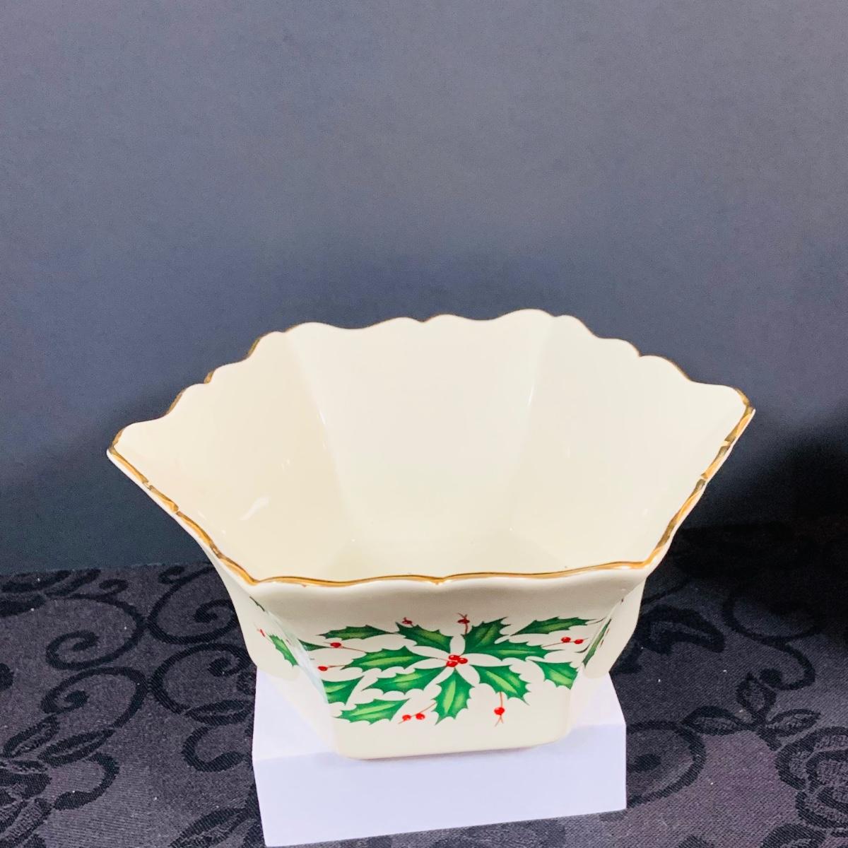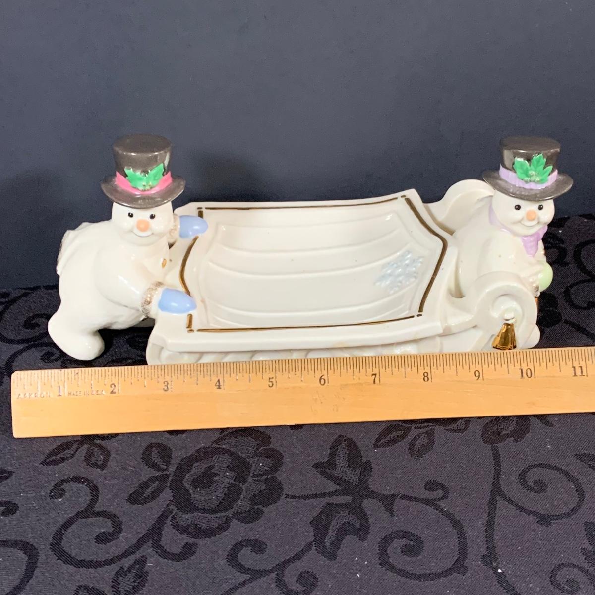 LOT 230: Lenox Holiday Decor Including Three (3) Candle Holder In Original Box, Holiday Paneled Bowl, Snowman Candy Tray 1990 Bell and Ornaments