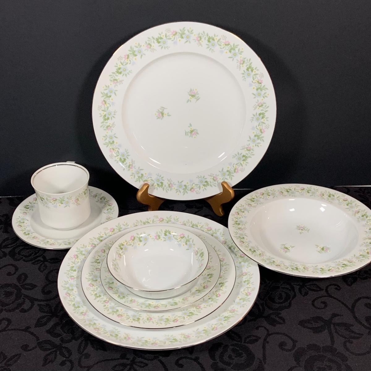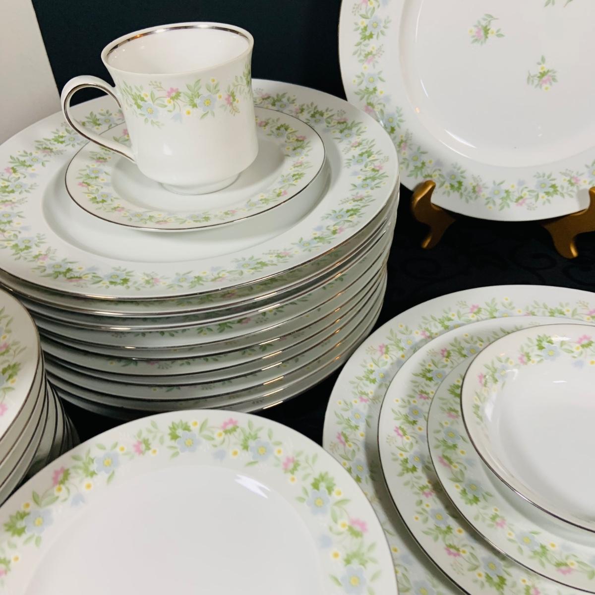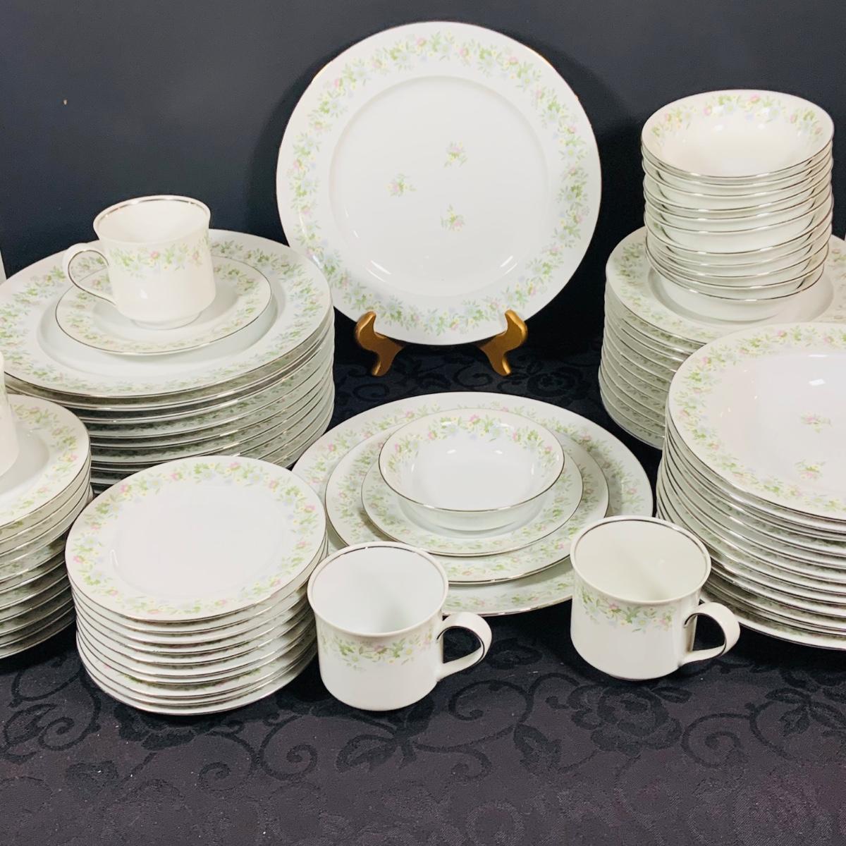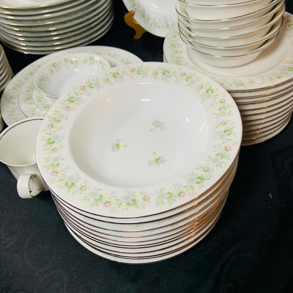 LOT 233: Johann Haviland Bavaria China Forever Spring 7 Piece Table Settings - Cup, Saucer, Dinner Plate, Salad Plate, Dessert Plate, Soup Bowl and Desert Bowl (12 of each piece)