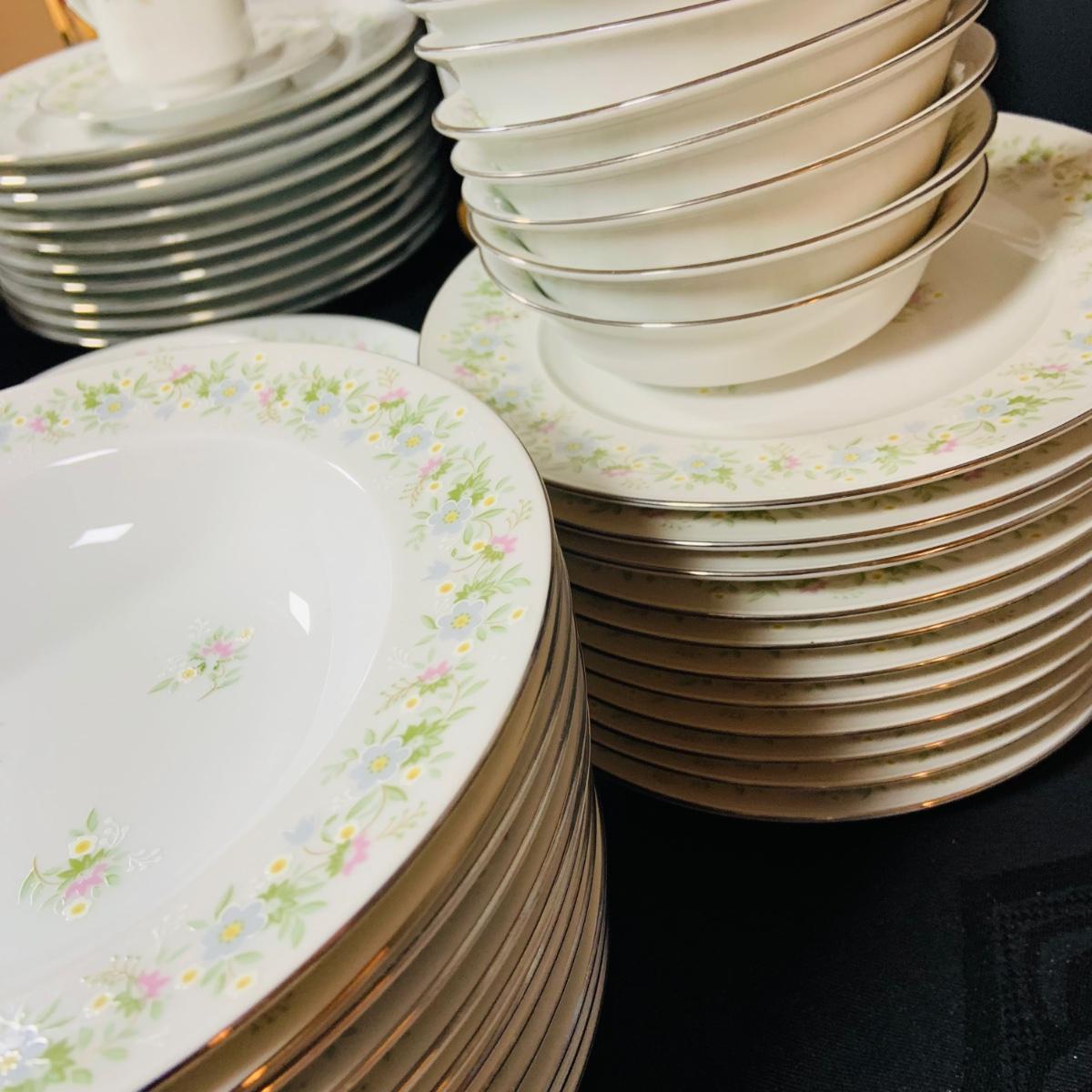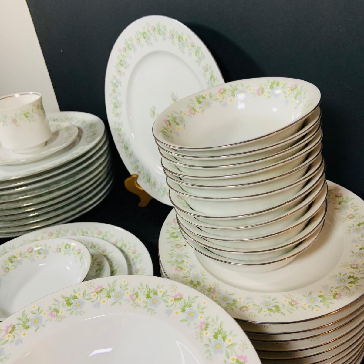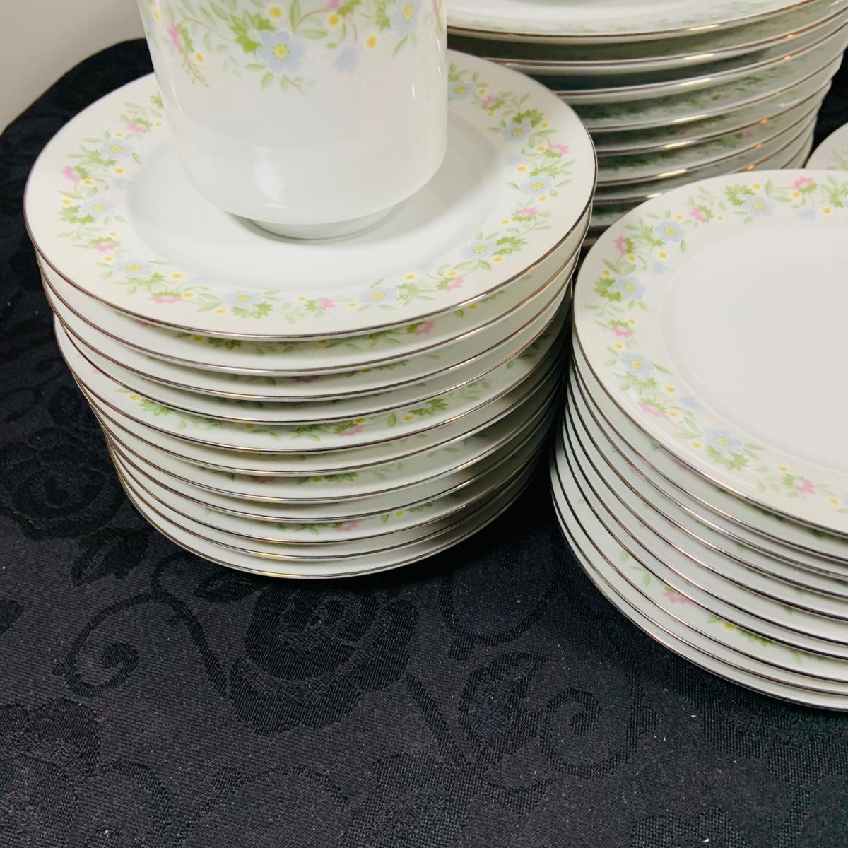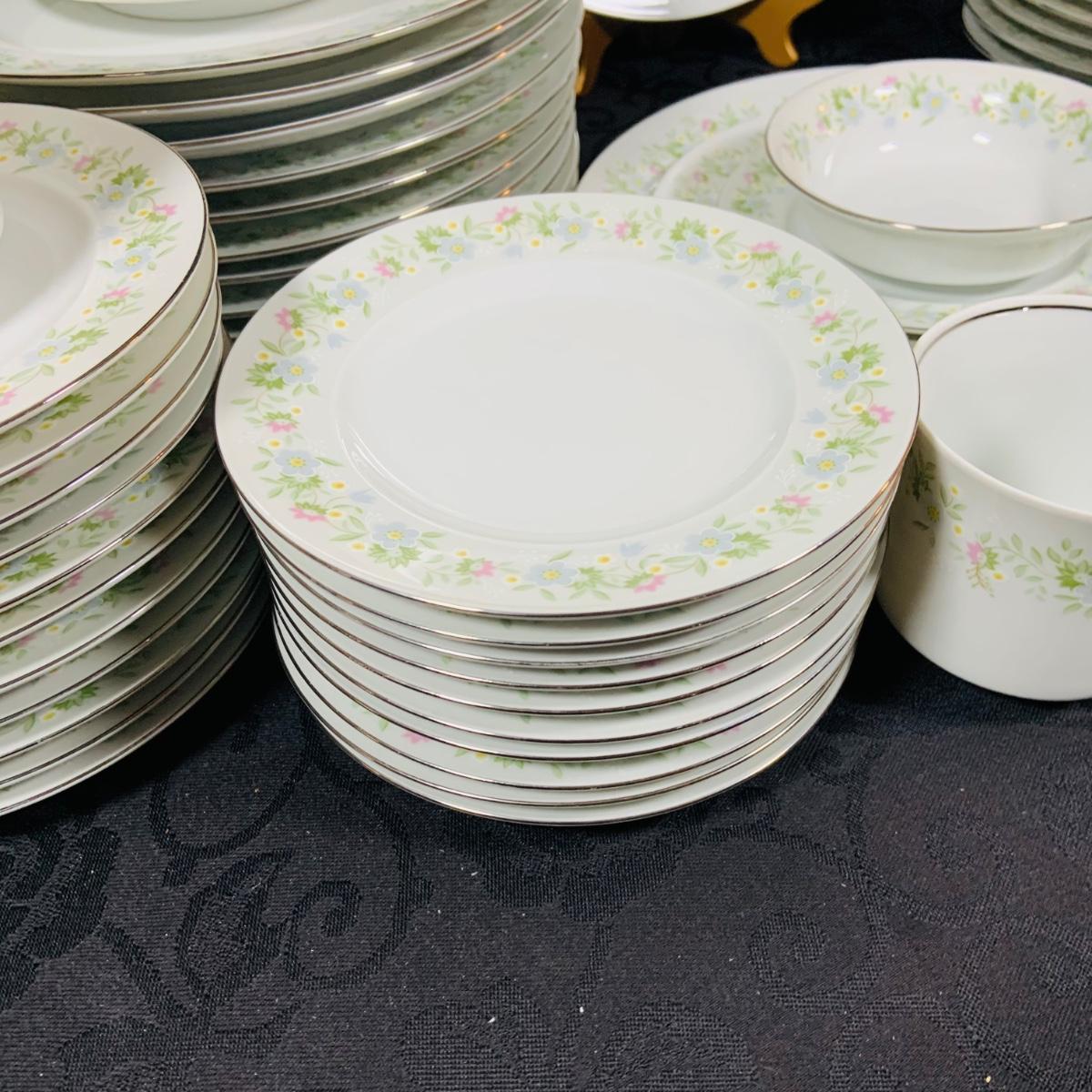 LOT 233: Johann Haviland Bavaria China Forever Spring 7 Piece Table Settings - Cup, Saucer, Dinner Plate, Salad Plate, Dessert Plate, Soup Bowl and Desert Bowl (12 of each piece)