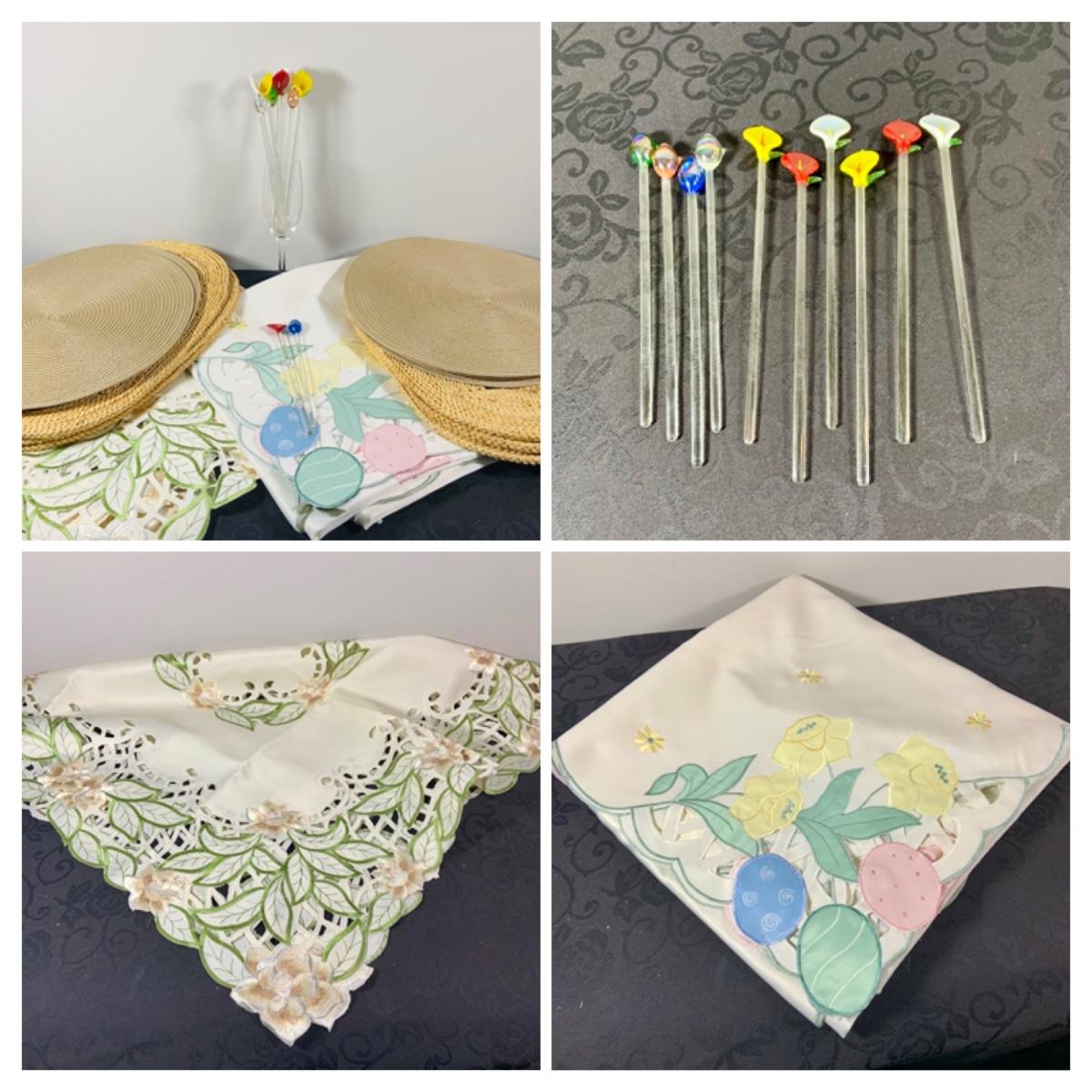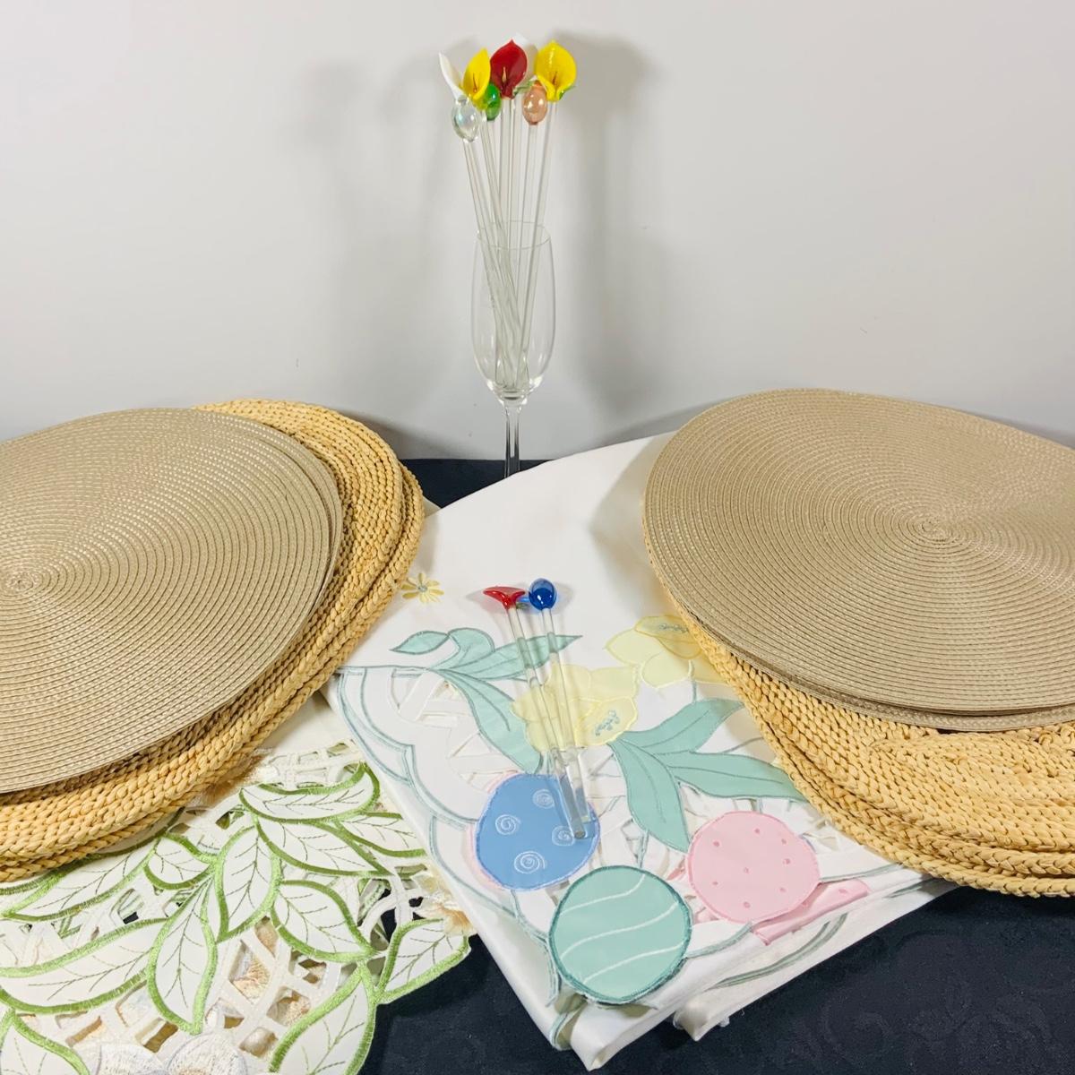 LOT 239: Spring Inspired Collection Forever Including Linen, Placemats sand Glass Drink Stirrer