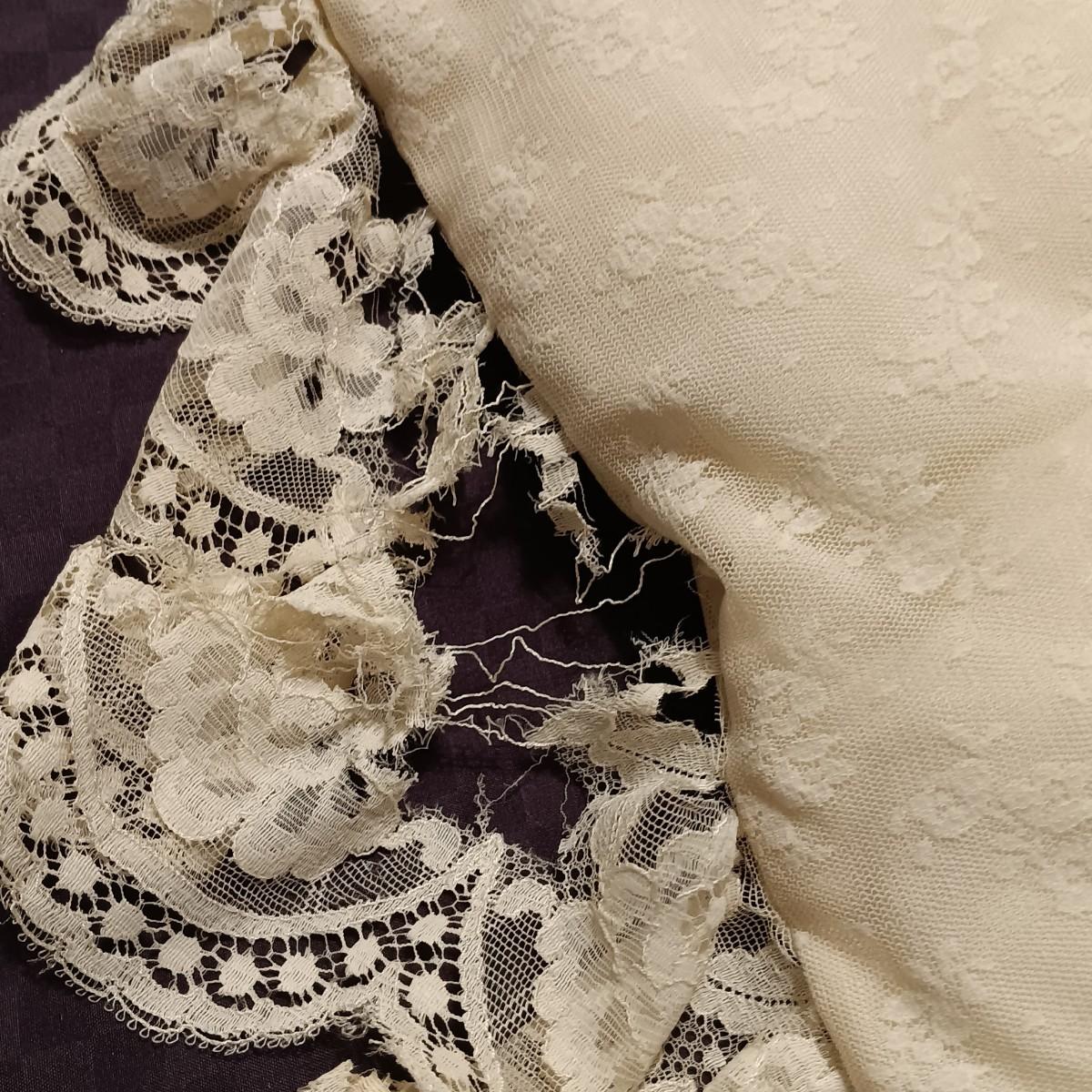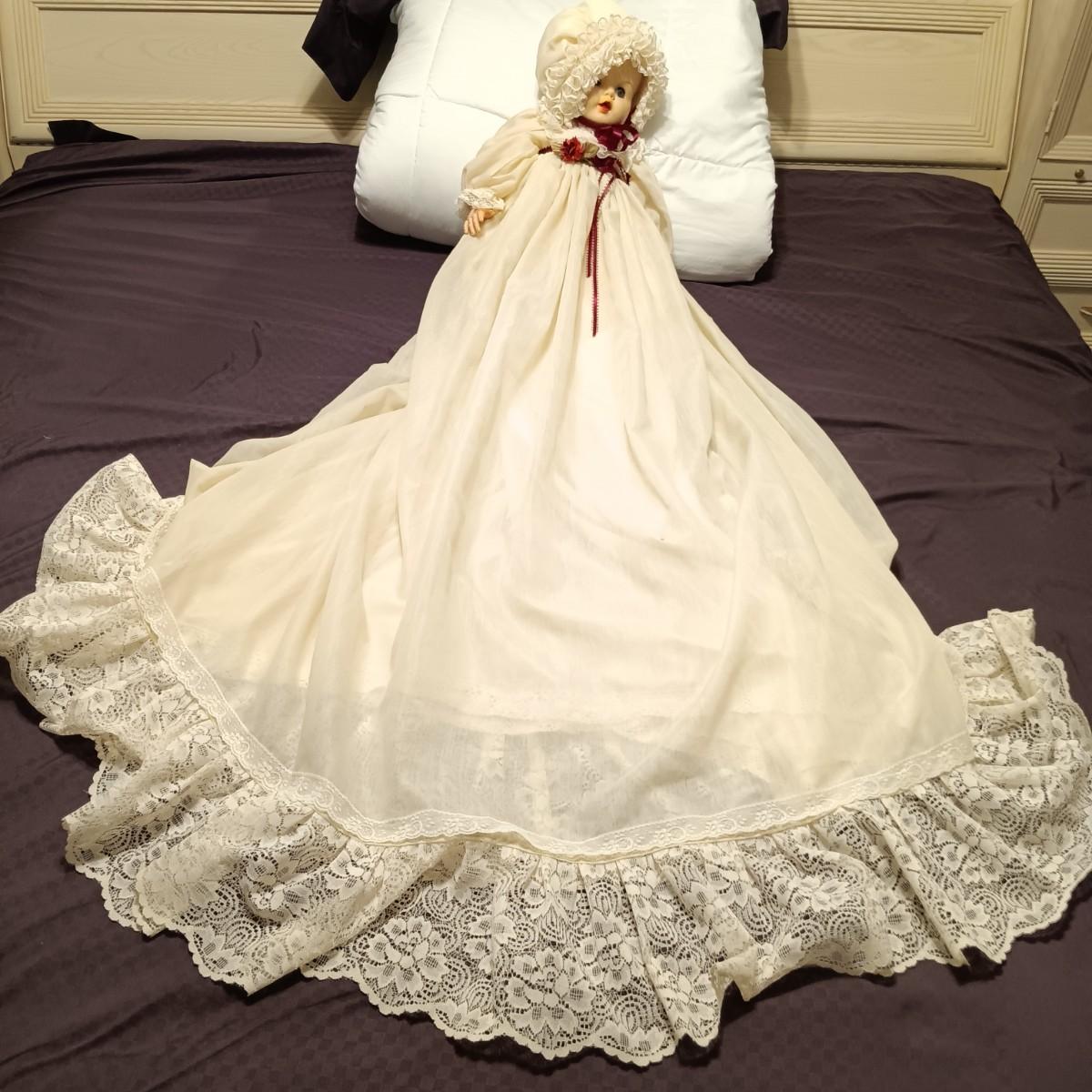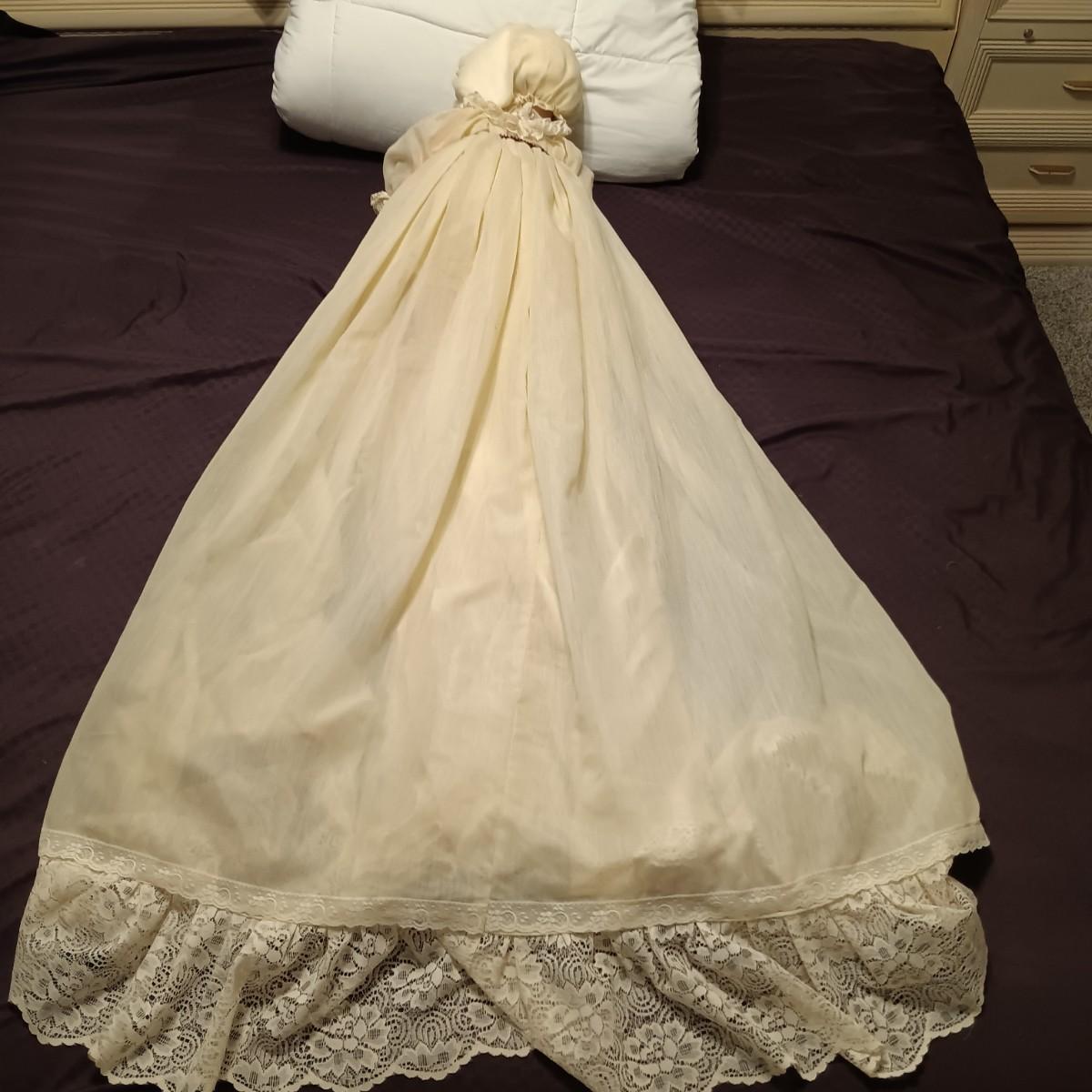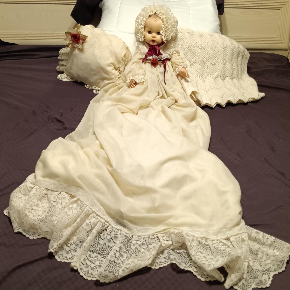 LOT 249: Antique Christening Gown and Pillow & Crocheted Blanket