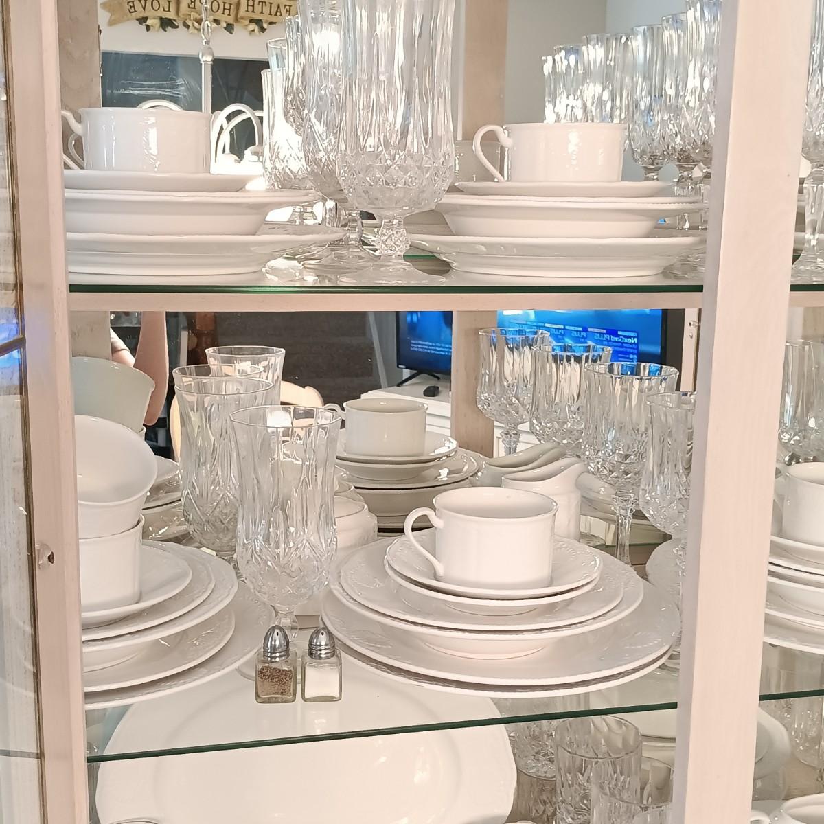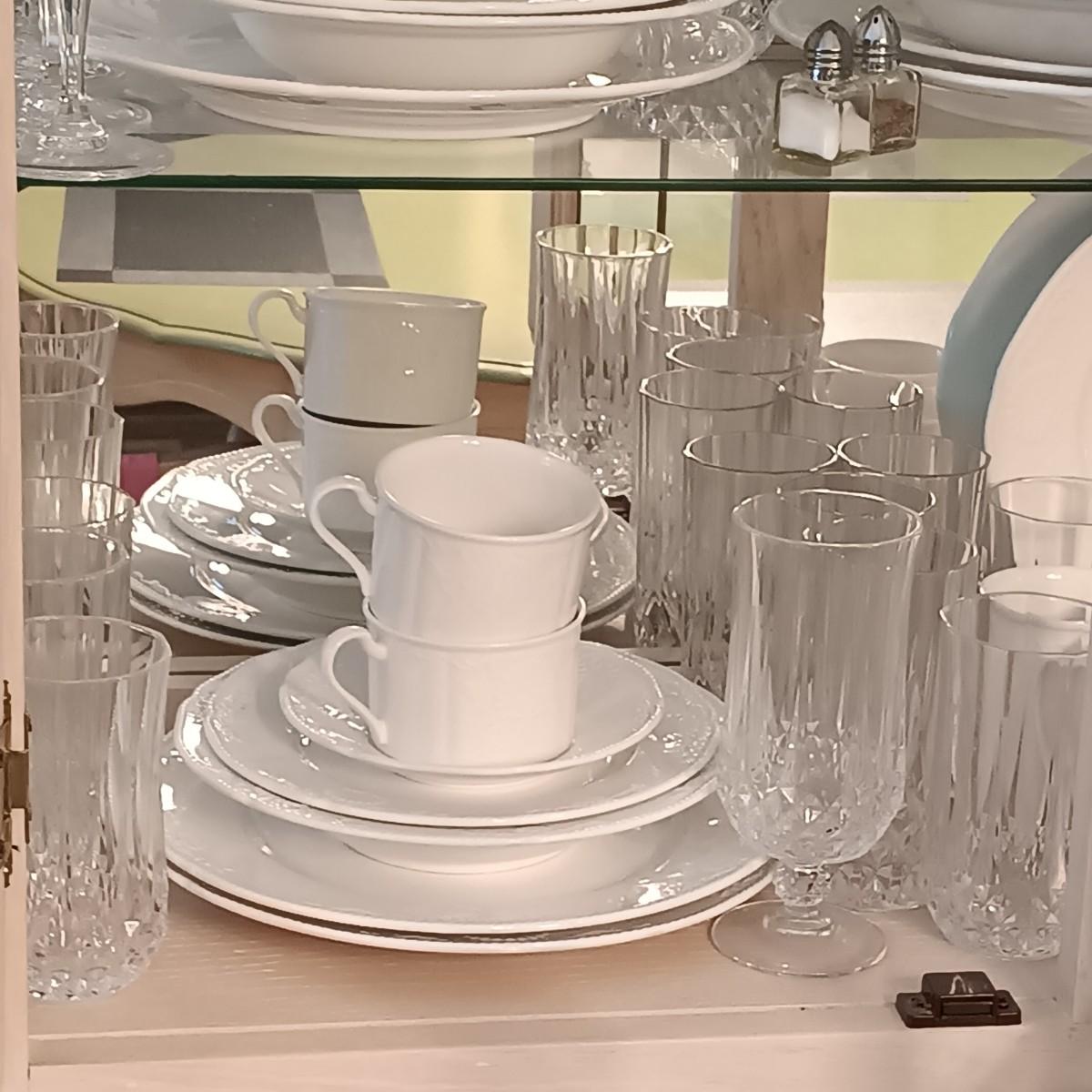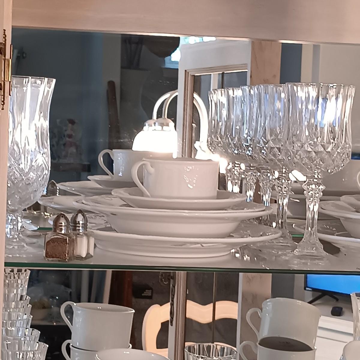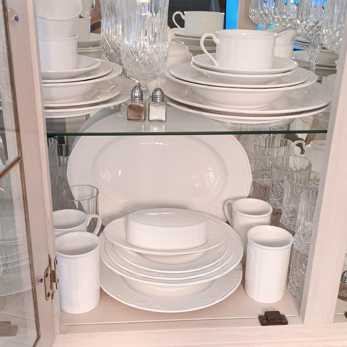 LOT 250: Mikasa Hampton Bays Bone China Dish Collectiion with Crystal Glassware