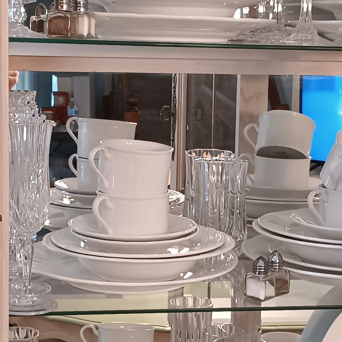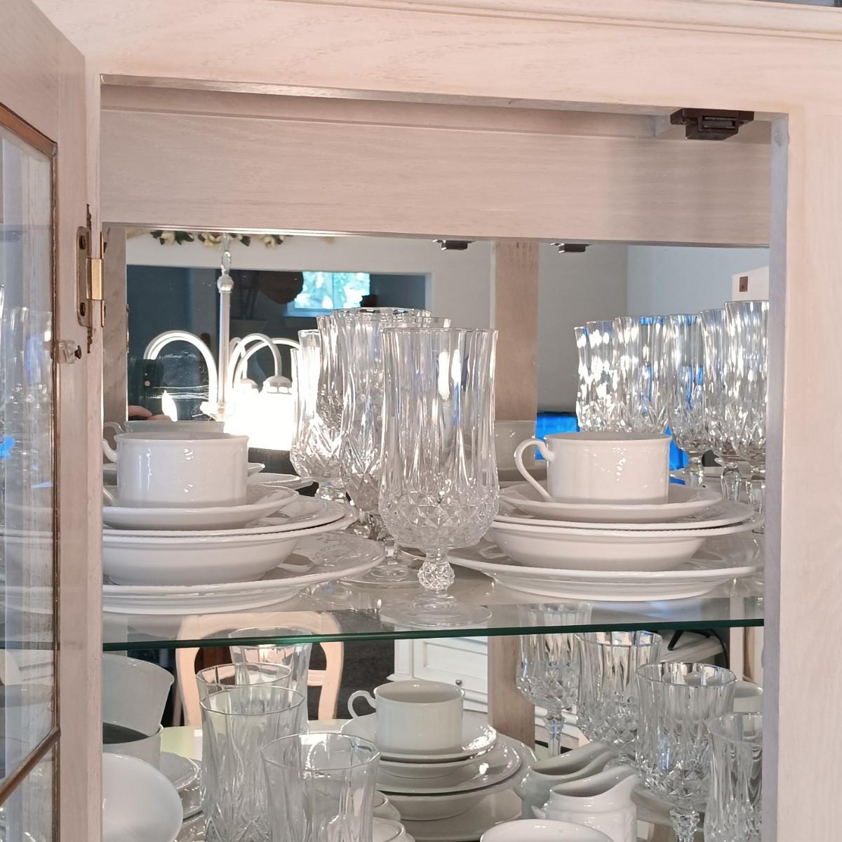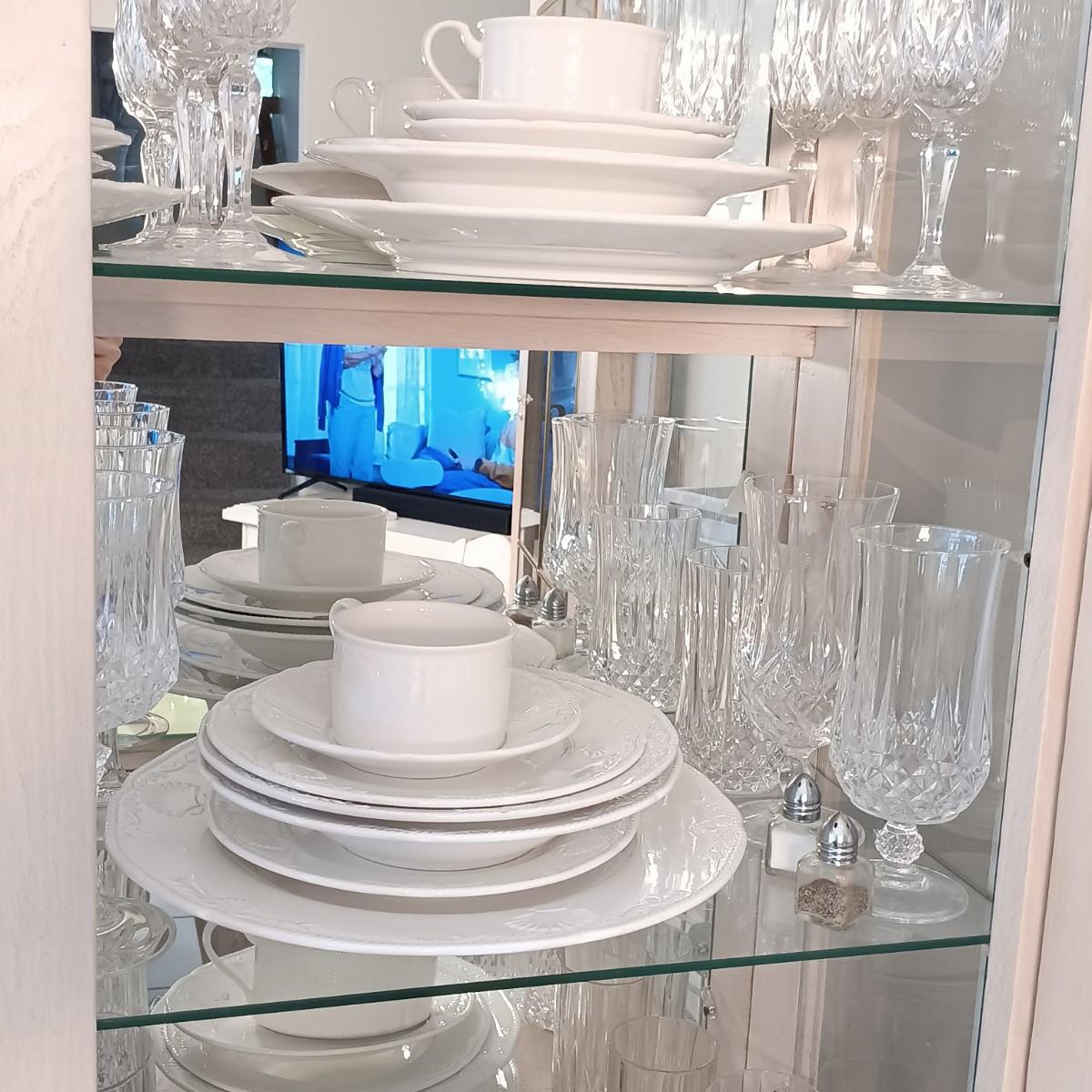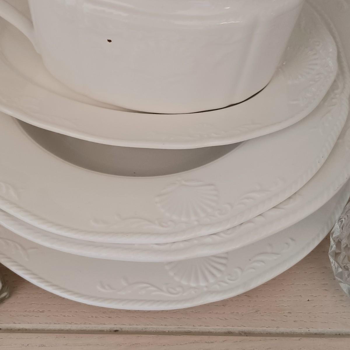 LOT 250: Mikasa Hampton Bays Bone China Dish Collectiion with Crystal Glassware