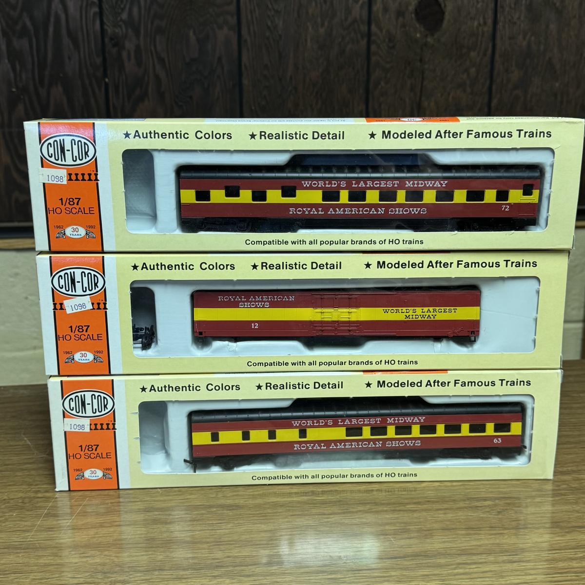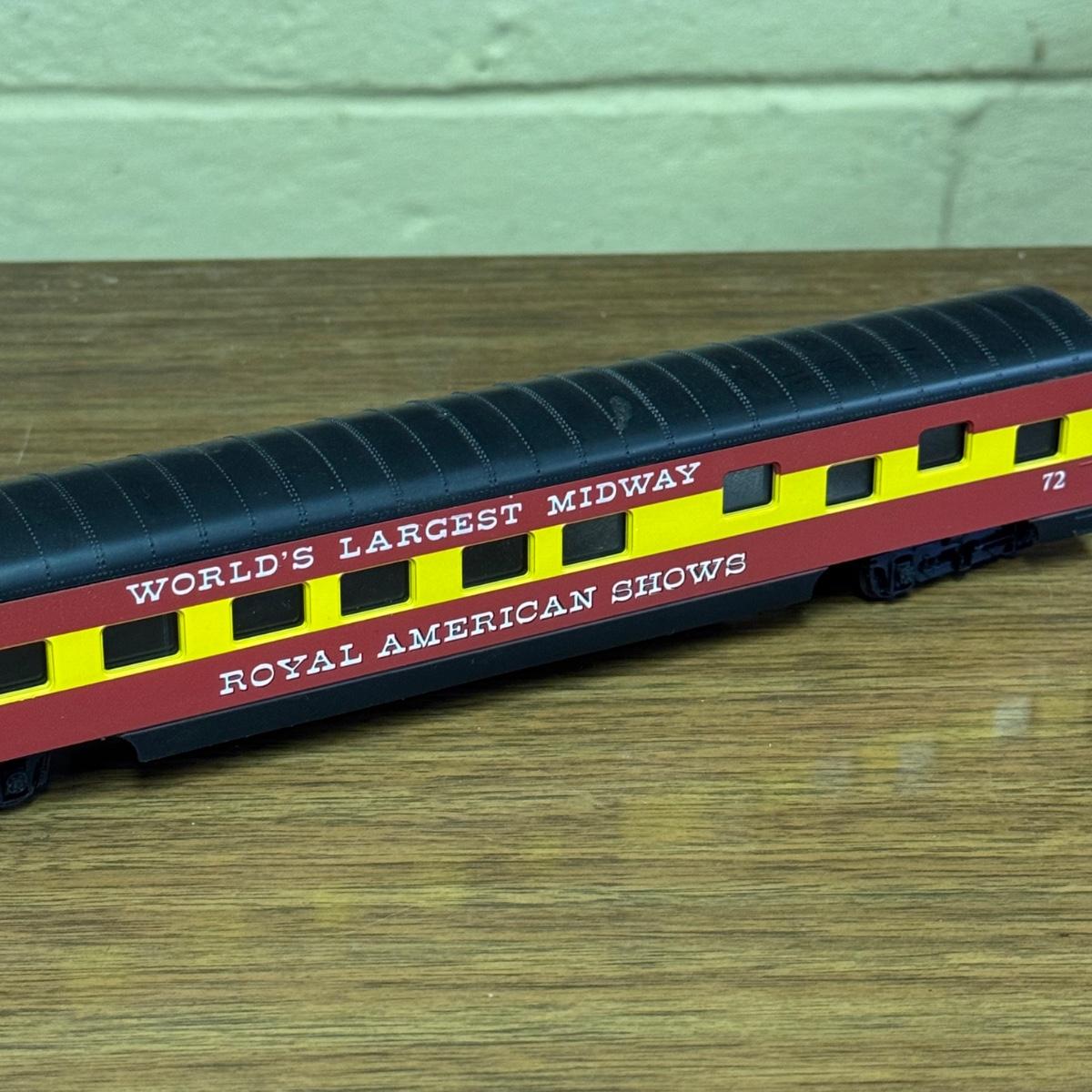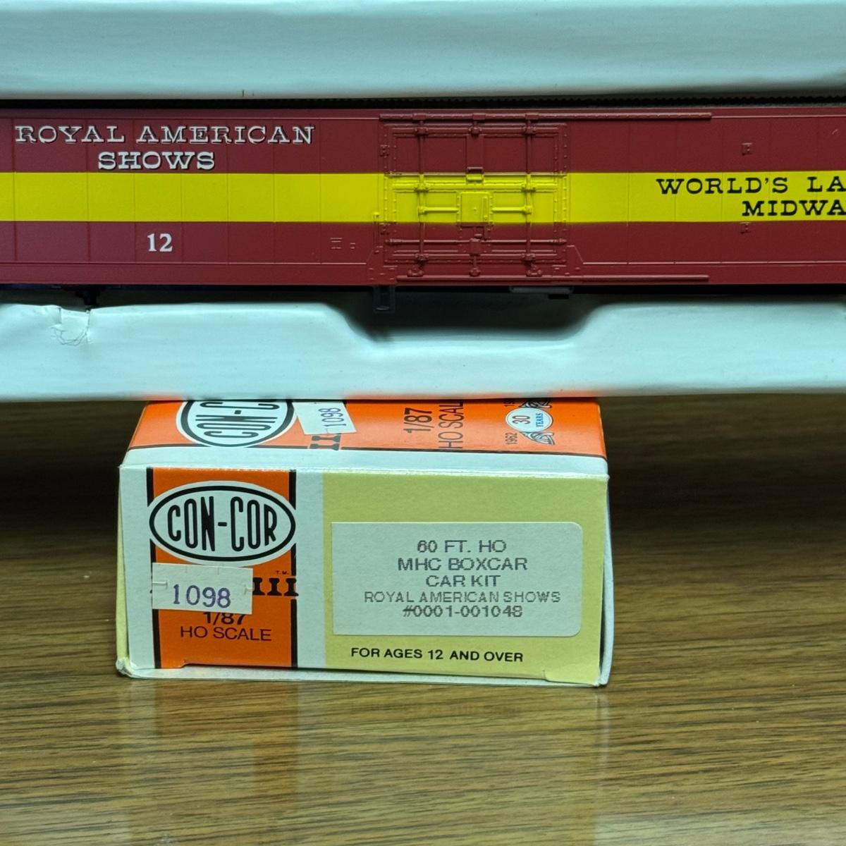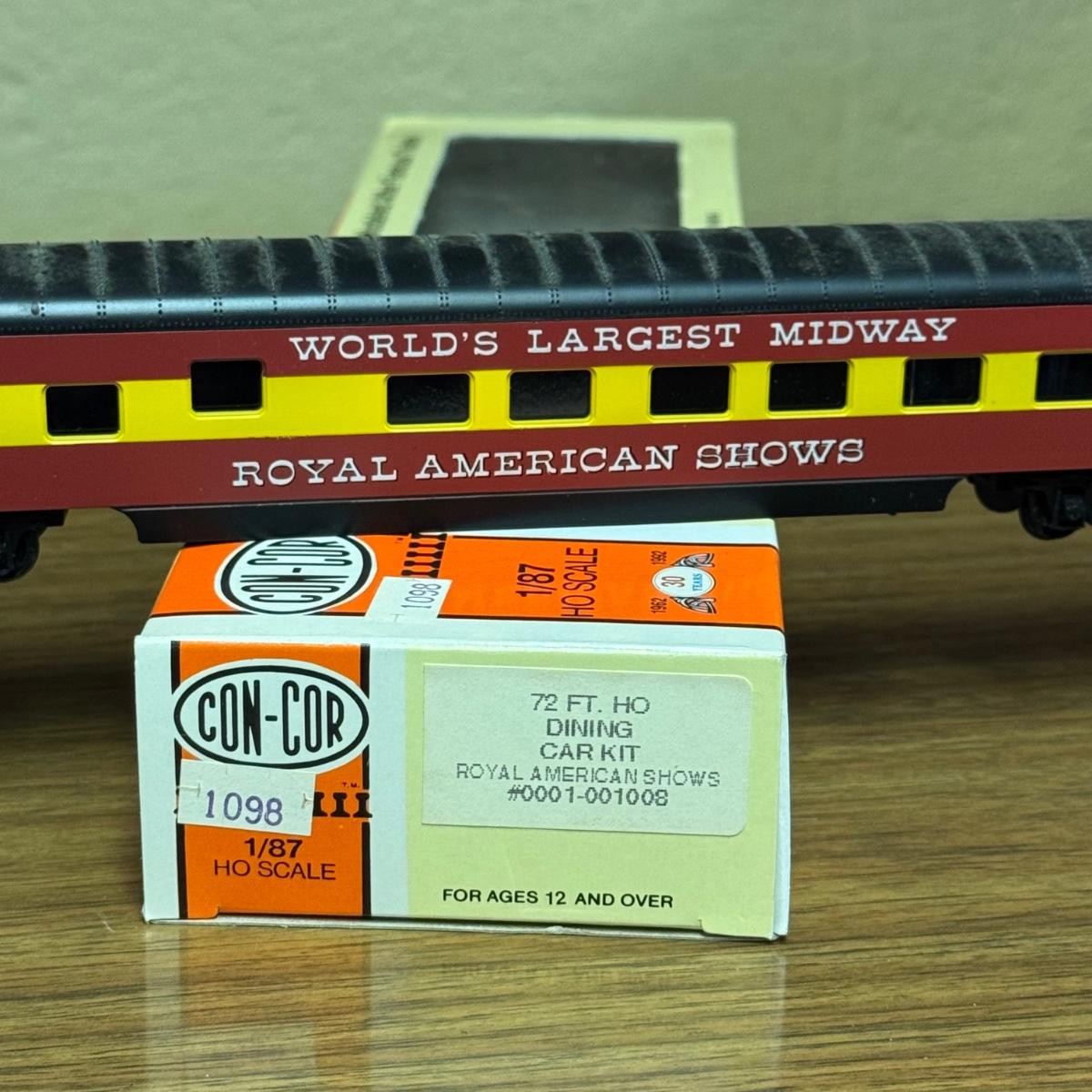 LOT 4C: Vintage Con-Cor Brand HO Scale Royal American Shows Train Cars Including a Pullman Sleeper Car in Box!