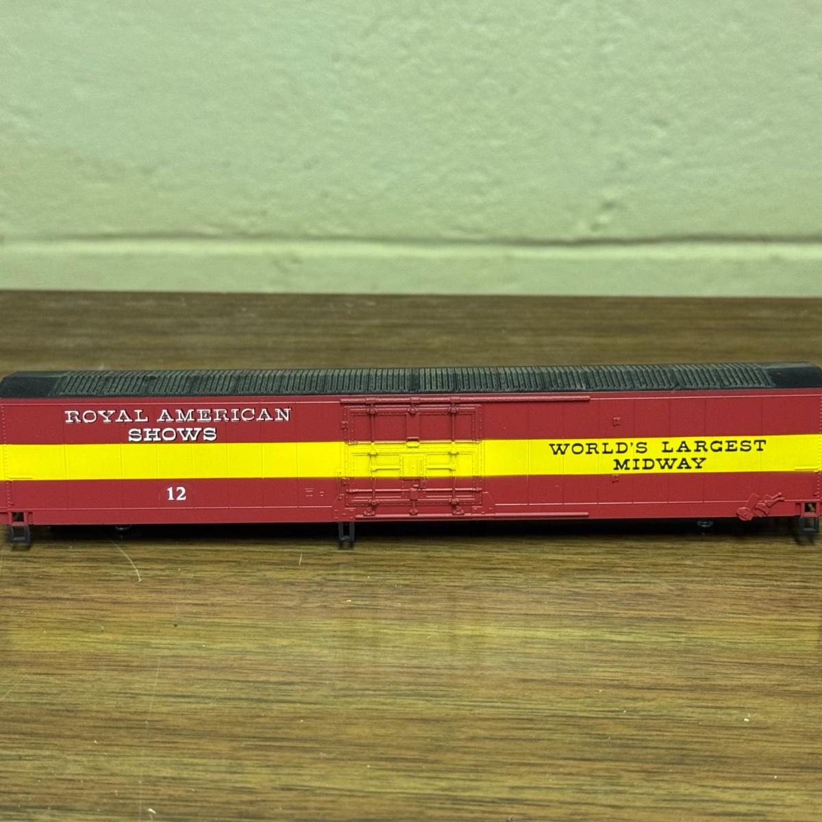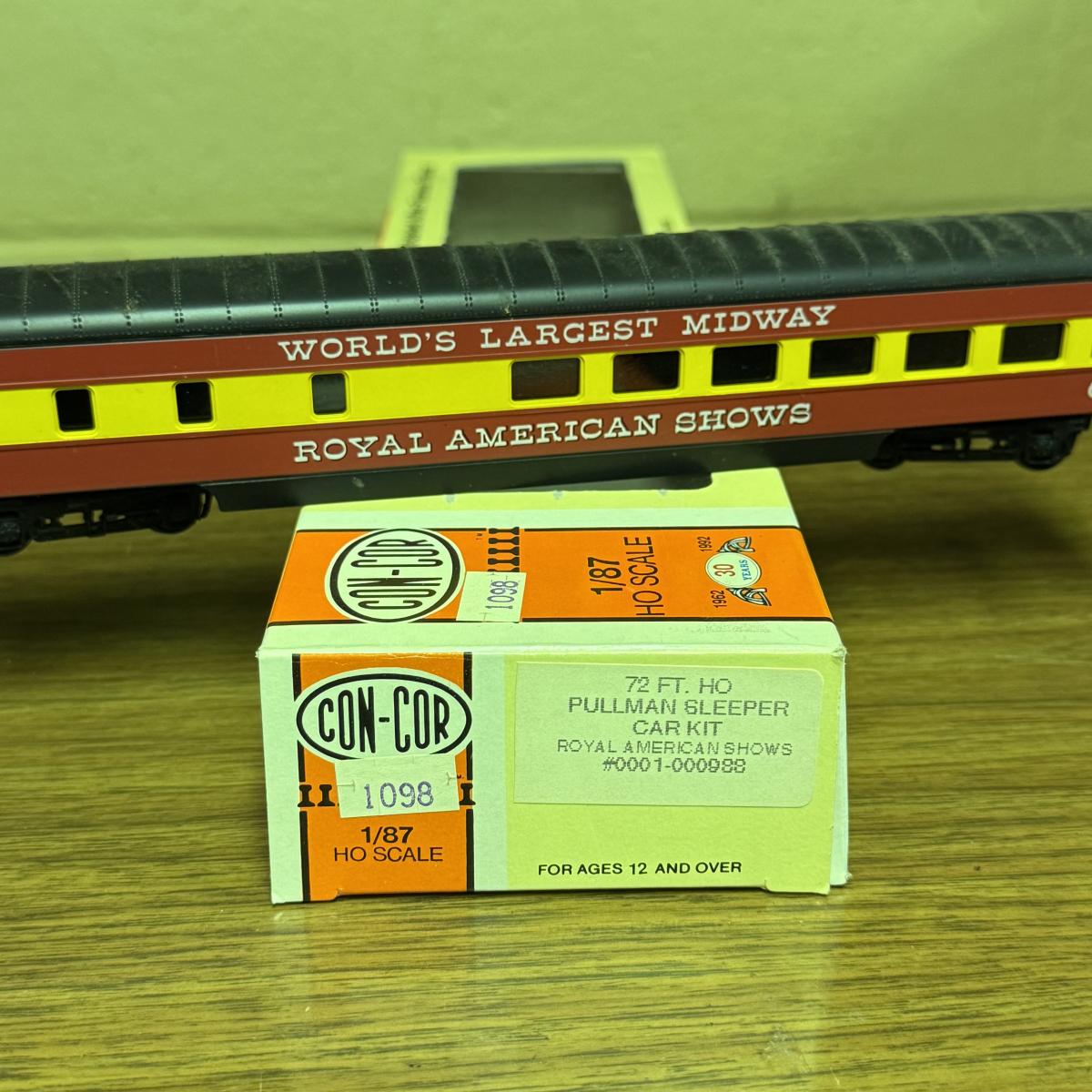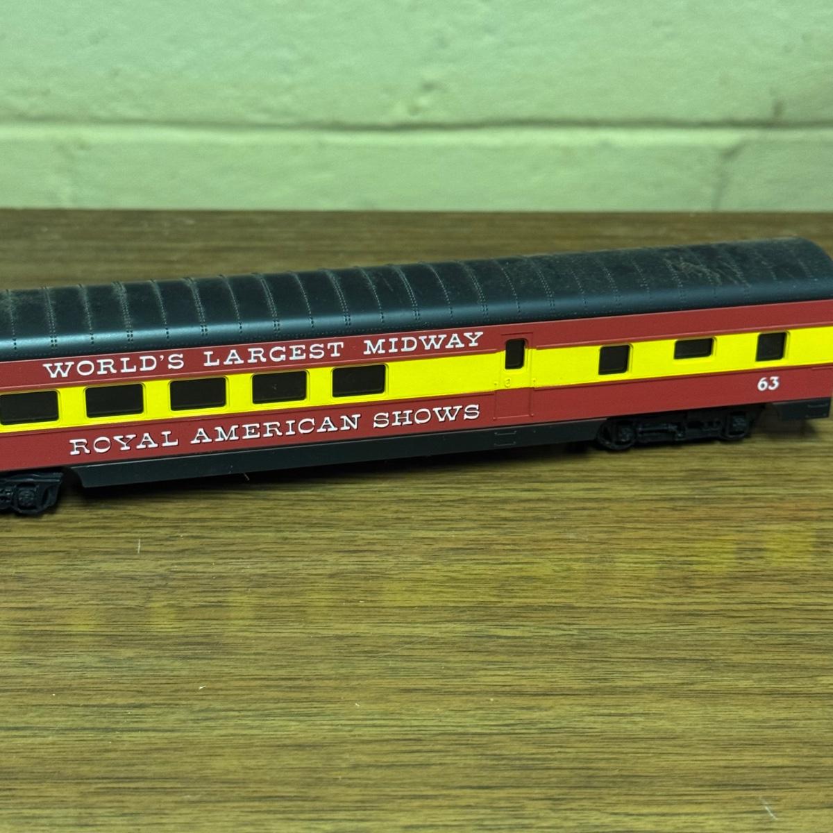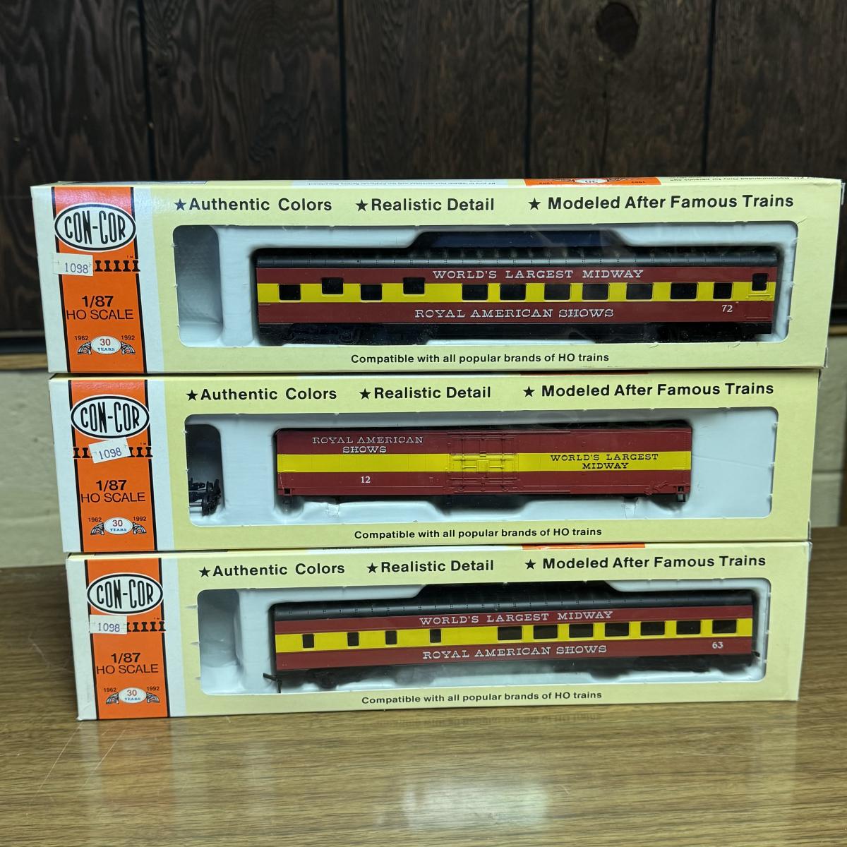 LOT 4C: Vintage Con-Cor Brand HO Scale Royal American Shows Train Cars Including a Pullman Sleeper Car in Box!