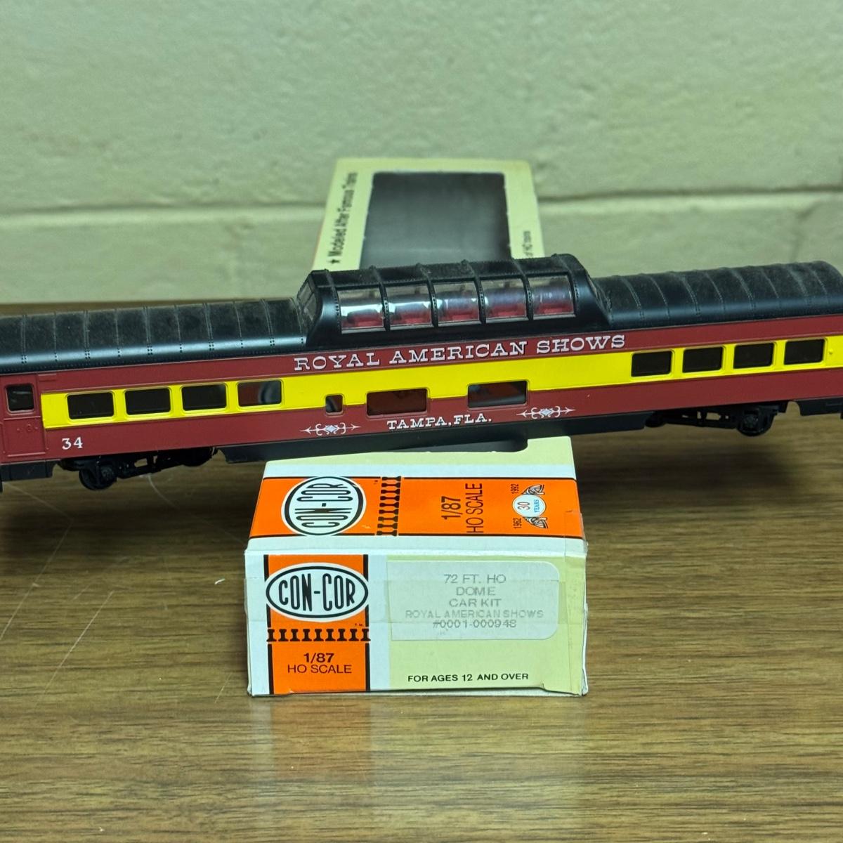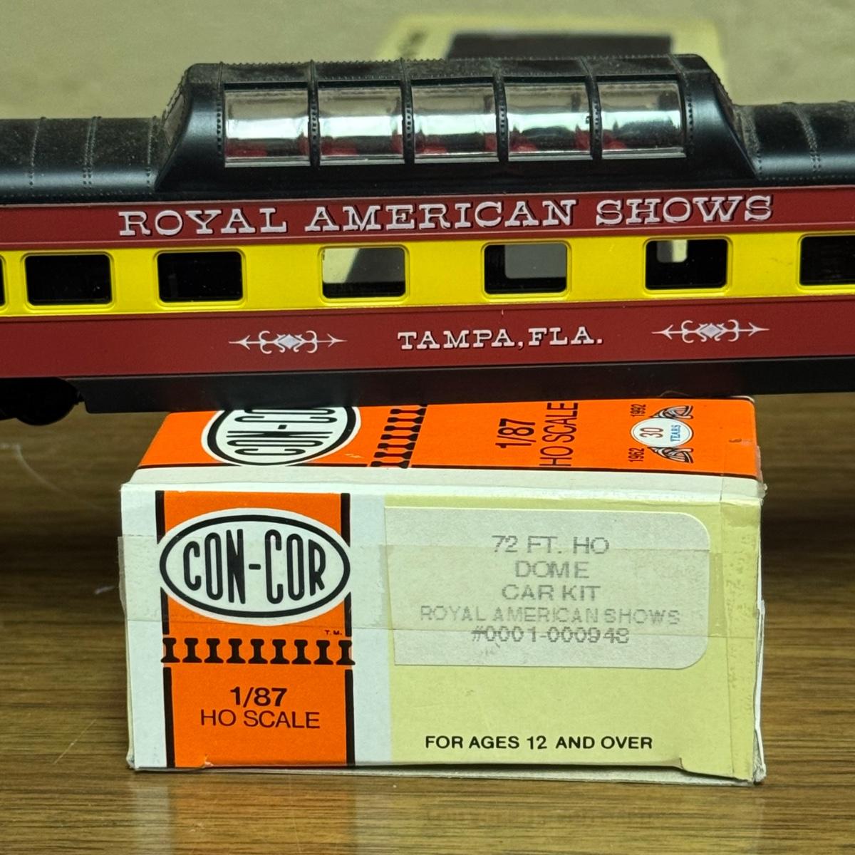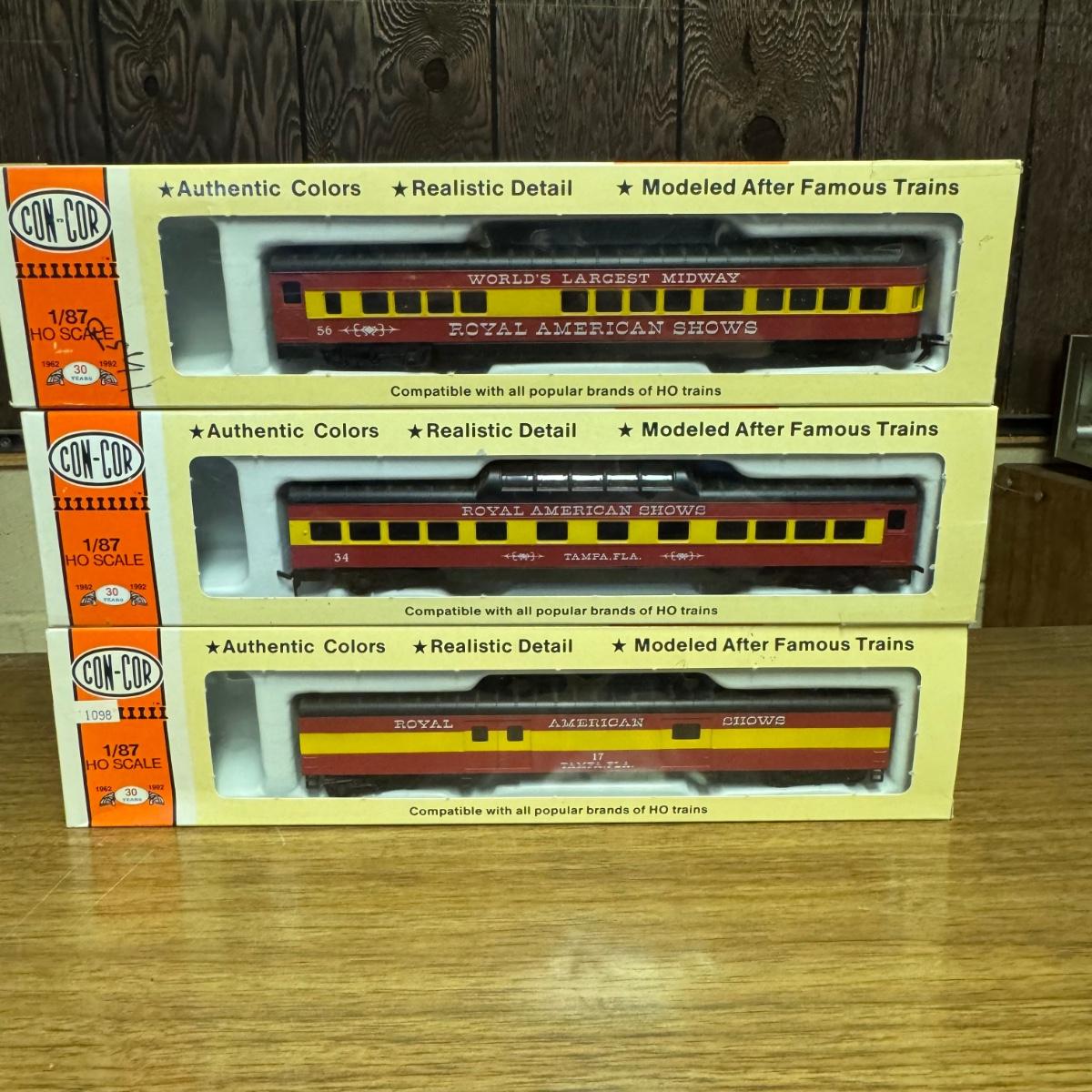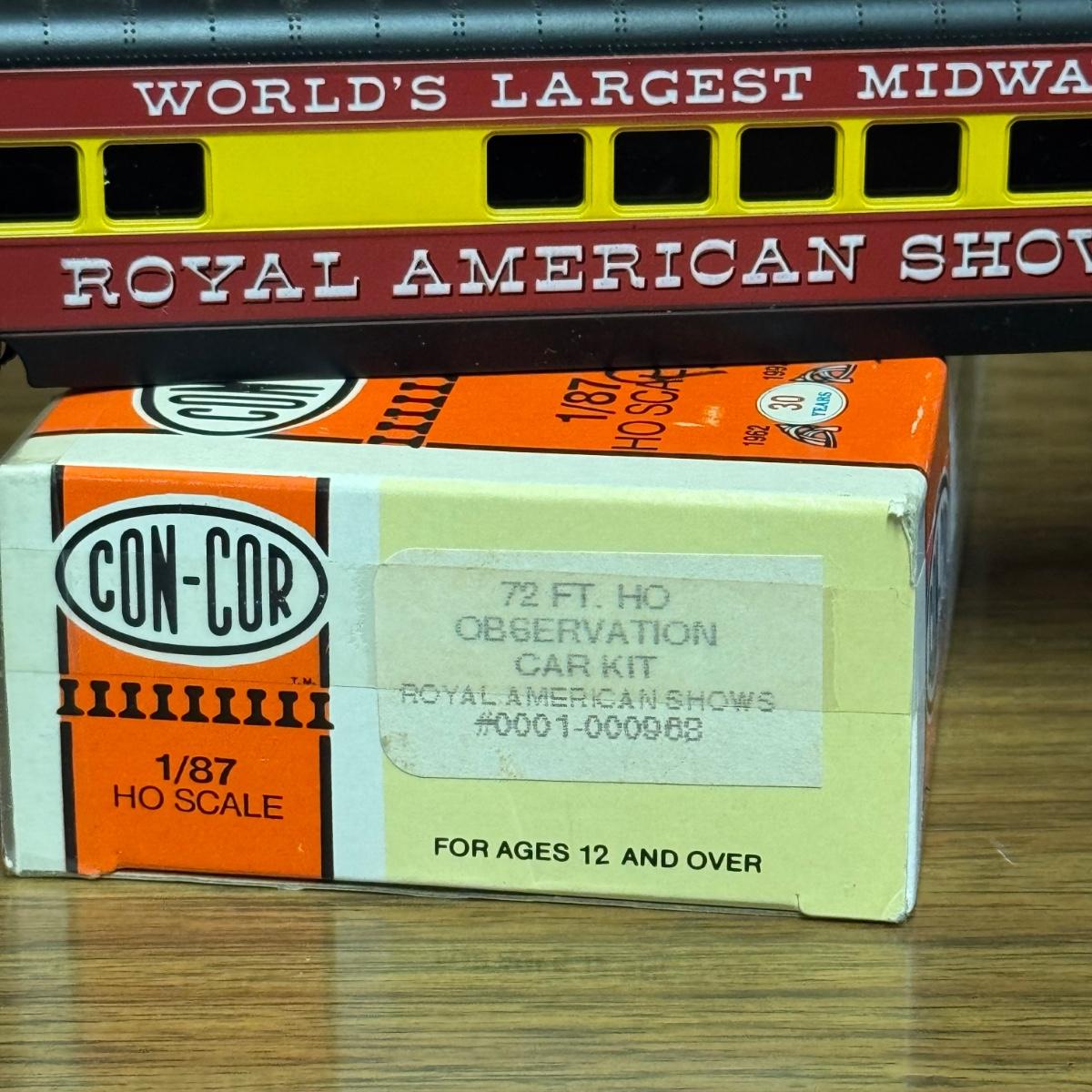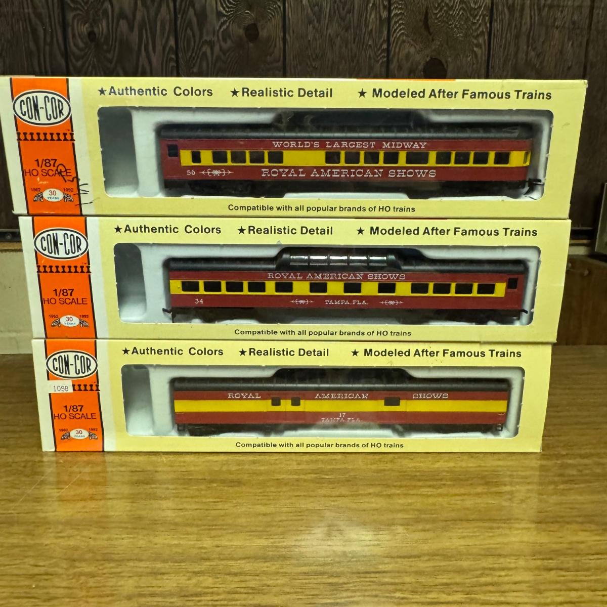 LOT 5C: Vintage Con-Cor Brand HO Scale Royal American Shows Train Cars in Box!