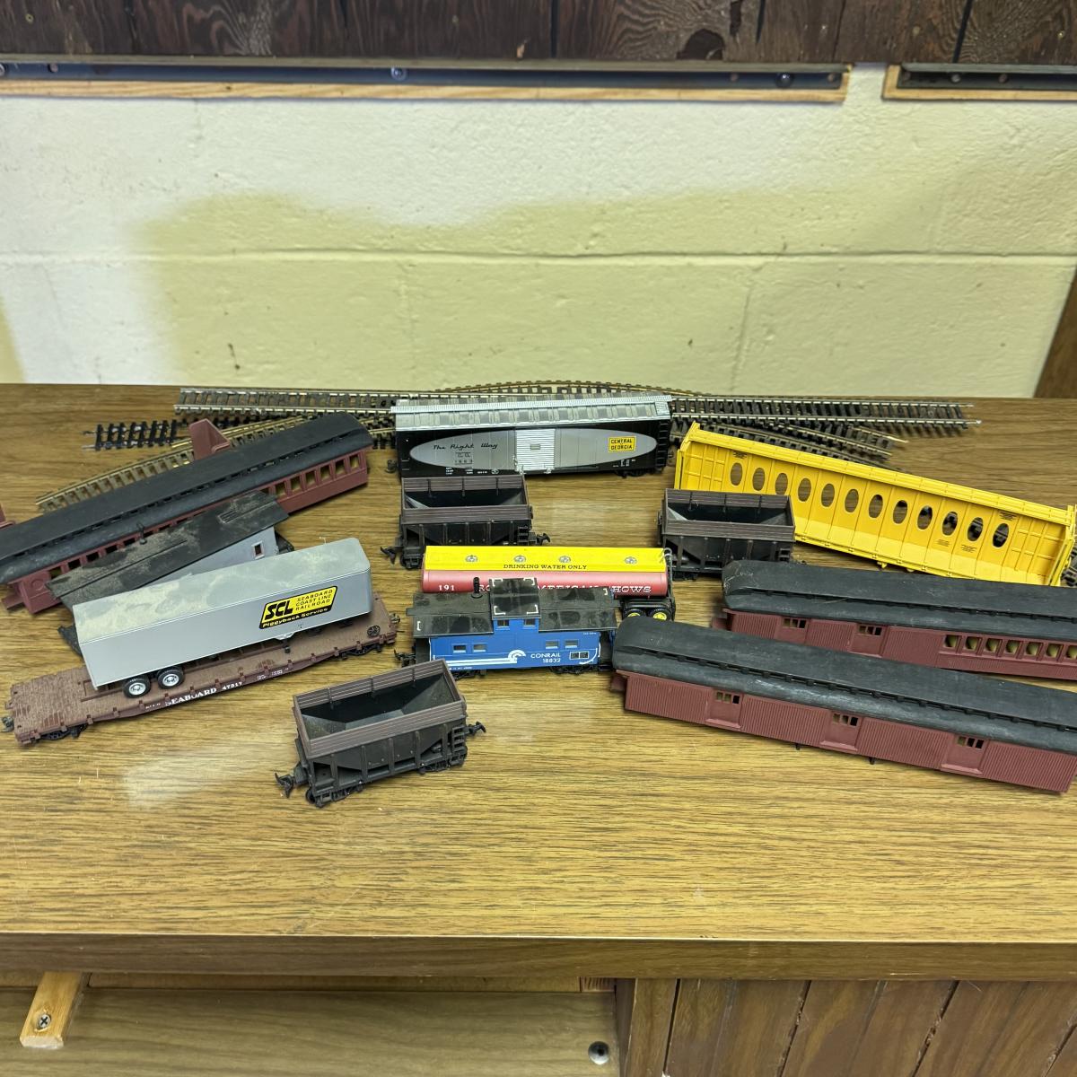 LOT 17C: Collection of Vintage HO Scale Model Train Cars and Track