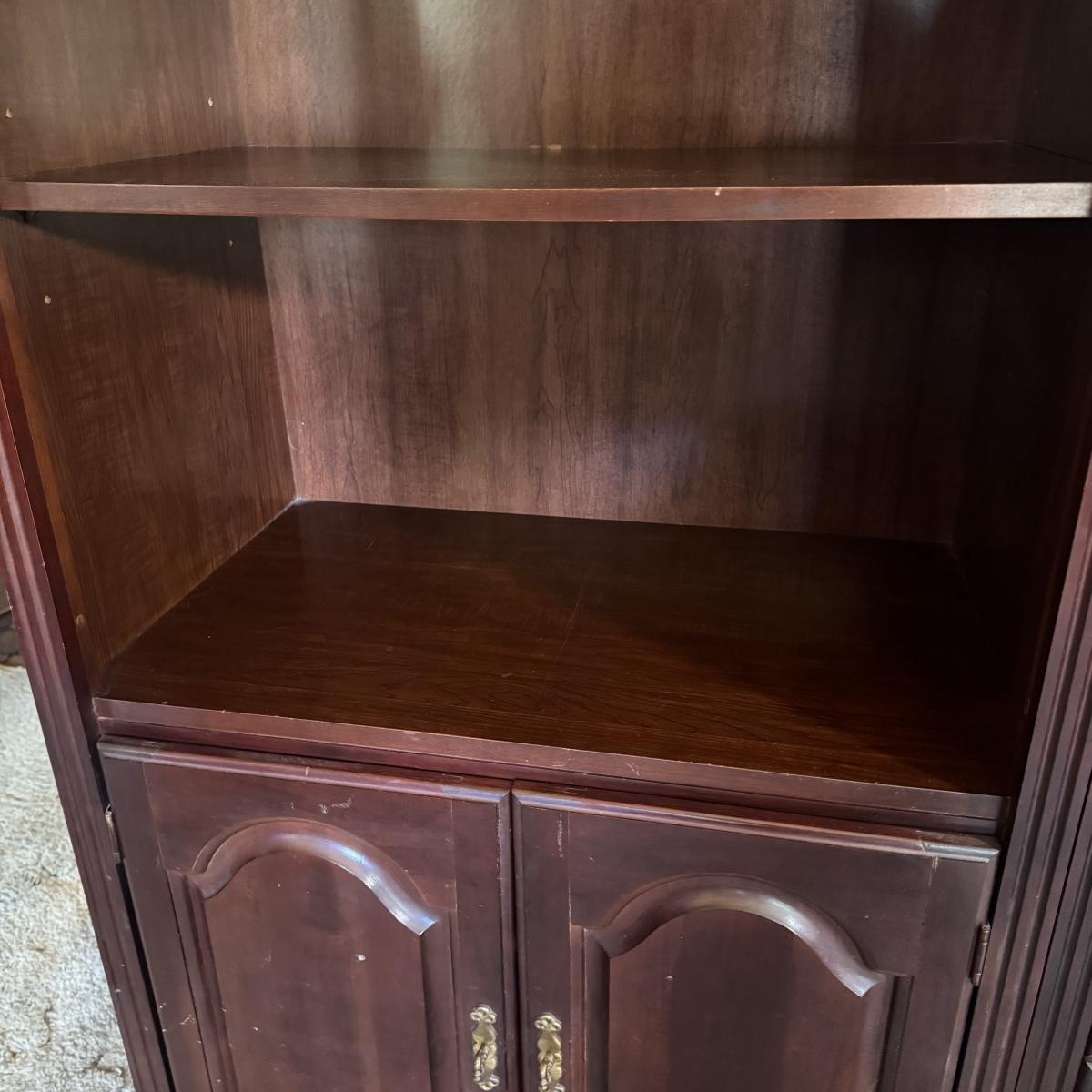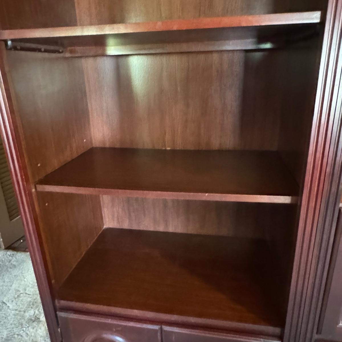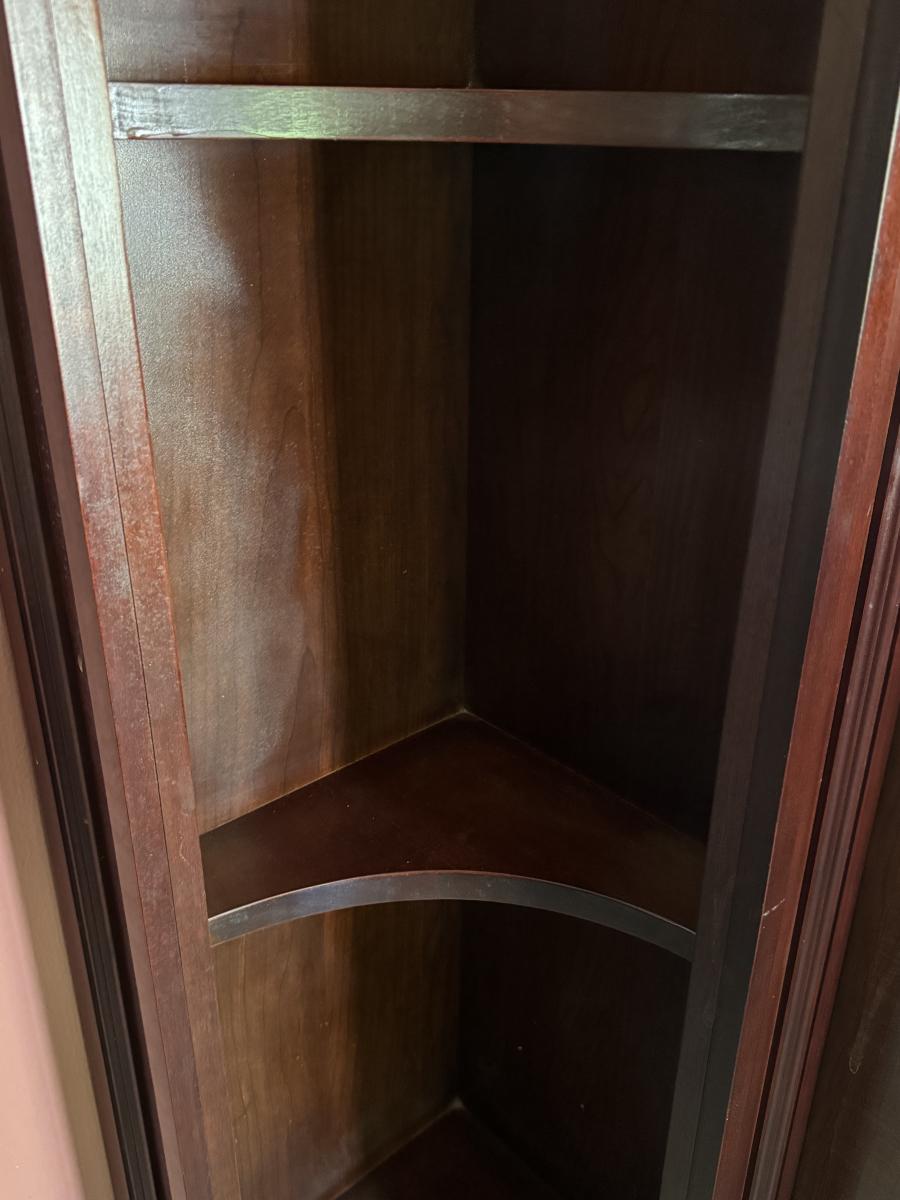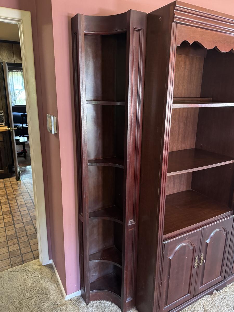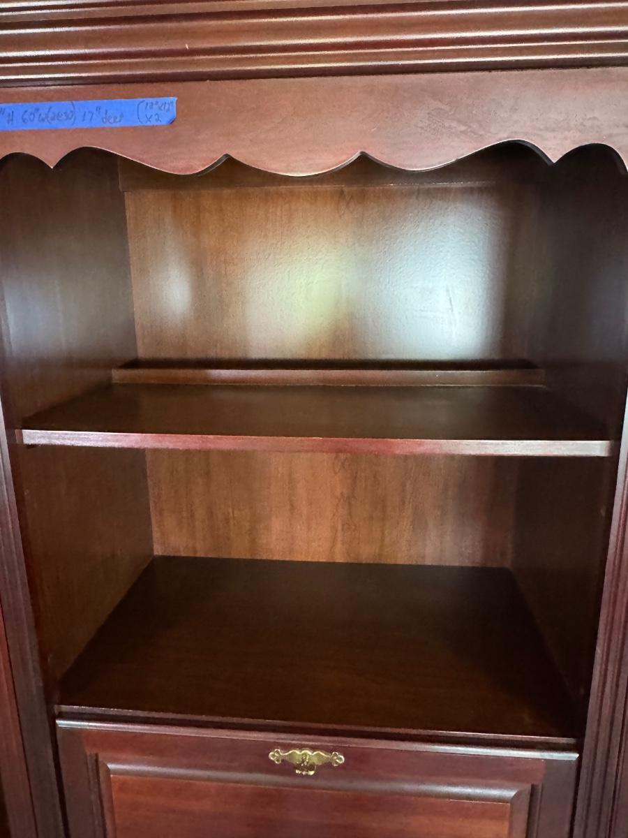 Dimensions for Wall Unit are 75” h, 60” w (both bookcases total width), 17” d. Each Corner Shelf is 12” h and 12” across. Please see all pictures as they are the best representation of the items. The pictures show condition, measurements if taken, and what is included in the lot. Due to the large amount that we photograph and the time frame, we are not always able to take measurements. All items unless noted, are pre-owned and have been used. If you purchased furniture, you must bring help. We do not allow one person to carry large furniture out on their own. Bring help, tools and a truck for the safety of our client’s homes, and your personal safety. Any damages that result to the property including walls, and floors due to moving of the furniture will be charged to the buyer. Company policy. Thank you.