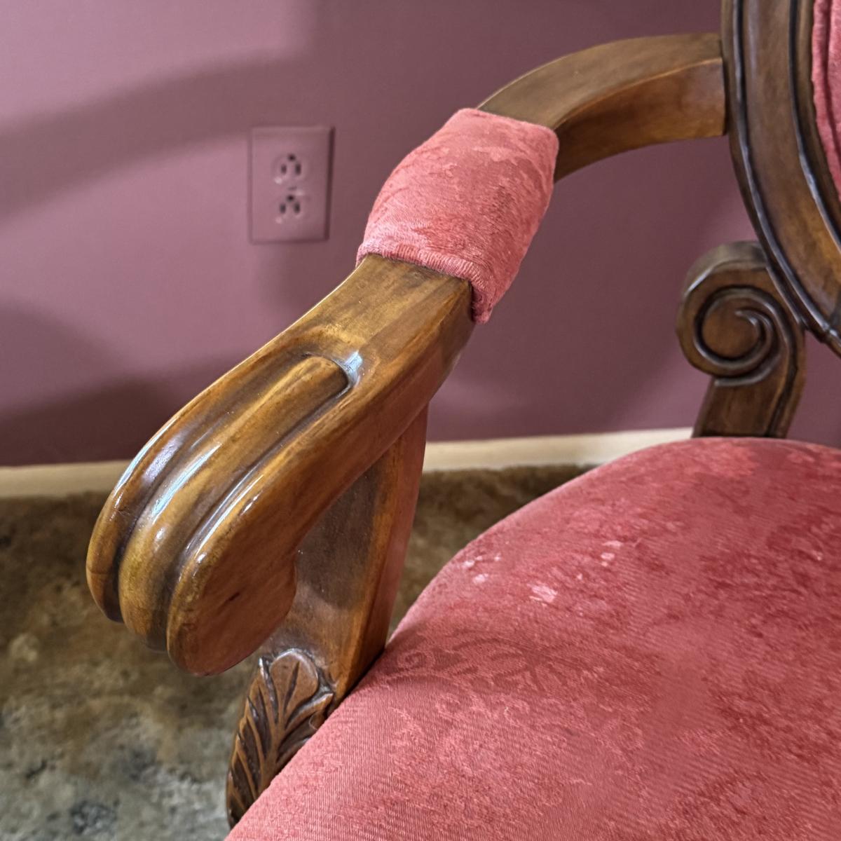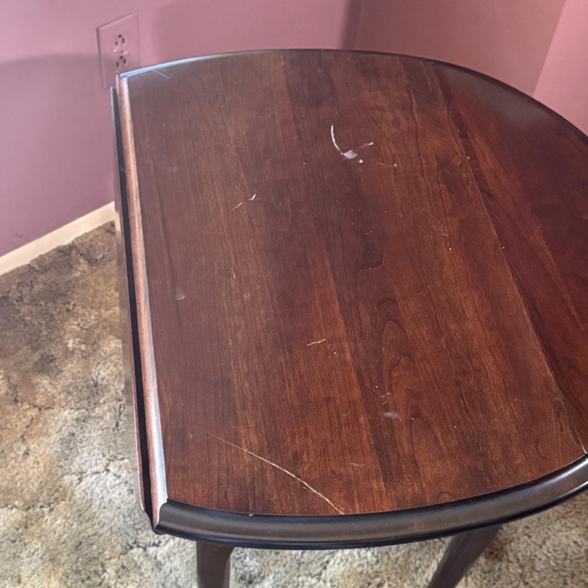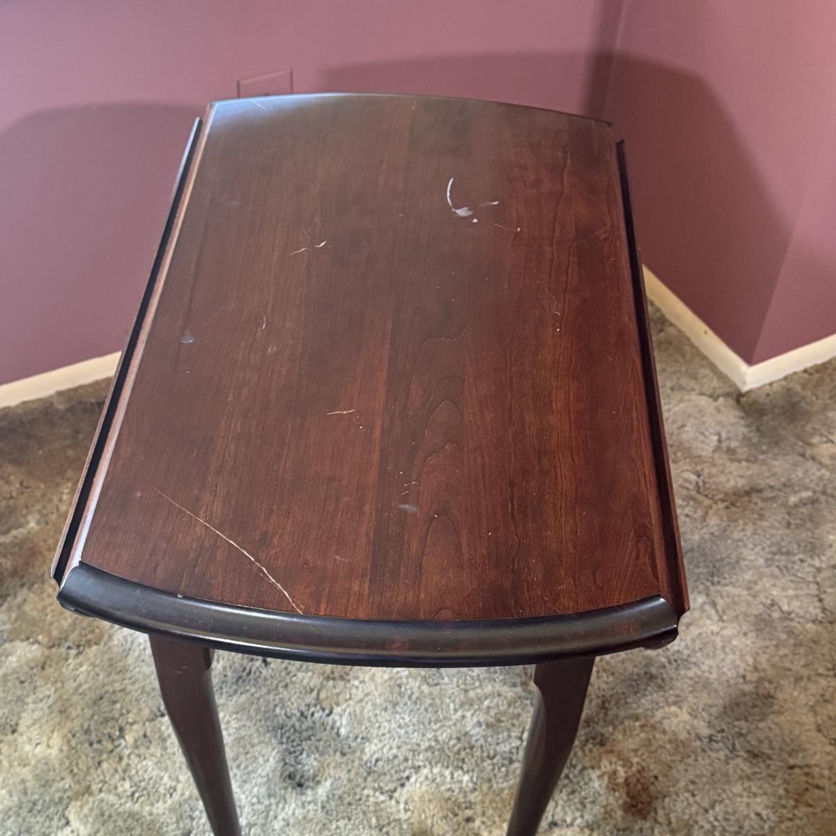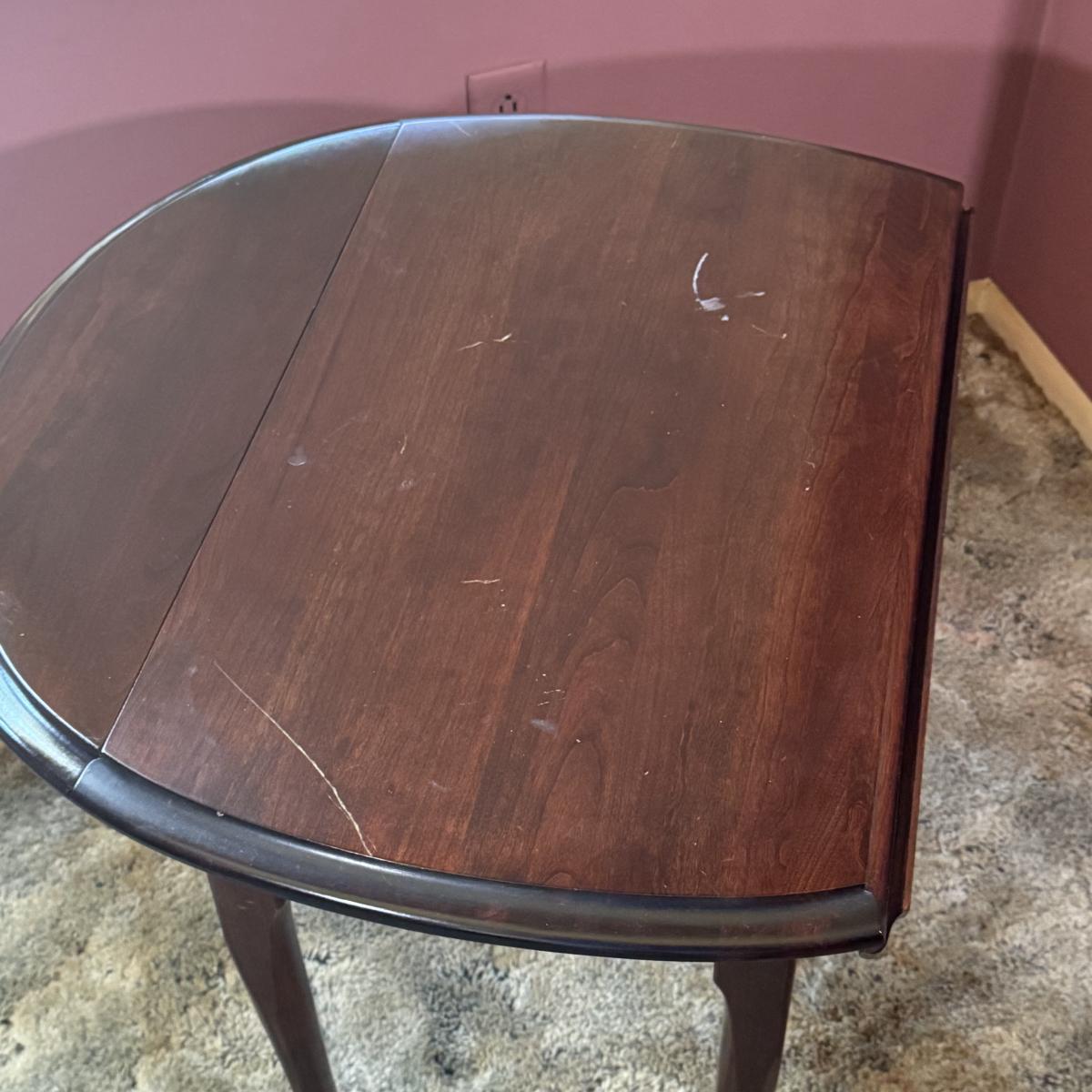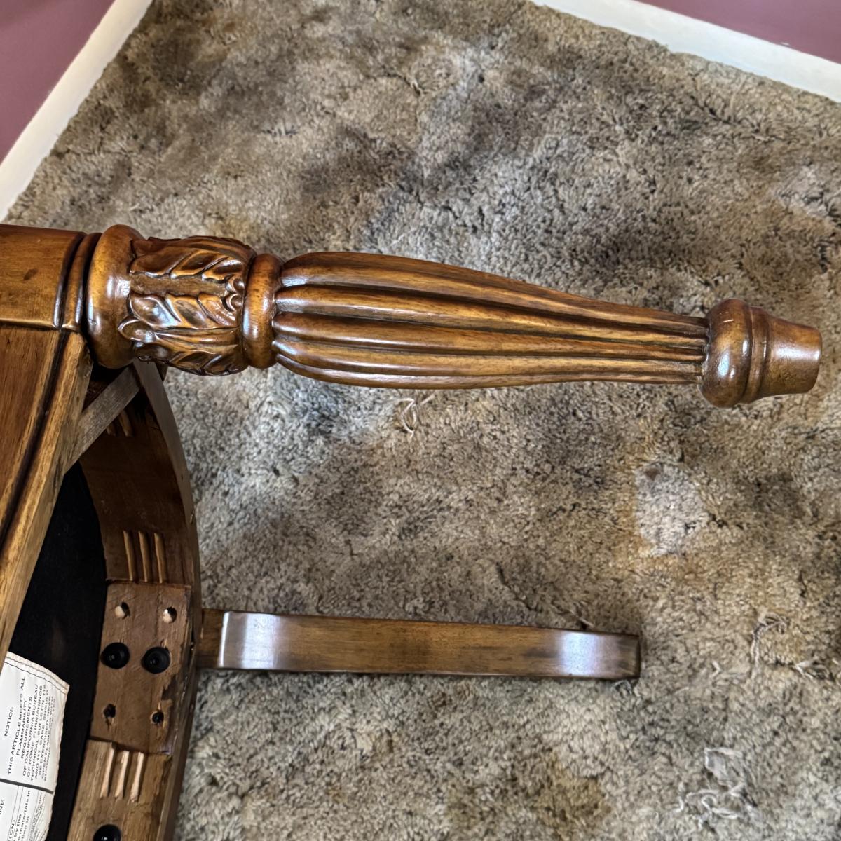 Chair is 41” h, 25” across, 19” d. Magazine rack is 11.5” h, 17” w, 8” d. Each drop leaf is 7.5” wide. Total dimensions of table with leaves are 21.5” h, 30” w, 27” d. Please see all pictures as they are the best representation of the items. The pictures show condition, measurements if taken, and what is included in the lot. Due to the large amount that we photograph and the time frame, we are not always able to take measurements. All items unless noted, are pre-owned and have been used. If you purchased furniture, you must bring help. We do not allow one person to carry large furniture out on their own. Bring help, tools and a truck for the safety of our client’s homes, and your personal safety. Any damages that result to the property including walls, and floors due to moving of the furniture will be charged to the buyer. Company policy. Thank you.