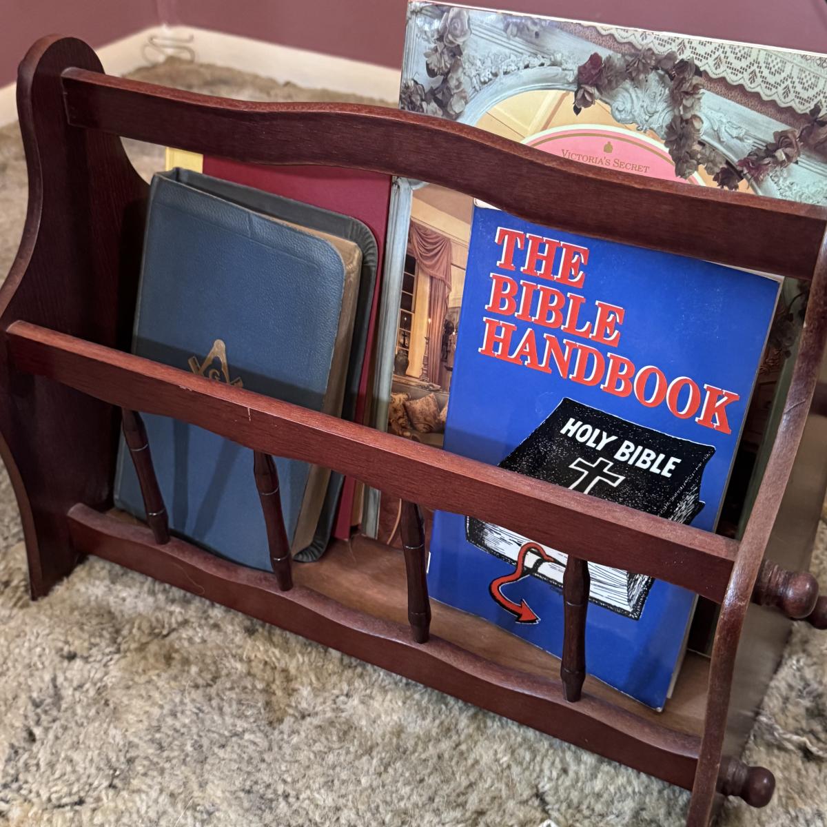 LOT 23L: Antique Victorian Chair, Mid 20th Century Drop Leaf Table and Vintage Wooden Magazine Rack!