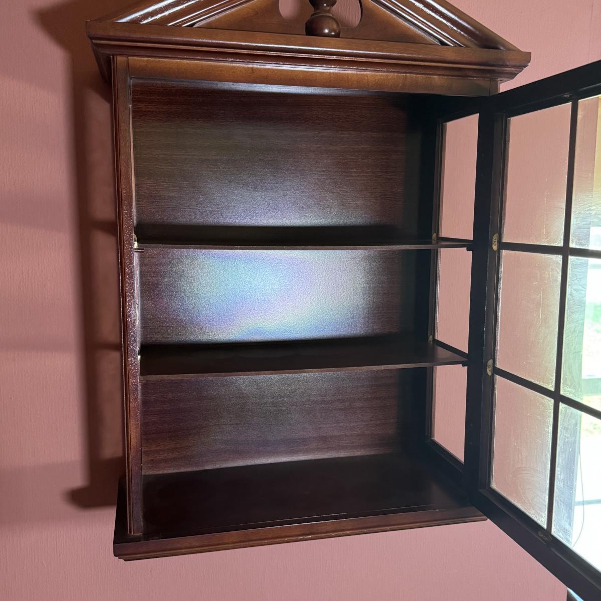 LOT 26L: Front Opening Vintage Wooden Curio Cabinet with Glass Shelves and Door!