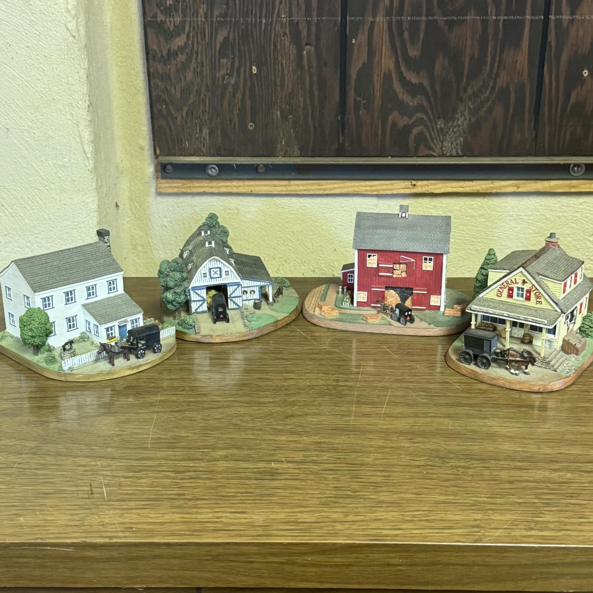 LOT 34C: Danbury Mint’s “The Amish Heritage Collection,” Including General Store, Farmhouse, Stables, and Hay Barn!
