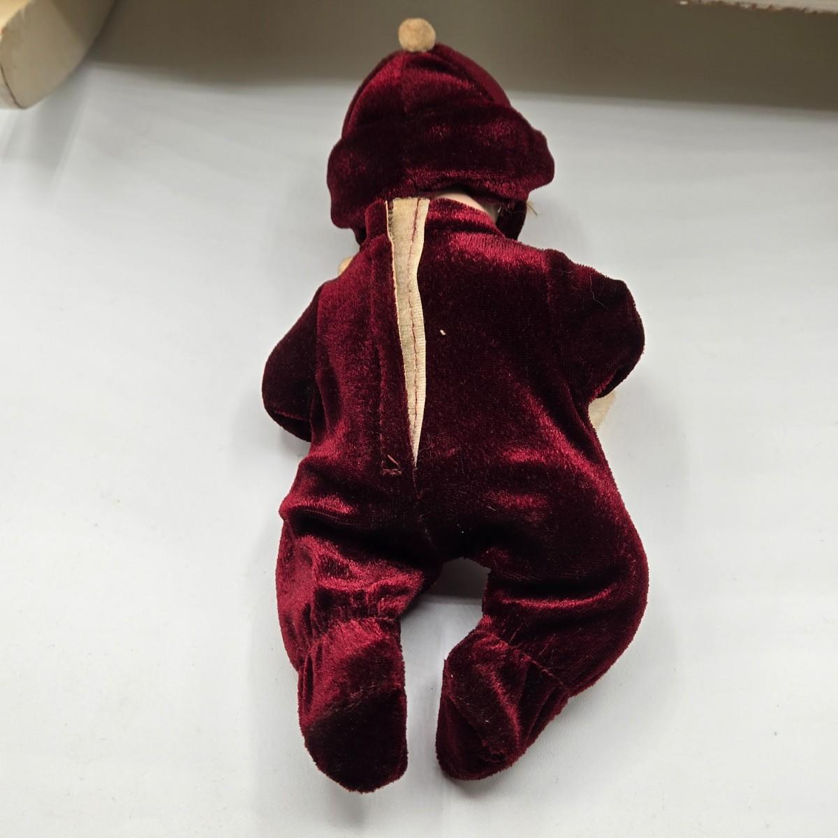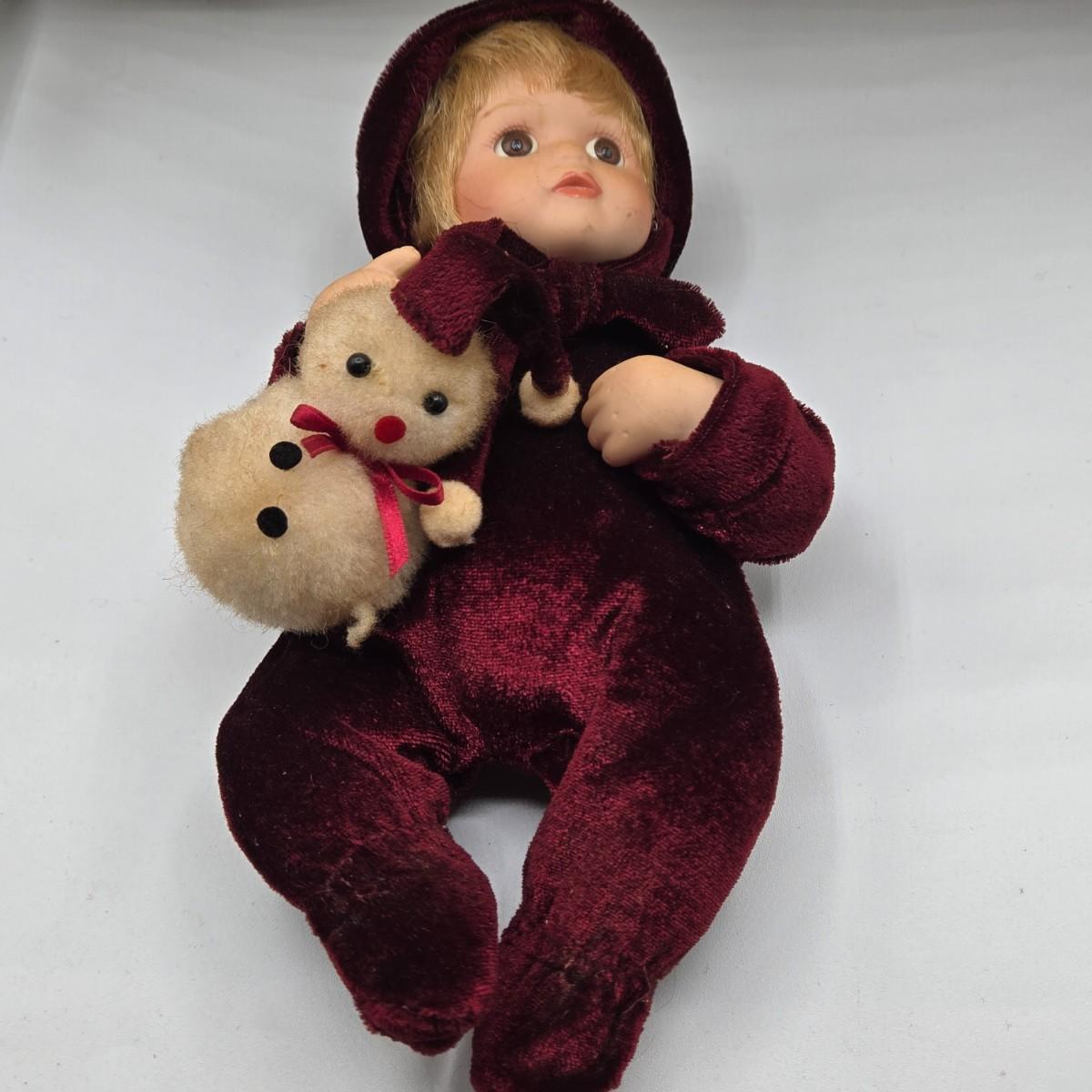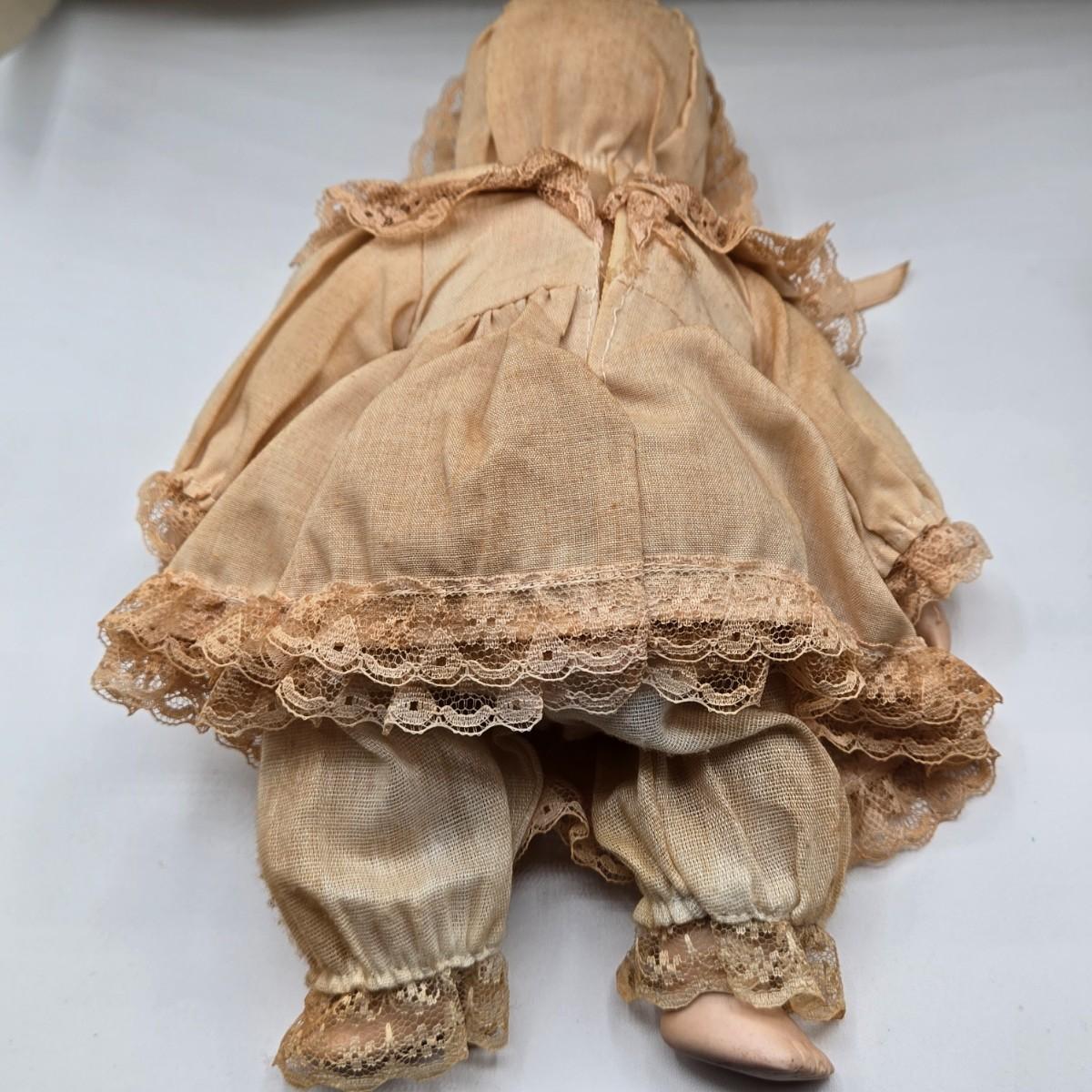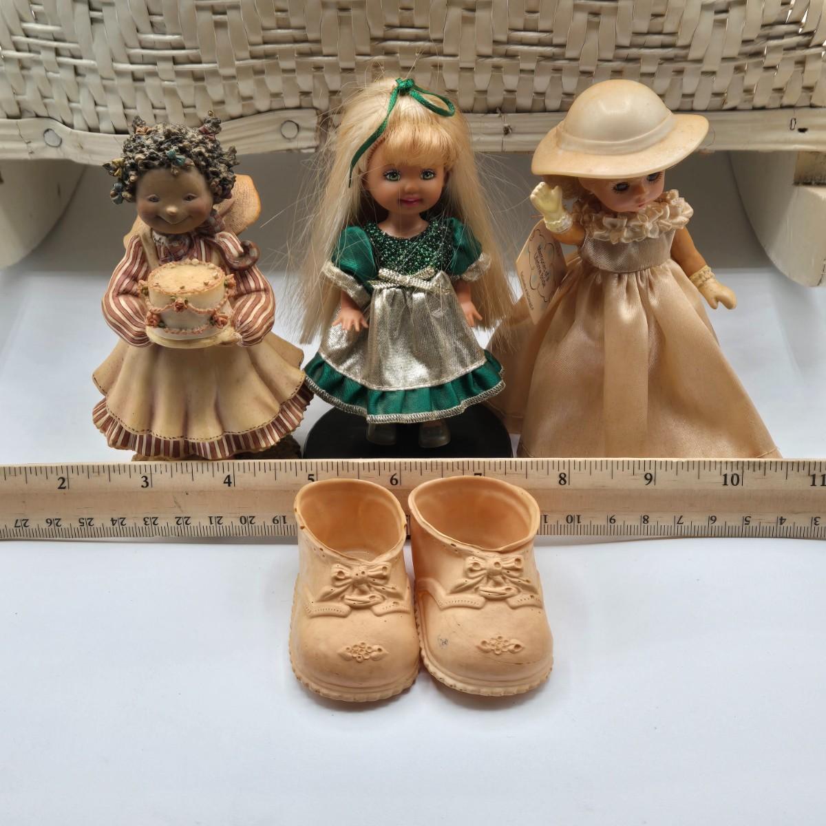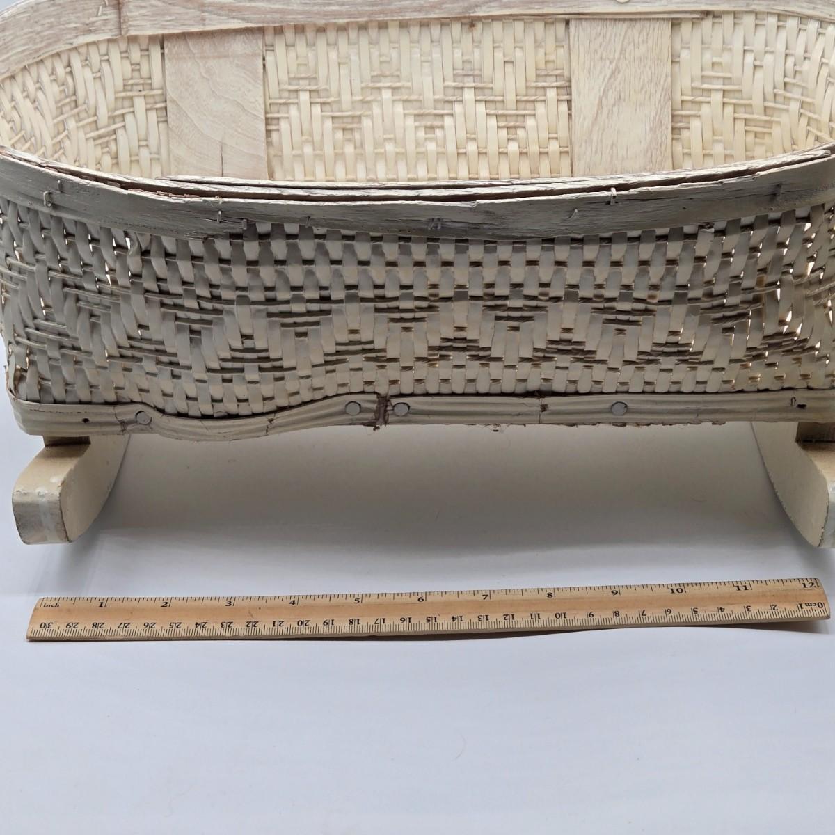 LOT 42A: Wicker Doll Cradle, Raggedy Ann & Andy, Porcelain Sleeping Baby Doll, Porcelain Baby with Snowman, and More