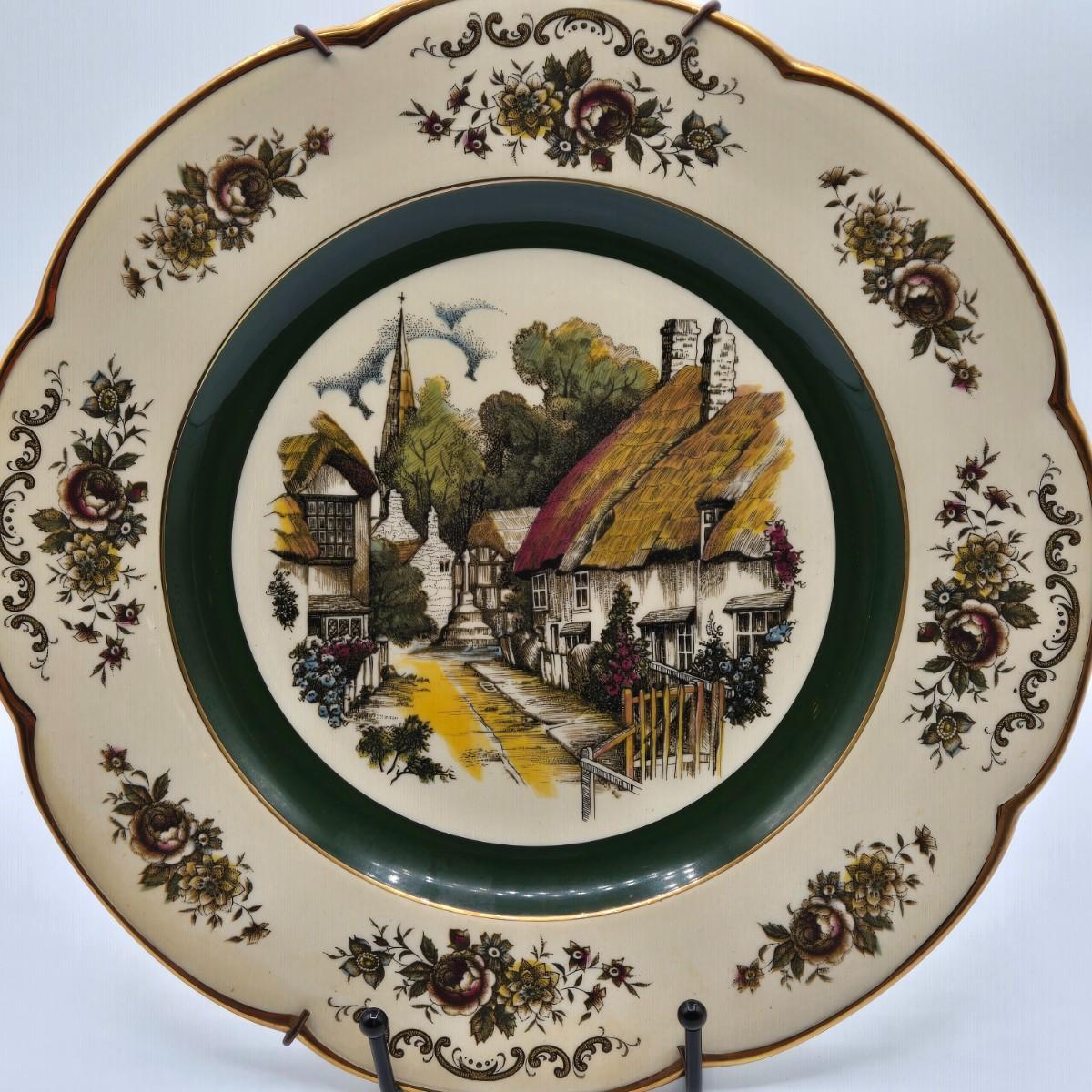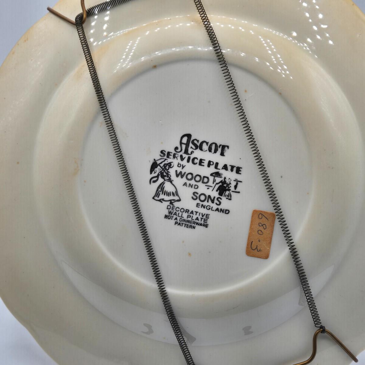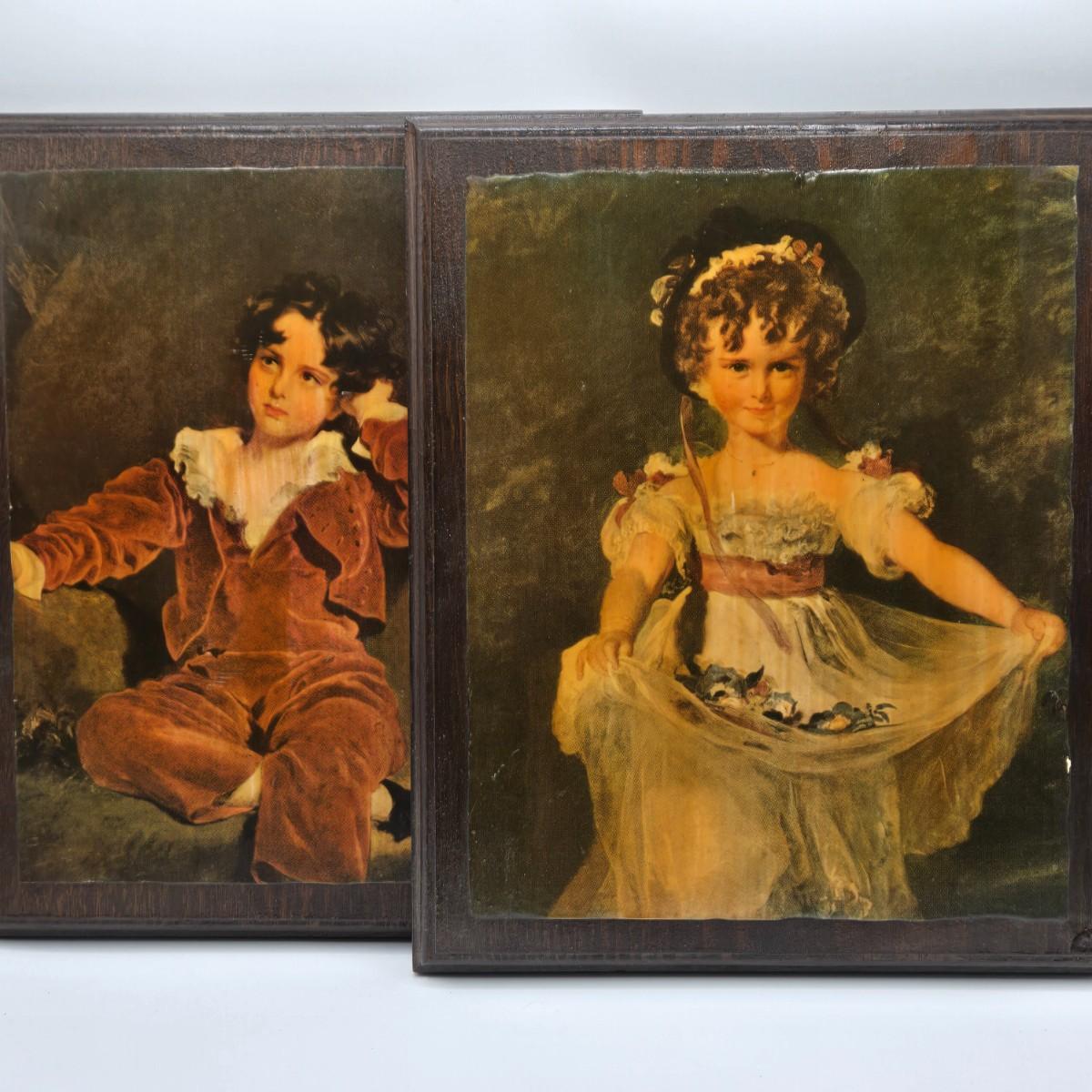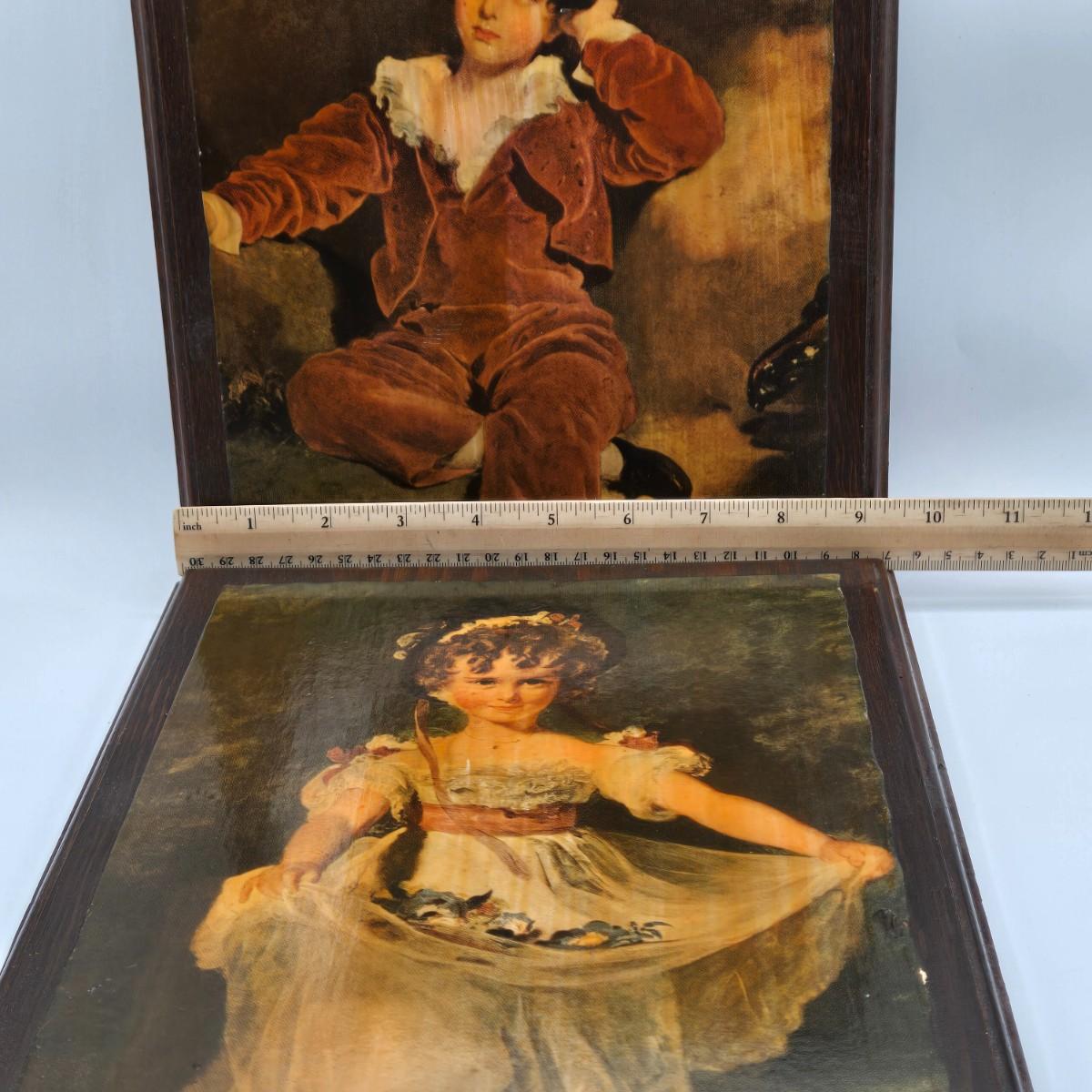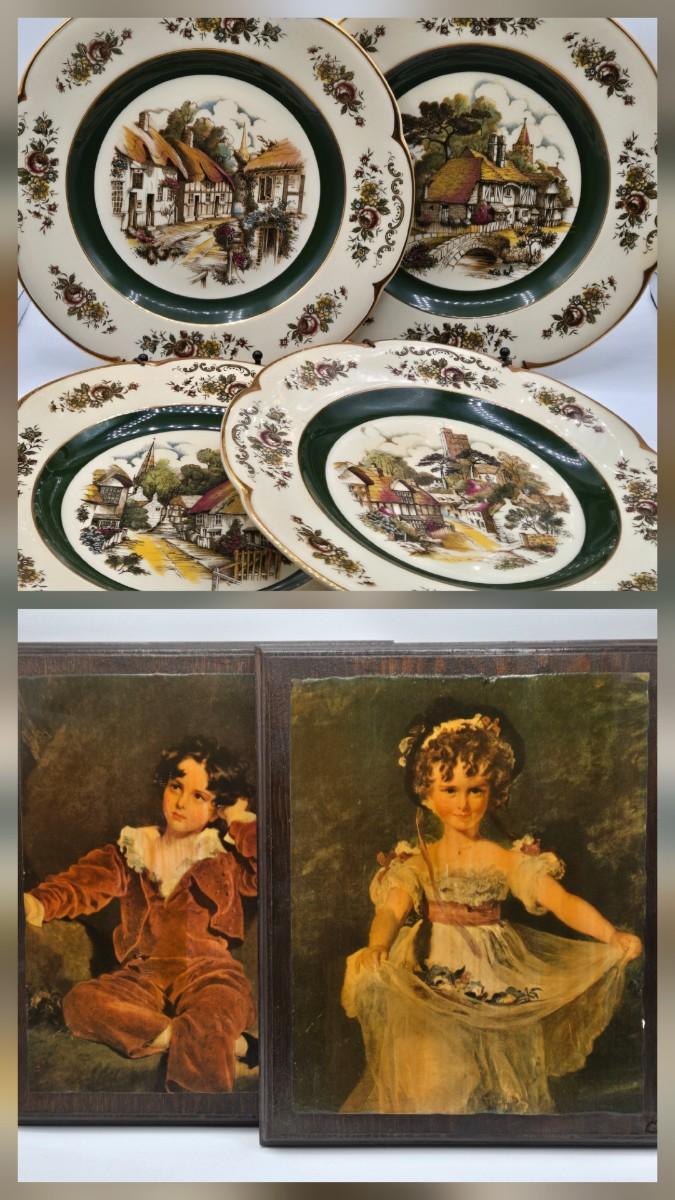 LOT 43A: Four Wood and Sons England Decorative Wall Plates & The Red Boy & Miss Louisa Murray Prints on Wood Plaques