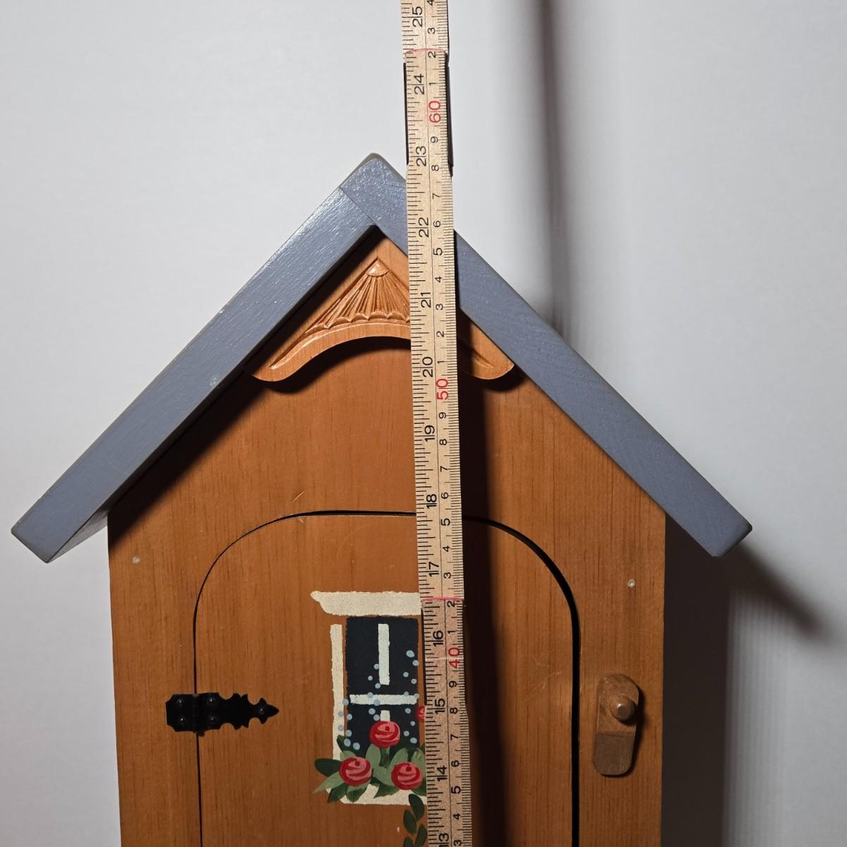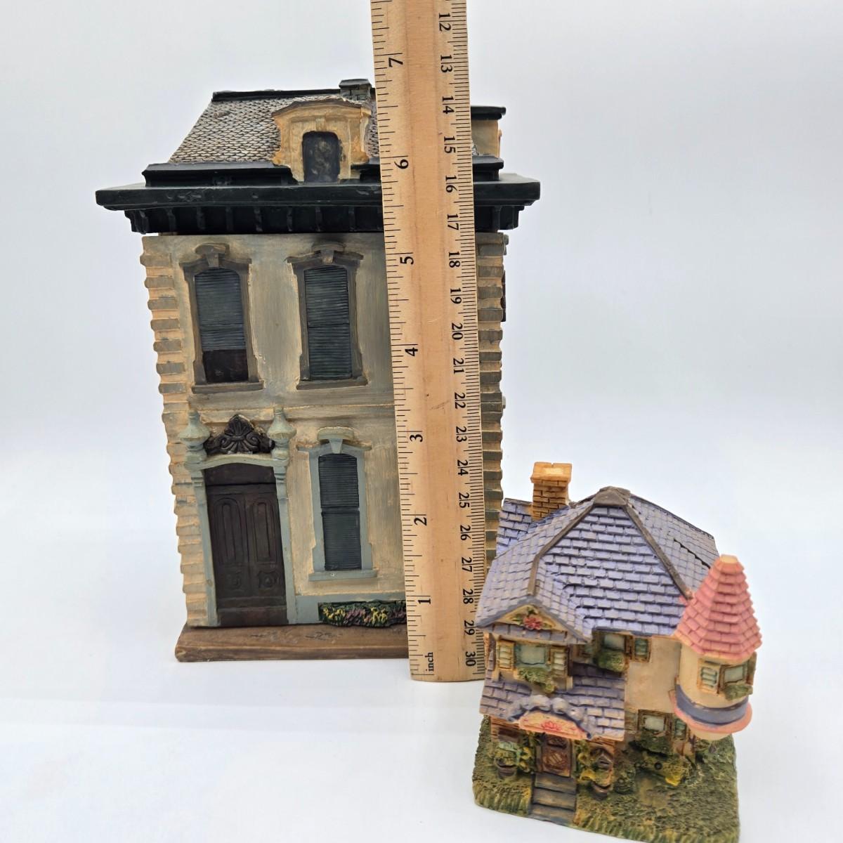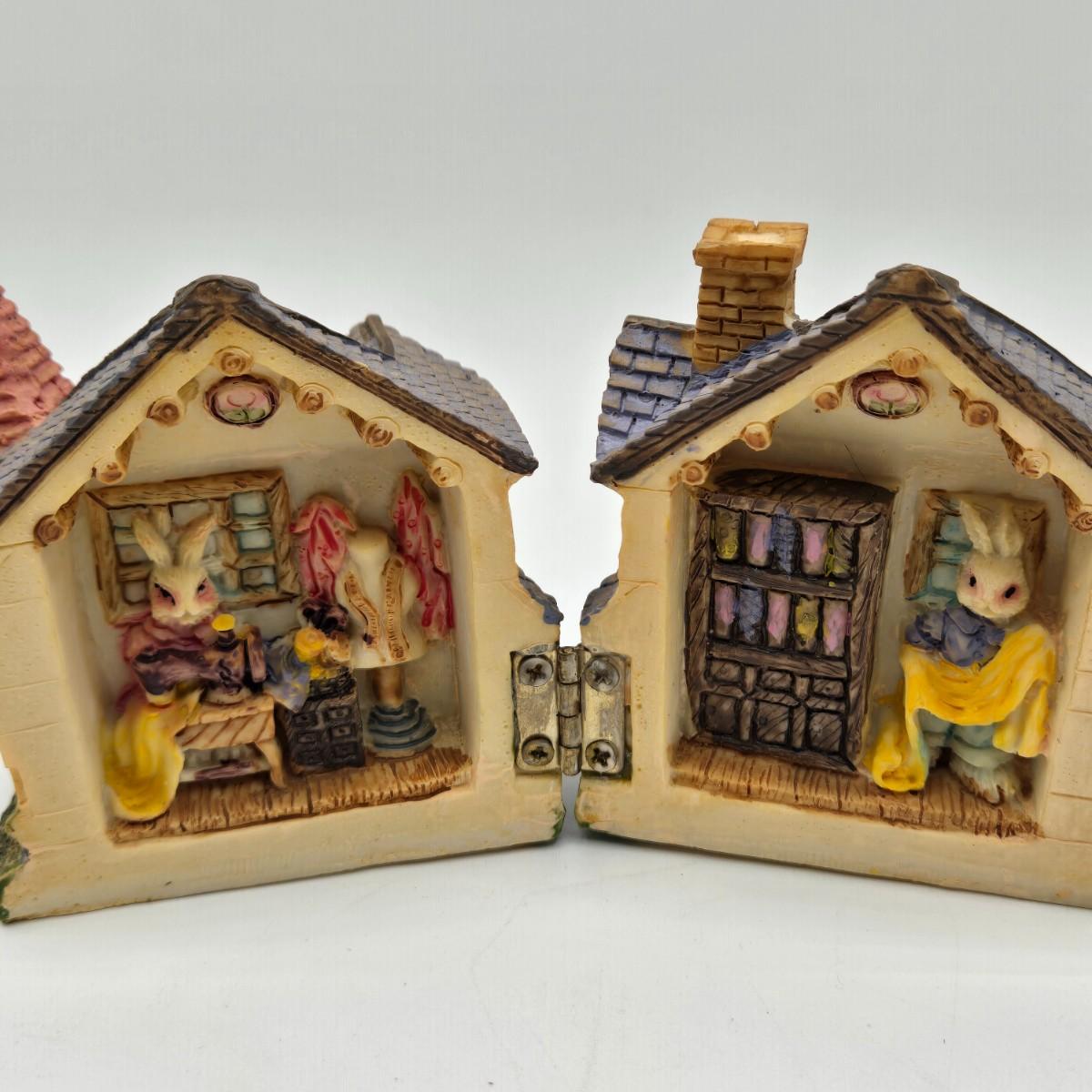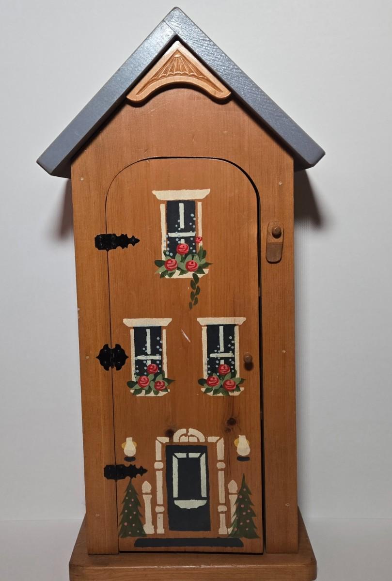 LOT 57A: Wooden House Cabinet with Metal Doll house Furniture, Two Miniature Tea Sets, and More