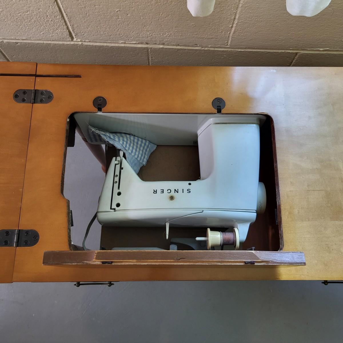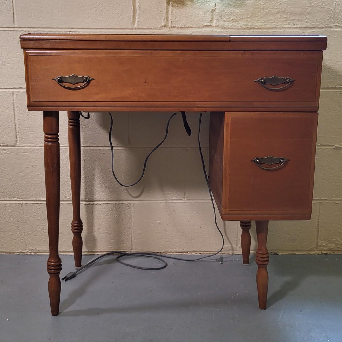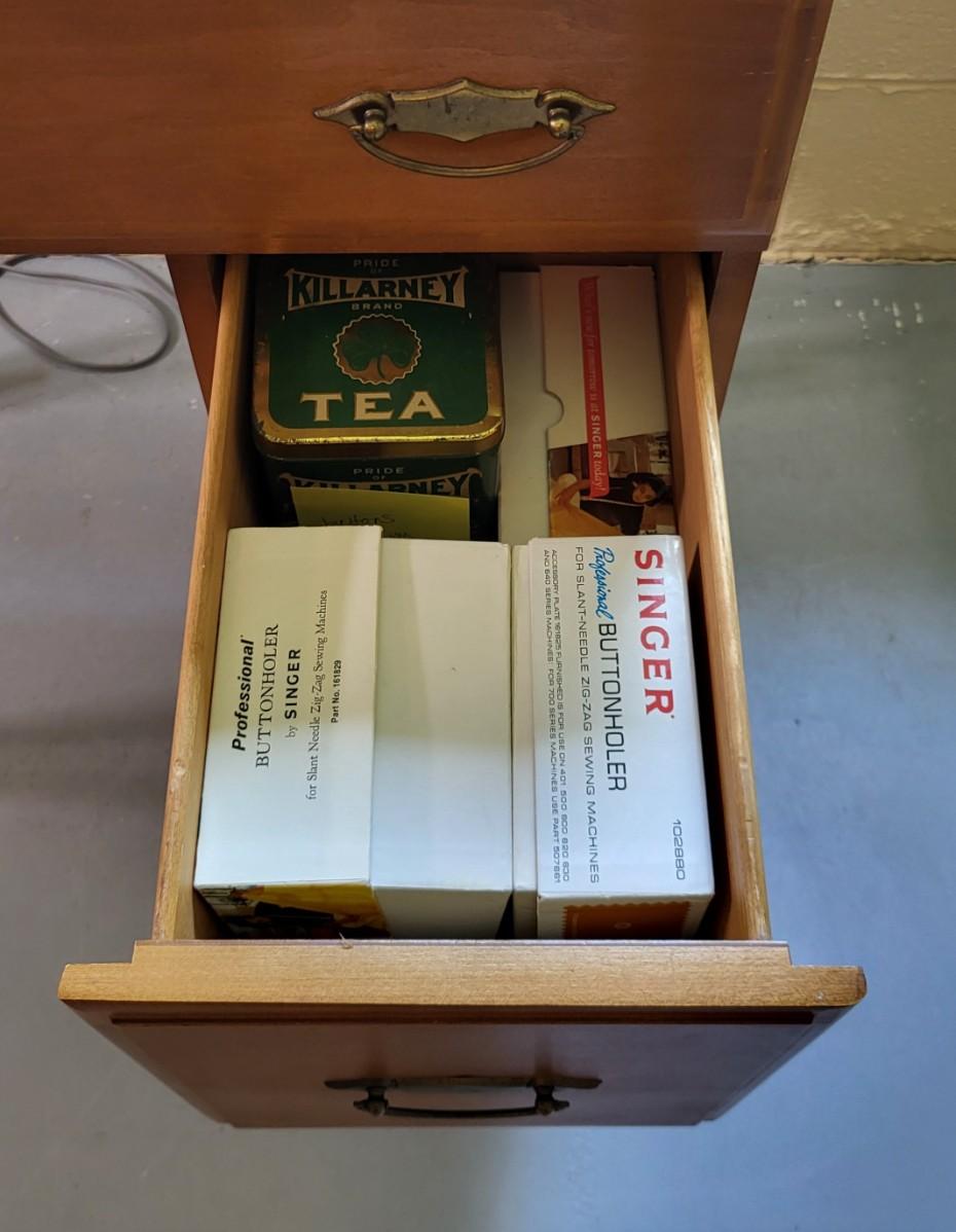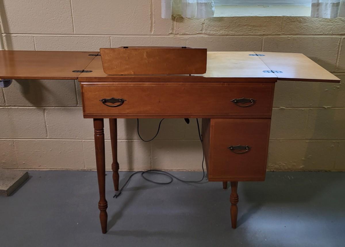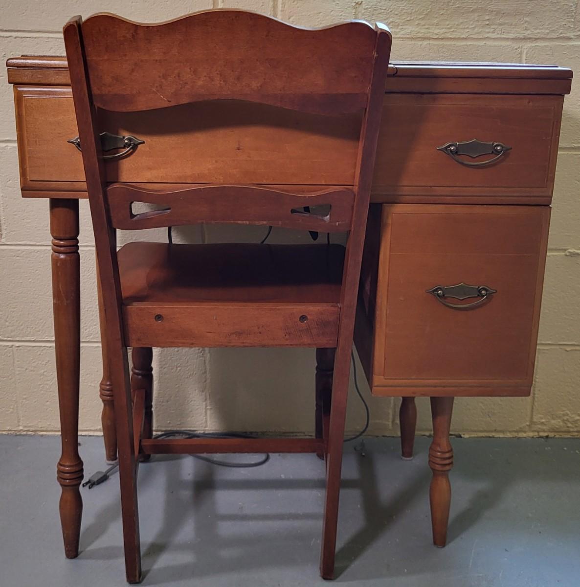 LOT 2B: Wooden Table and Chair with Sewing Machine and Supplies Included