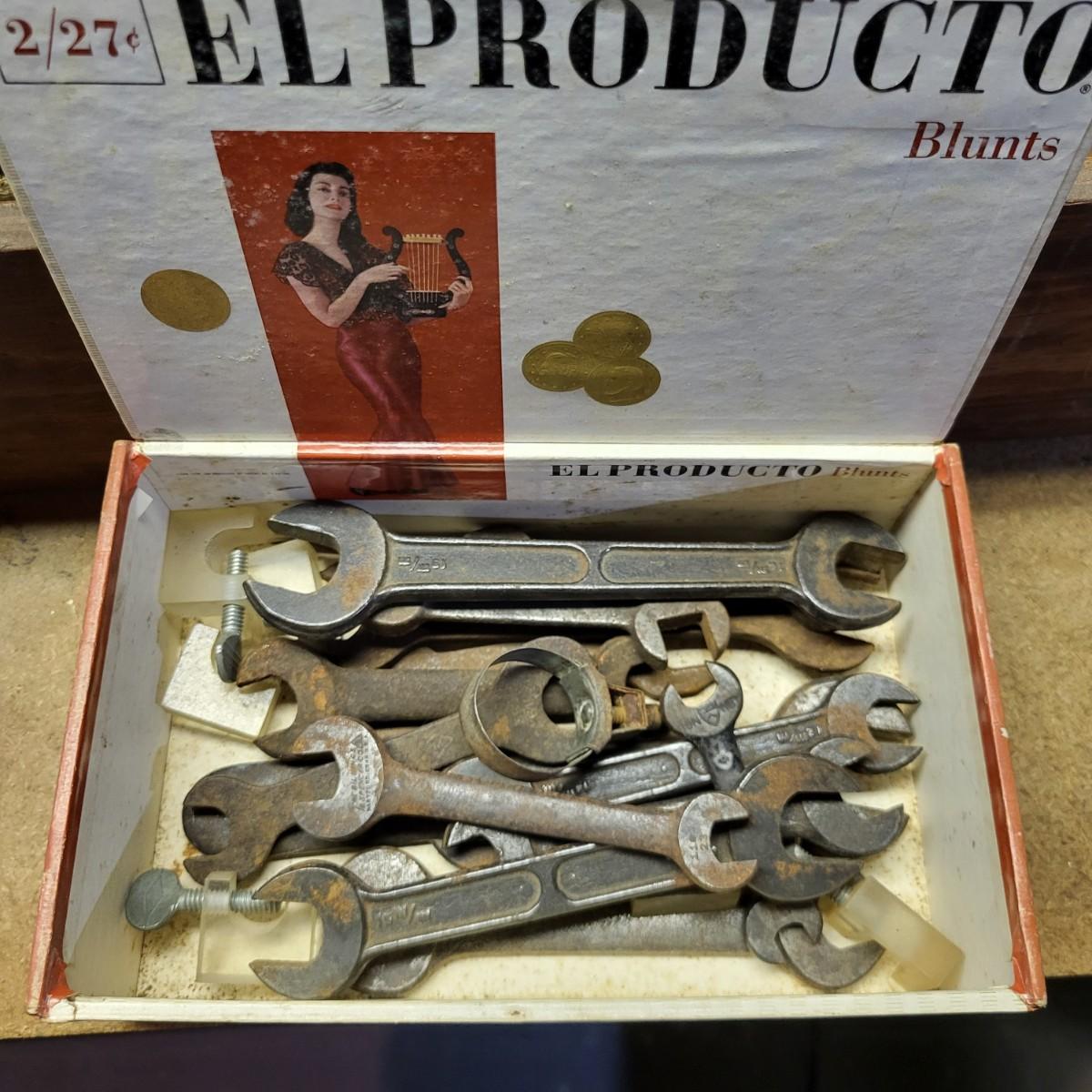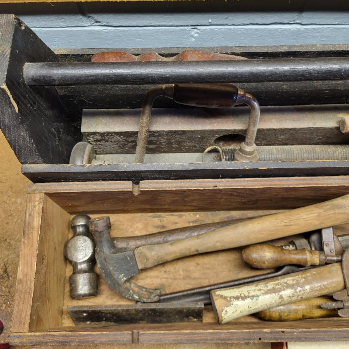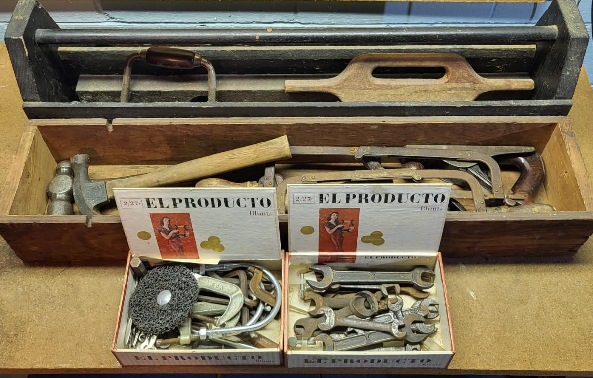 LOT 20B: Two Vintage Tool Boxes with Assorted Vintage Tools and Two Cigar Boxes with Assorted Wrenches and Clamps