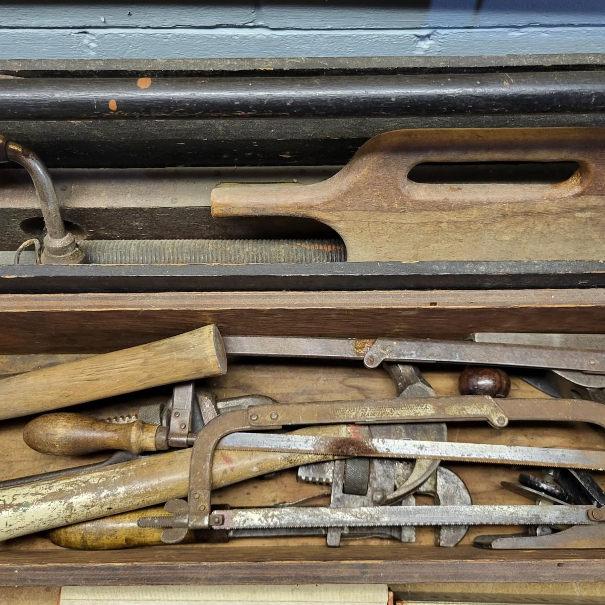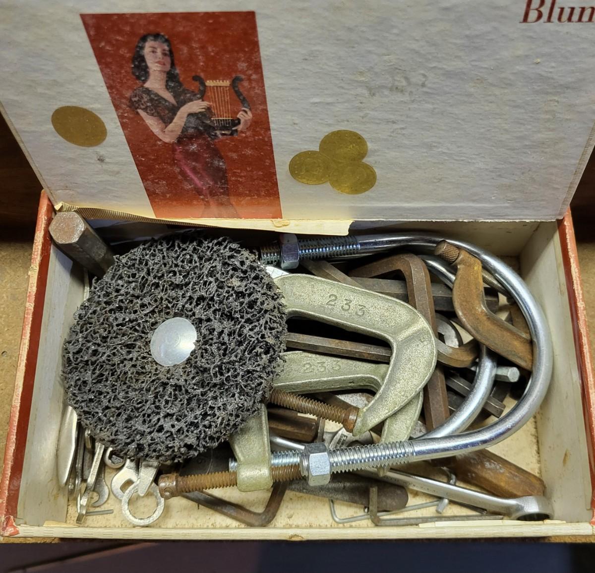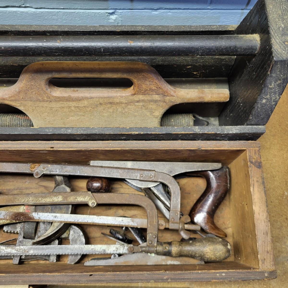 LOT 20B: Two Vintage Tool Boxes with Assorted Vintage Tools and Two Cigar Boxes with Assorted Wrenches and Clamps