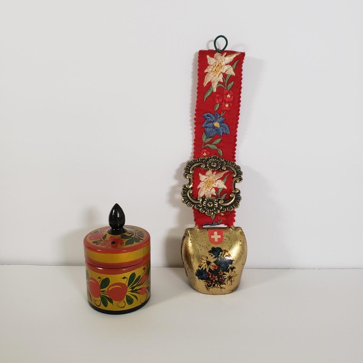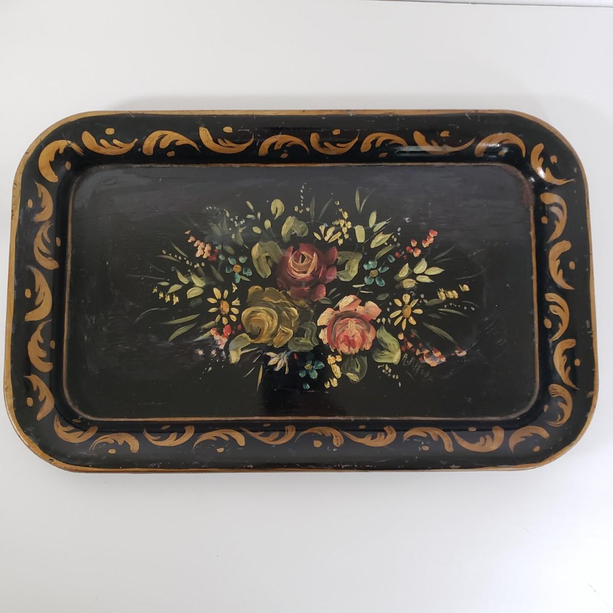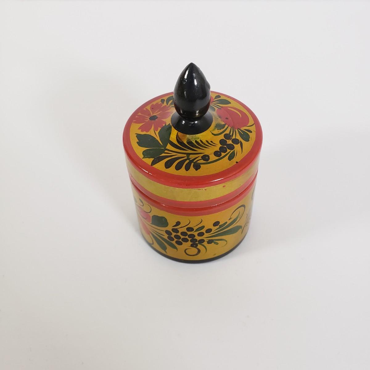 LOT 35K: Vintage Lot- Russian Ussr Hand Painted Lacquered Wood Container, Baldwin Brass Candlesticks, Toleware Tray & More