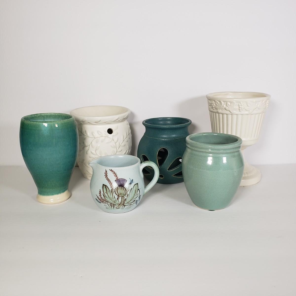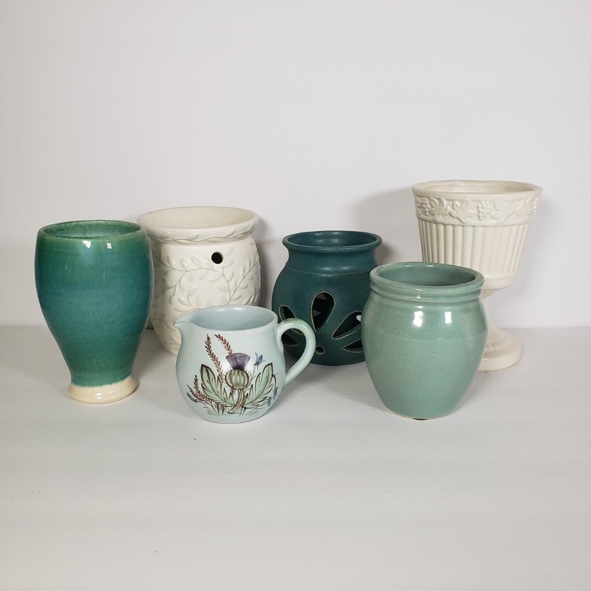 LOT 37K: Assorted Ceramics- Van Briggle Pottery, Buchan Portobello Scotland Thistleware Fine Stoneware Creamer & more