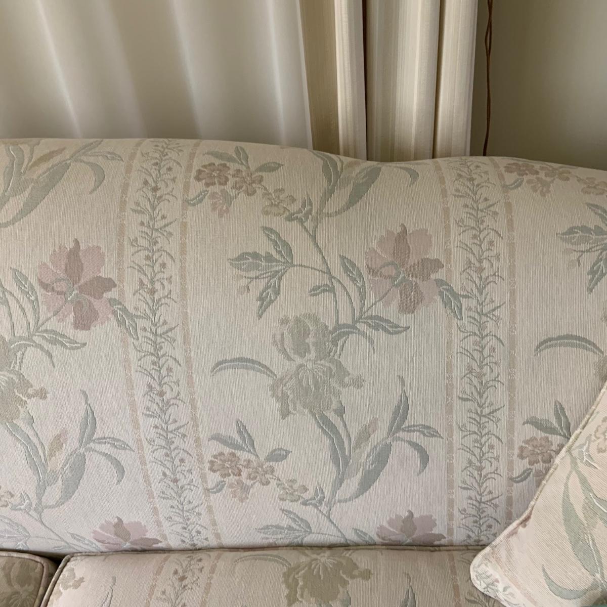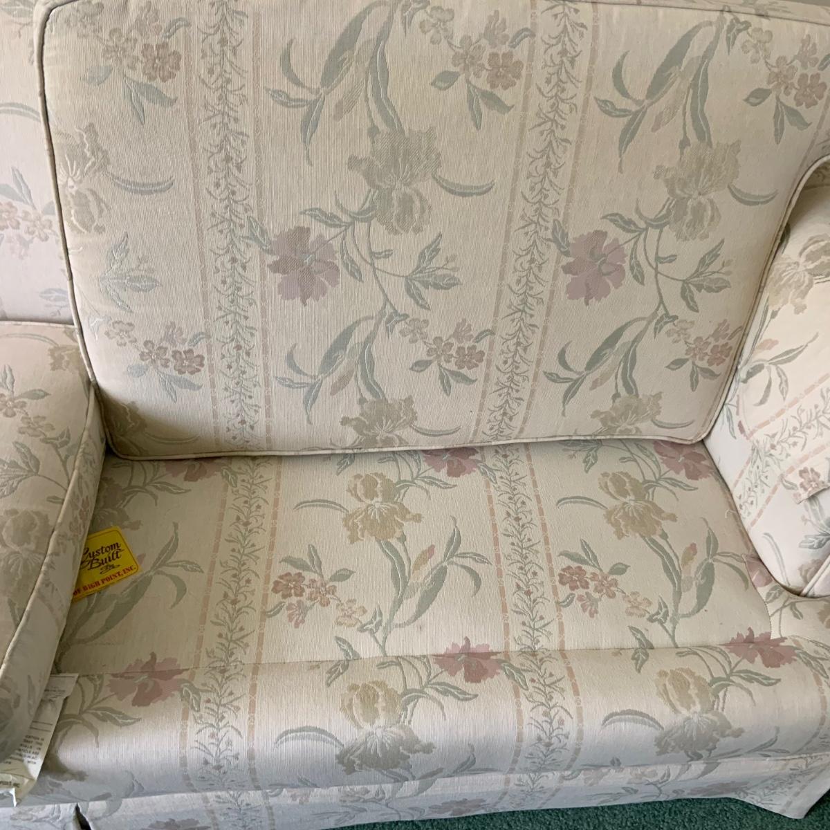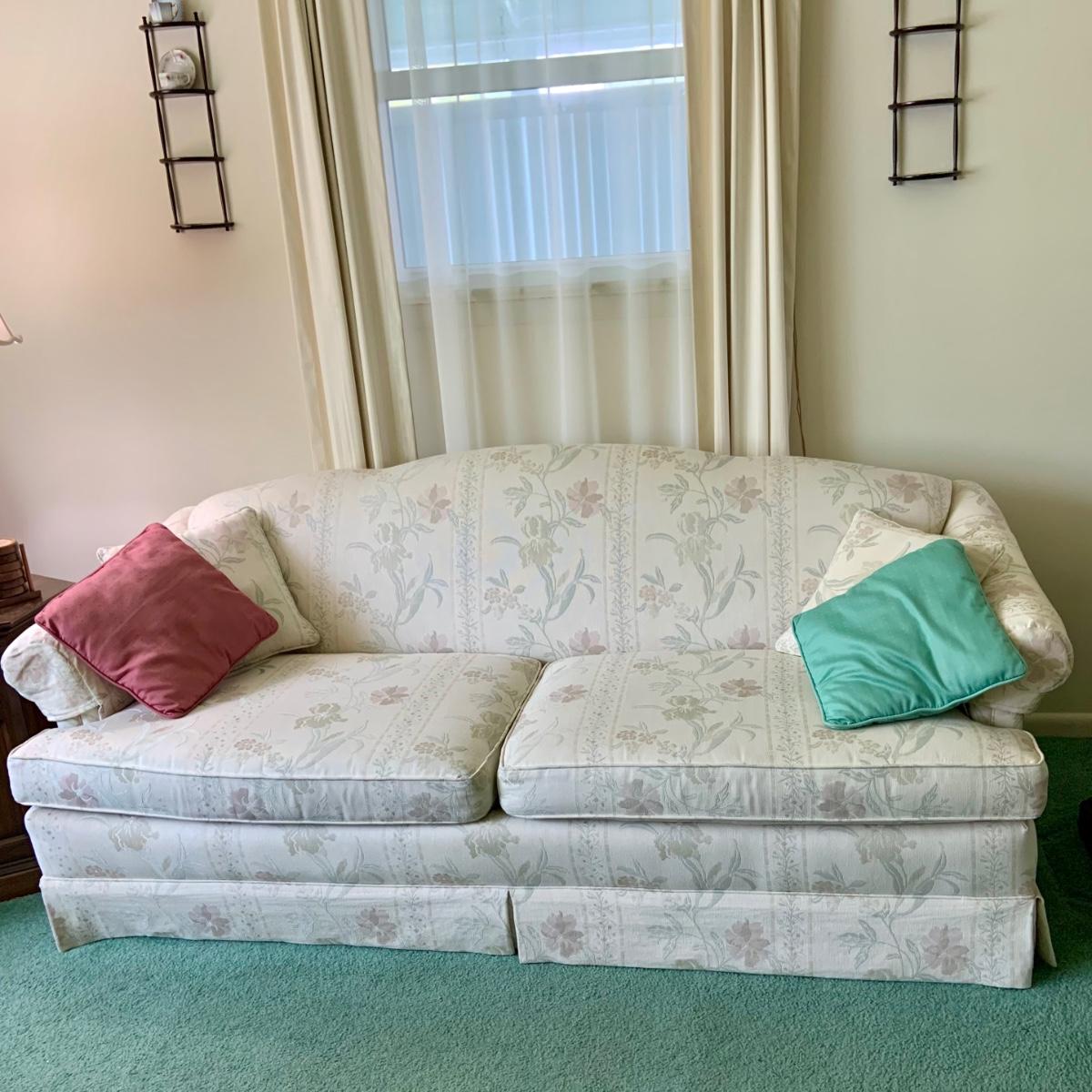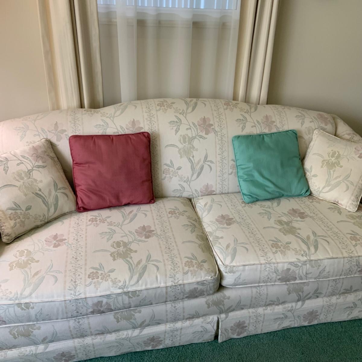 LOT 41L: American of High Point Custom Built White Floral Sofa with Decorative Pillows