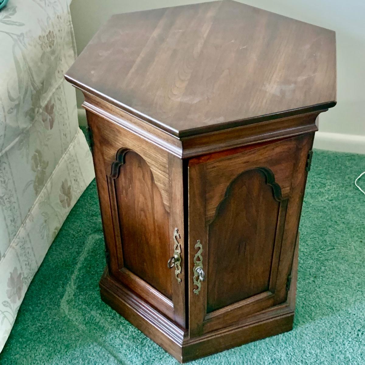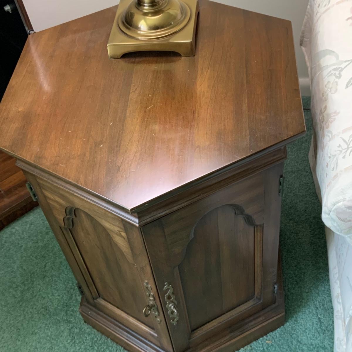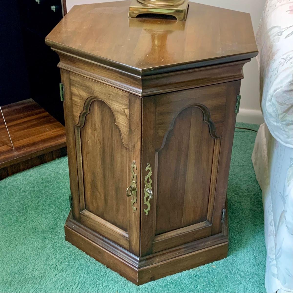 LOT 42L: Pair of Mid Century Wooden Hexagon Side Tables w/ Storage