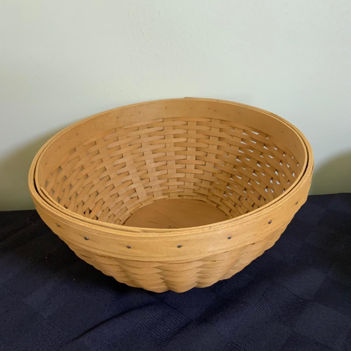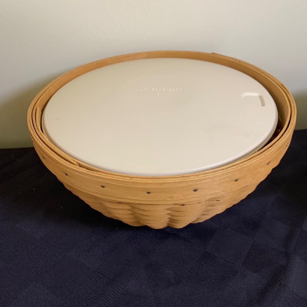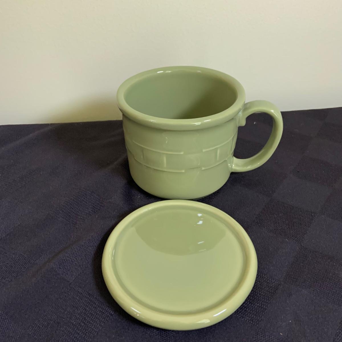 LOT 44L: Longaberger Baskets & More: Longaberger Candle Holders & Candle, Mug w/ Lid, Signed Basket w/ Lidded Bowl Insert