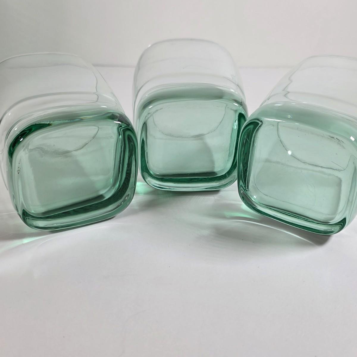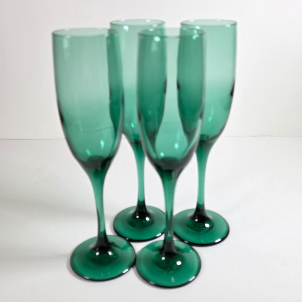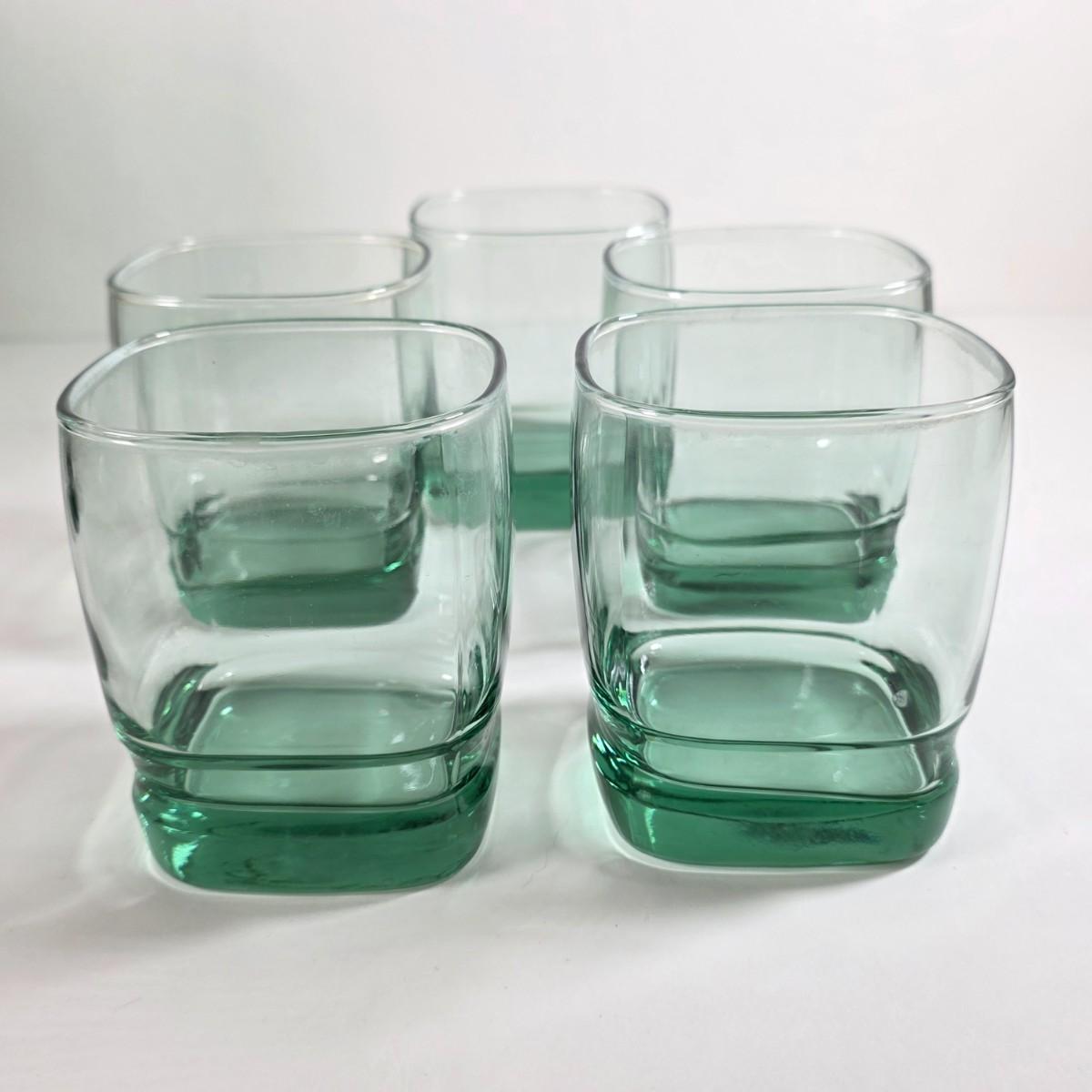 LOT 55D: Vintage Libby Carrington Green Glasses, 6 Highball Glasses, 5 Rocks Style & 4 Juniper Green Flute Champagne Glasses