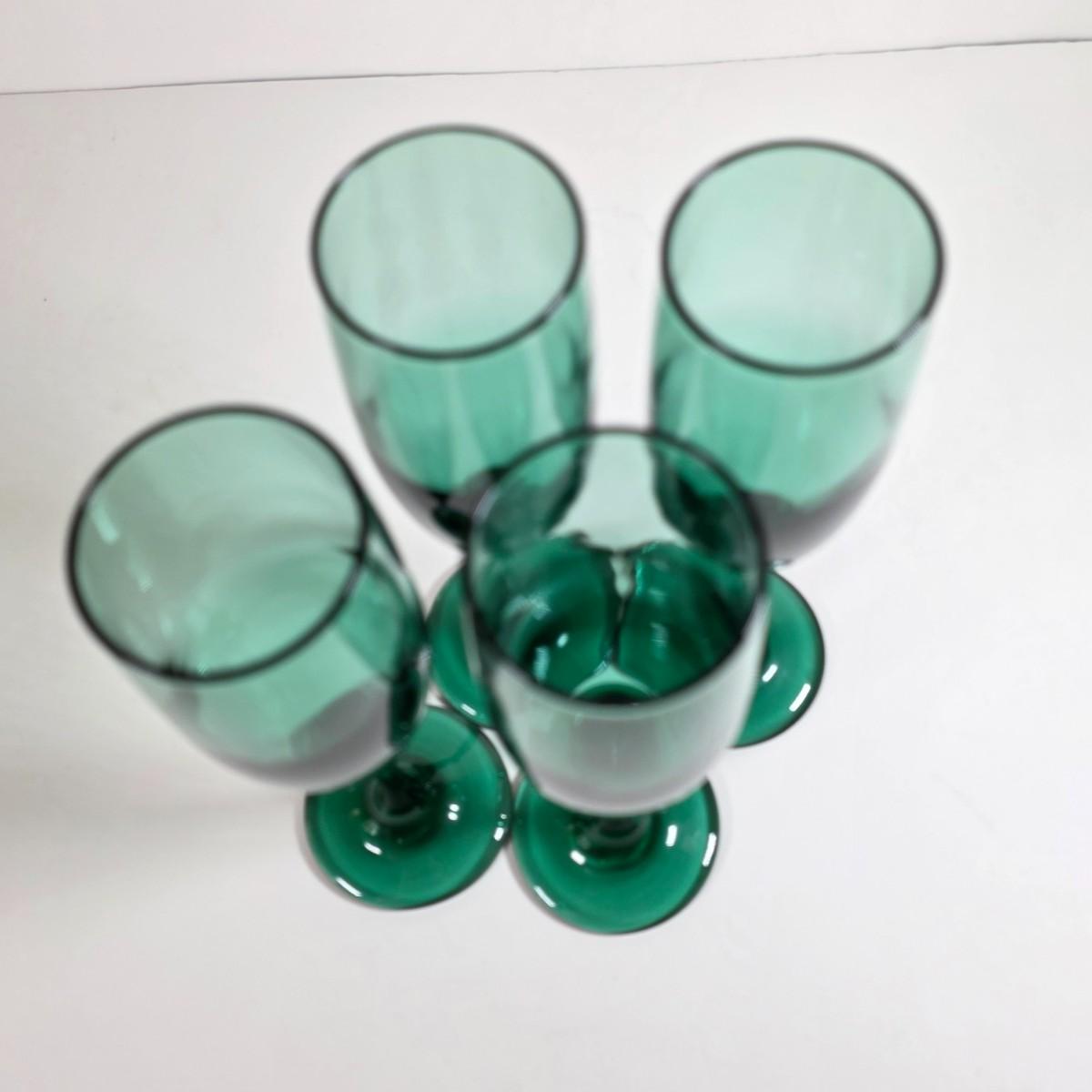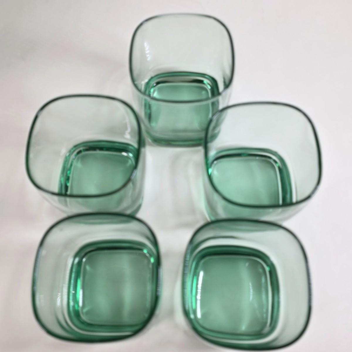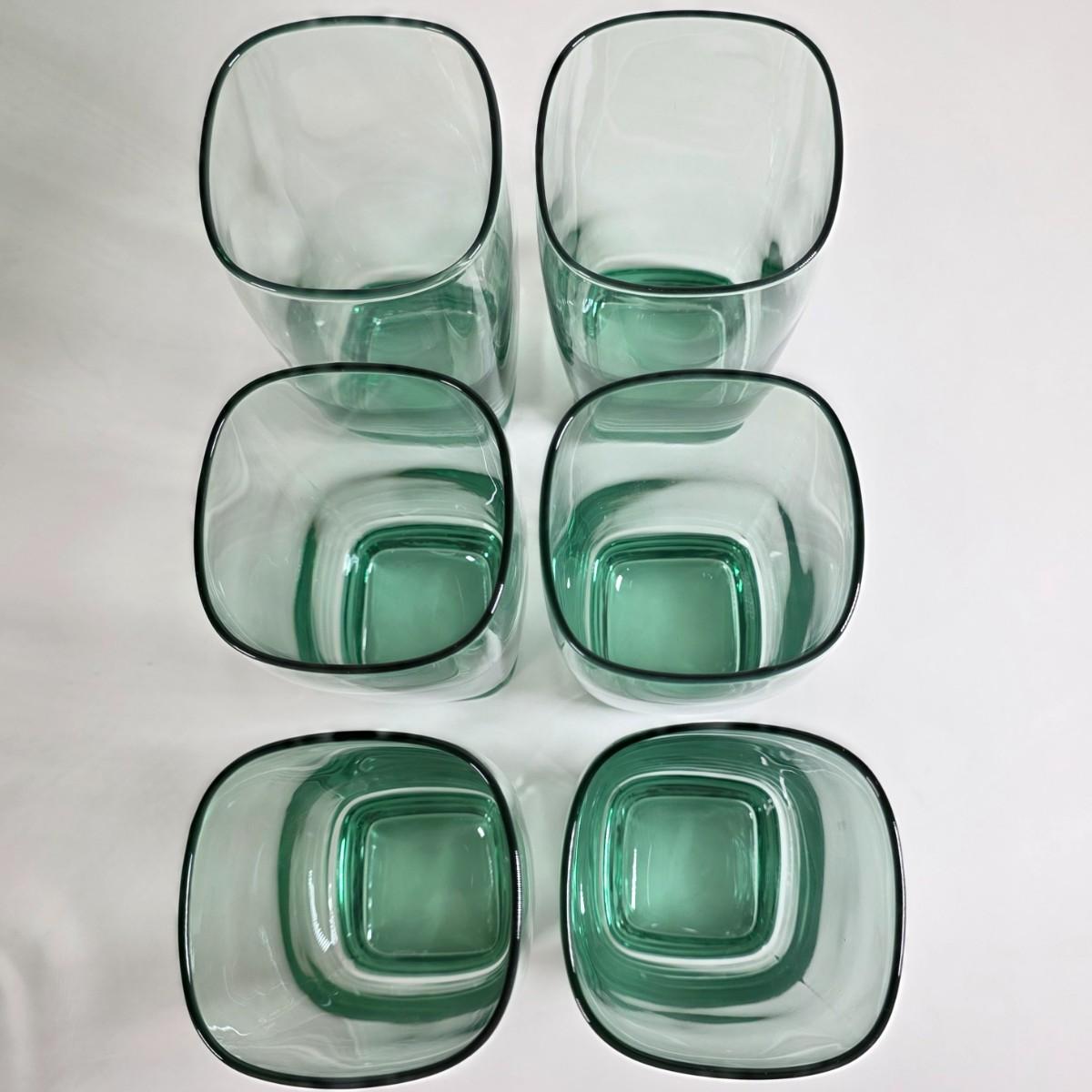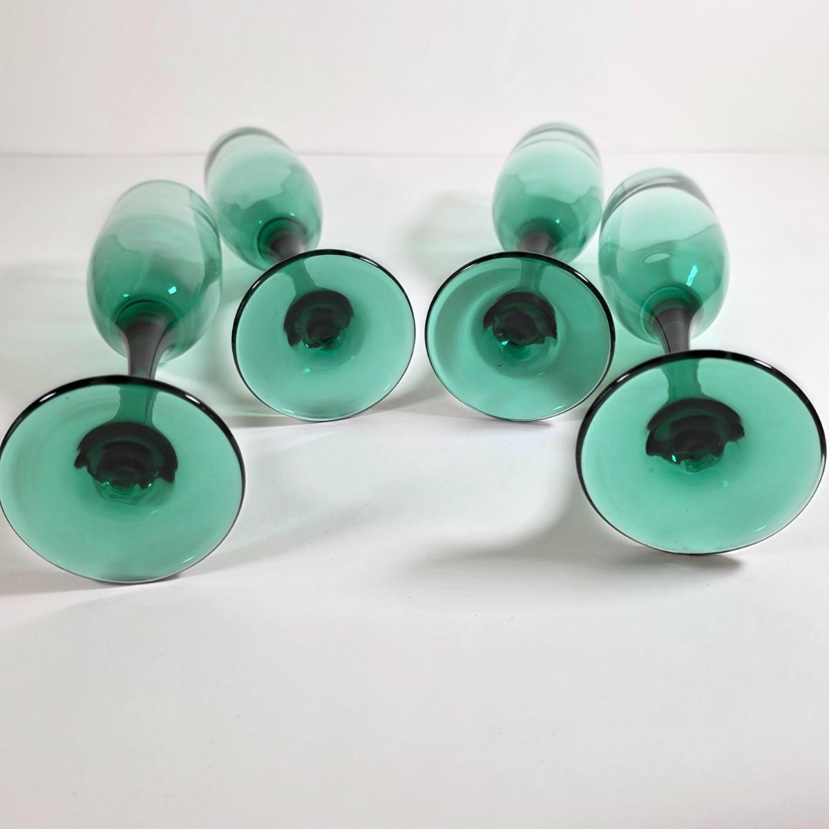 LOT 55D: Vintage Libby Carrington Green Glasses, 6 Highball Glasses, 5 Rocks Style & 4 Juniper Green Flute Champagne Glasses