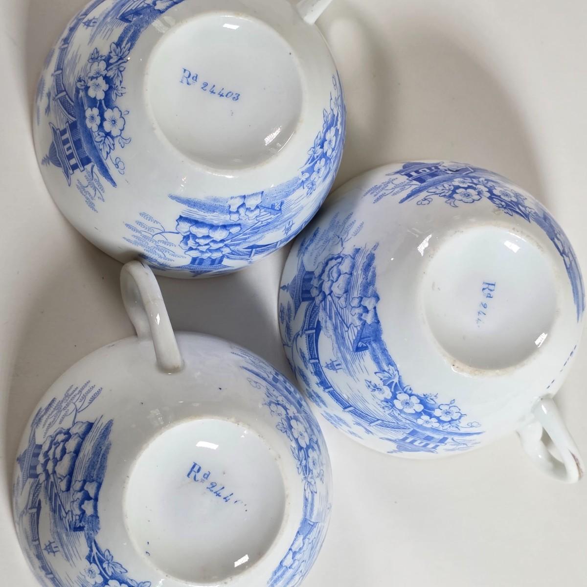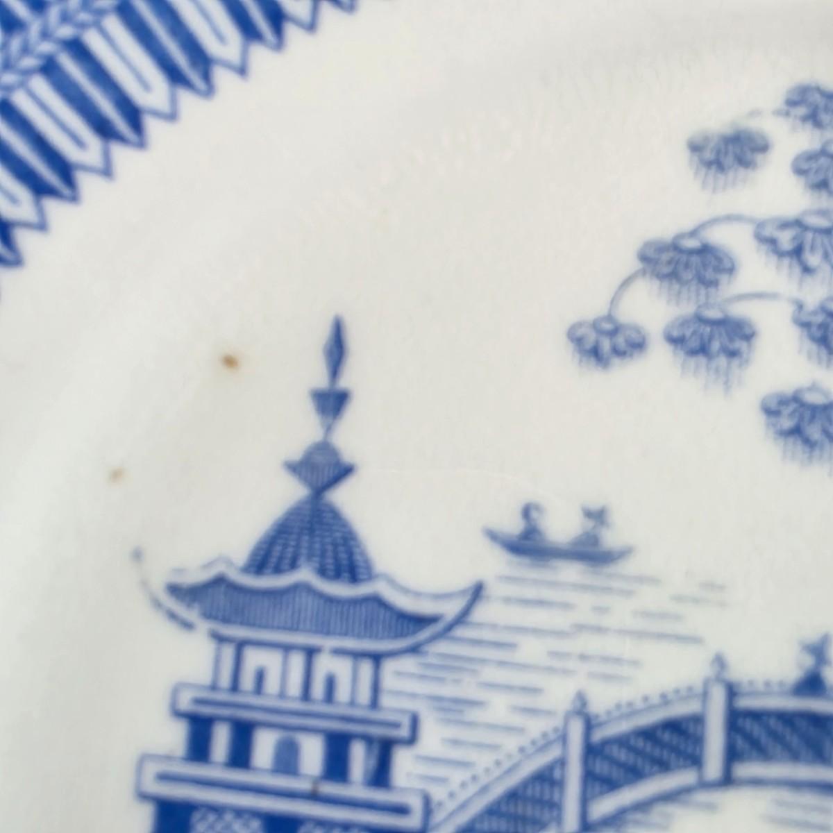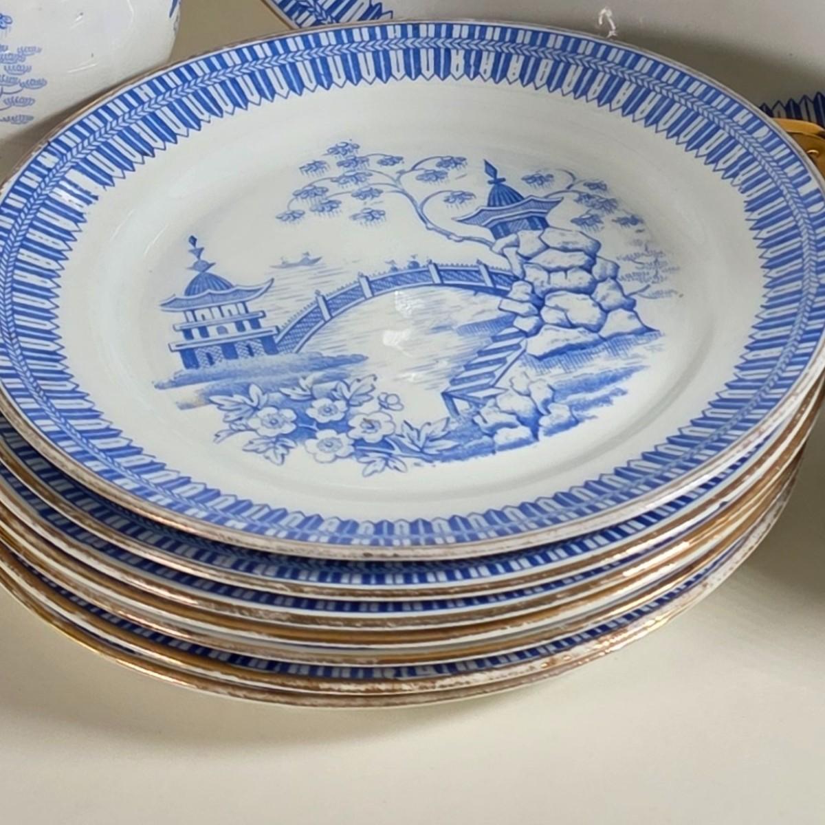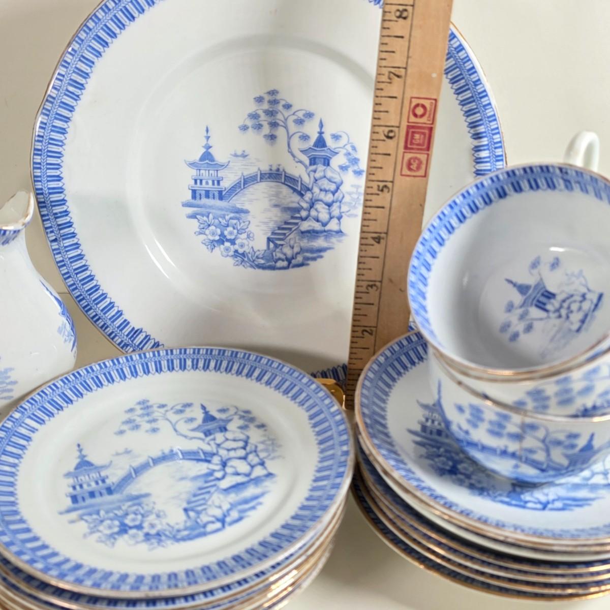 LOT 56D: Antique/Vintage Royal Worcester Blue Willow China, Serving Platter, Plates, Teacups & Creamer