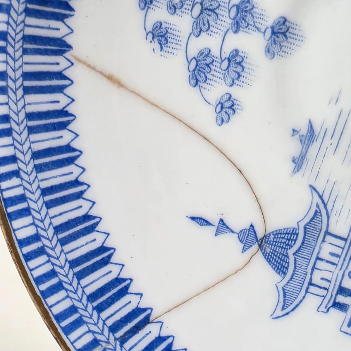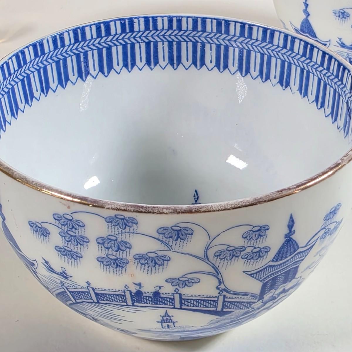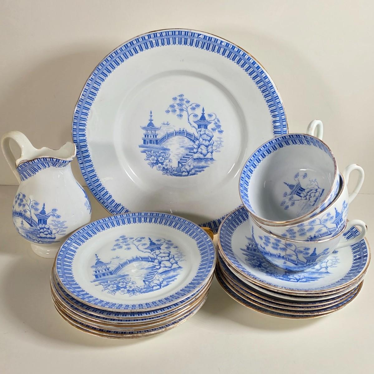 LOT 56D: Antique/Vintage Royal Worcester Blue Willow China, Serving Platter, Plates, Teacups & Creamer
