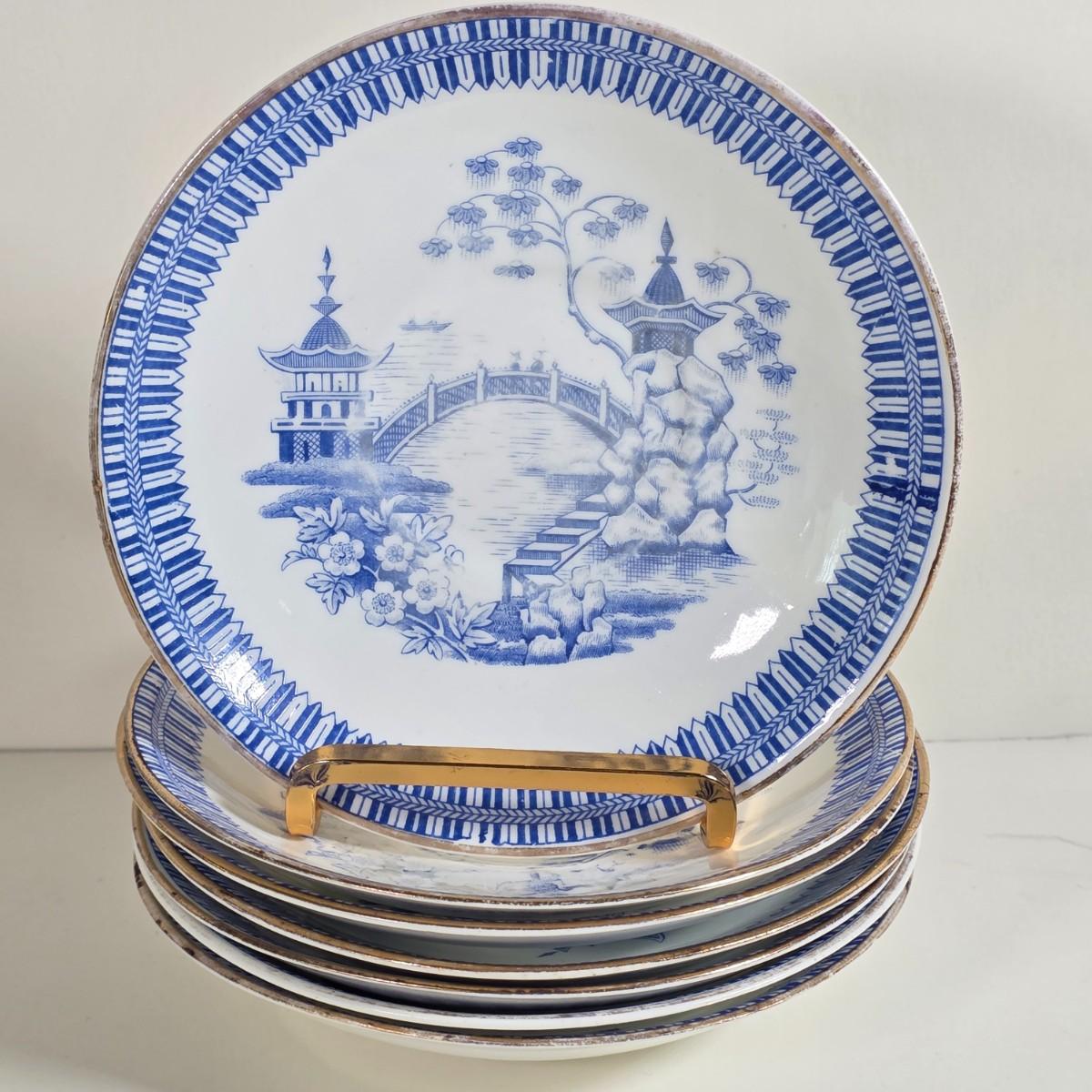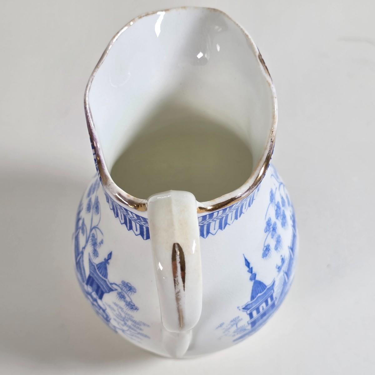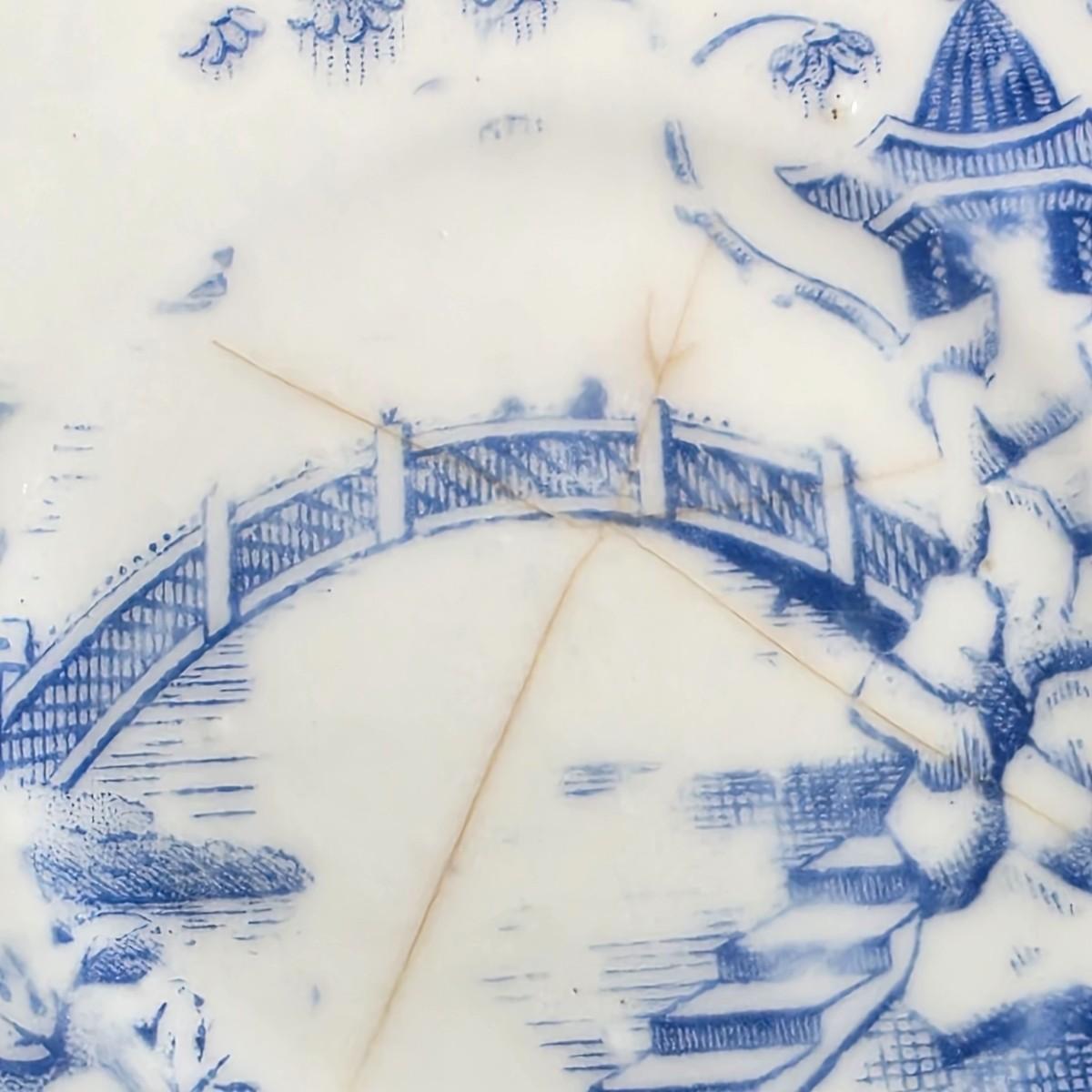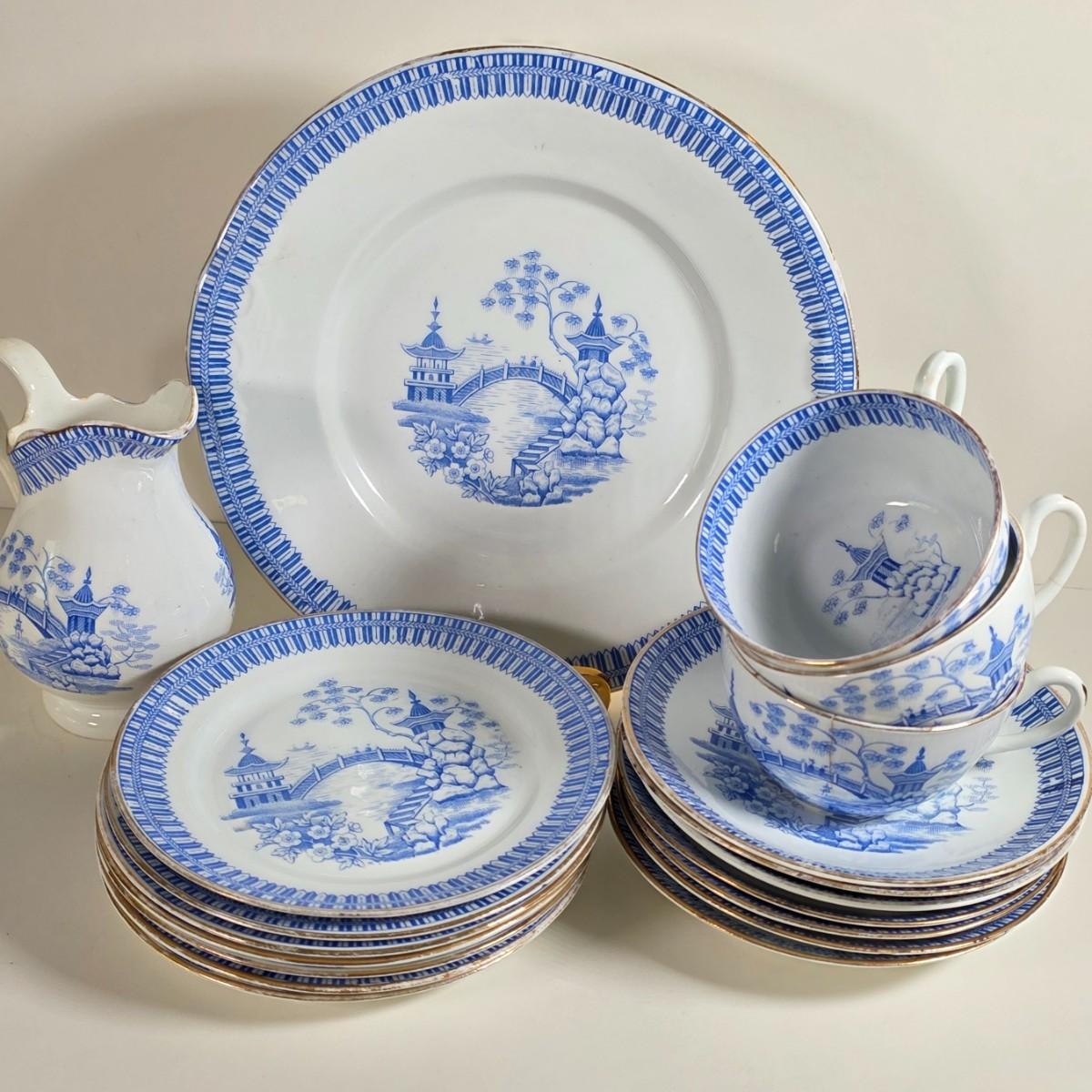 LOT 56D: Antique/Vintage Royal Worcester Blue Willow China, Serving Platter, Plates, Teacups & Creamer