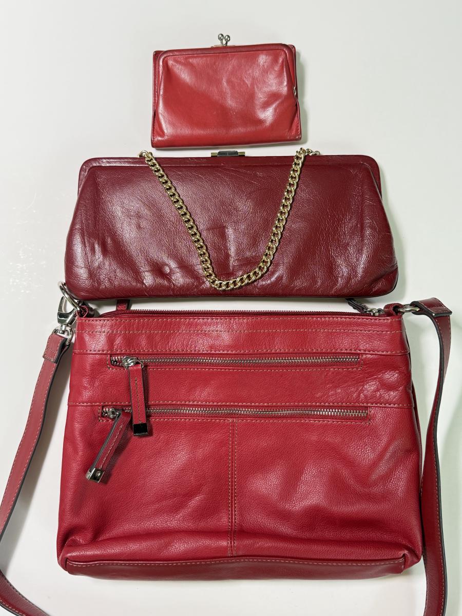 LOT 64L: Red Tignanello Bag, Evening Clutch & Wallet