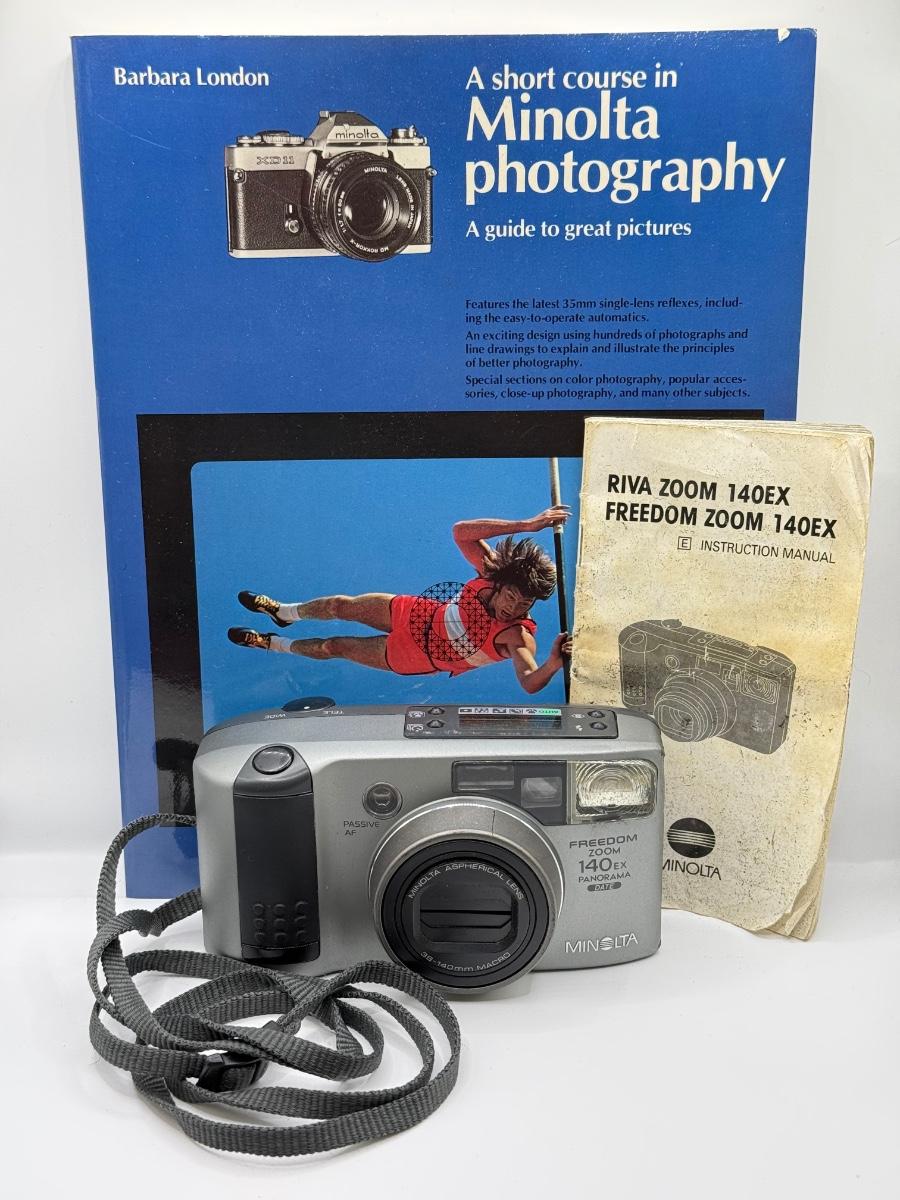 LOT 74D: Vintage Minolta Freedom Zoom 140X 35mm Point & Shoot Film Camera w/ Manual & Minolta Photography Book