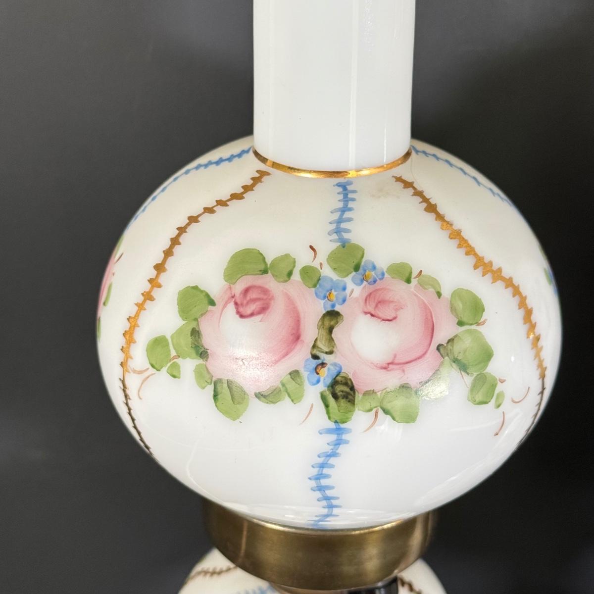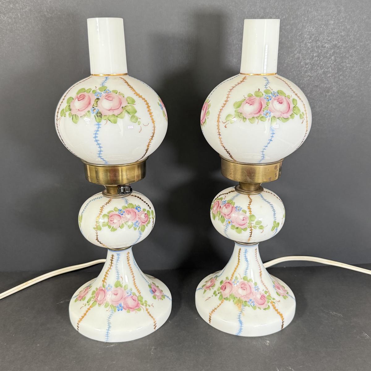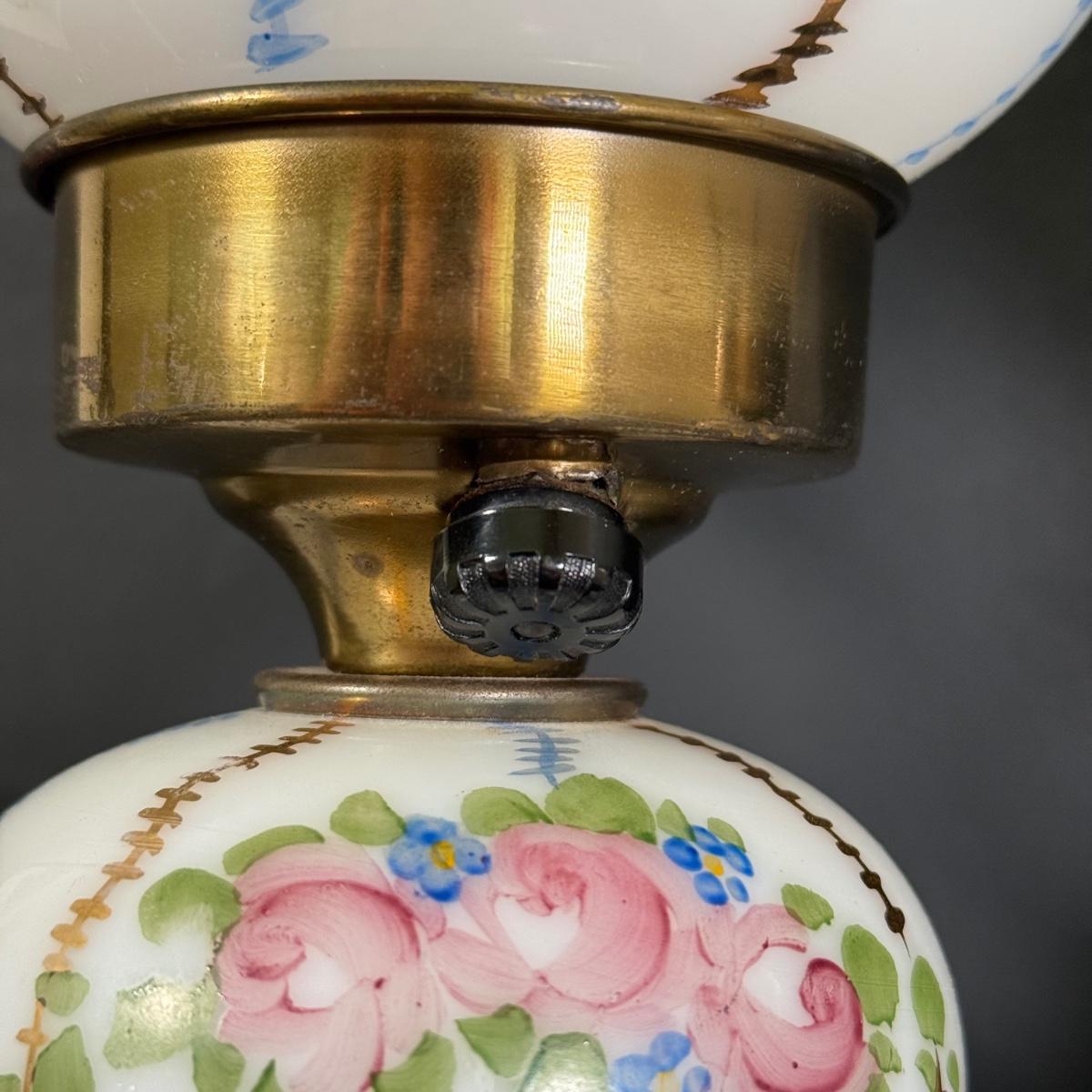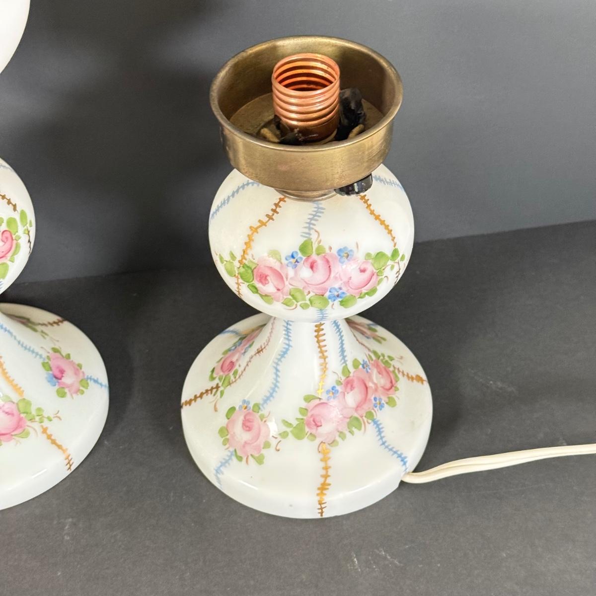 LOT 78L: Pair of Vintage Hand Painted Floral Milk Glass Electric Lamps