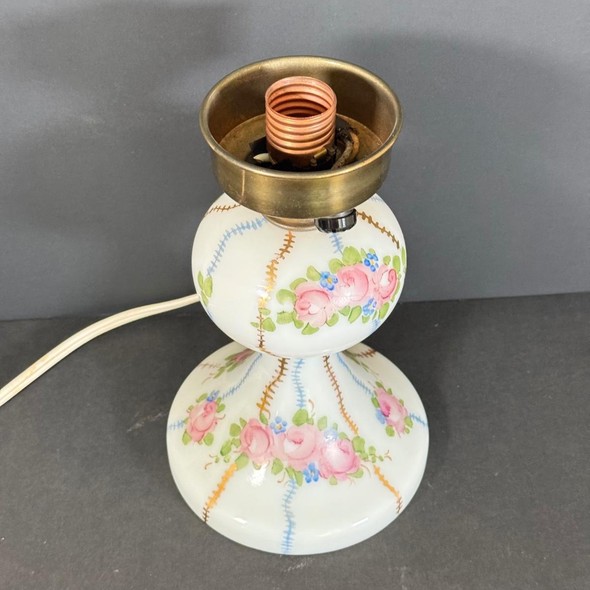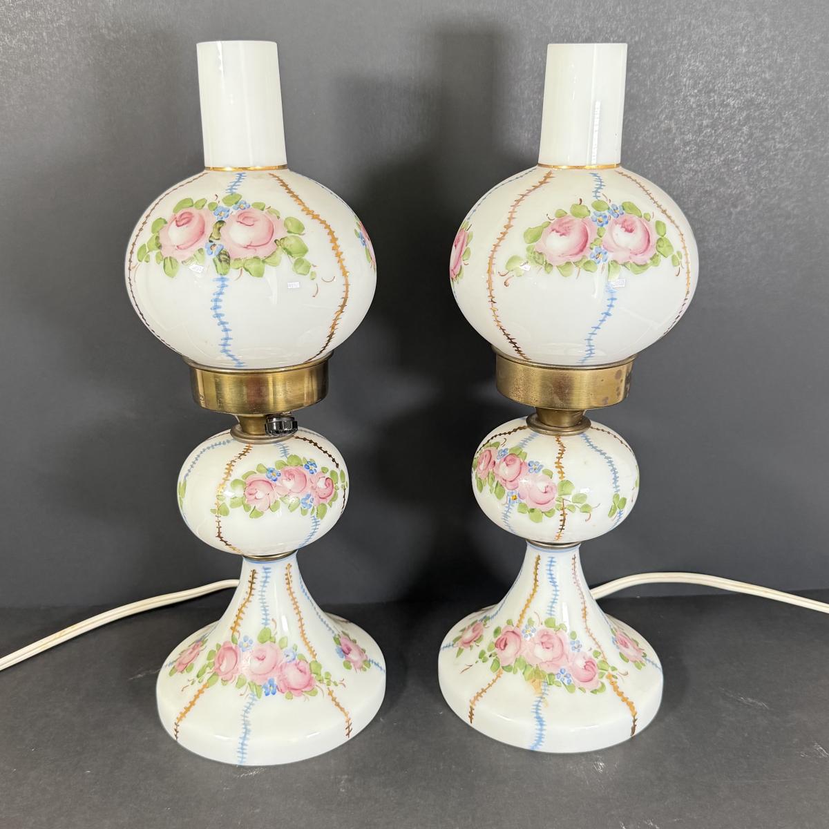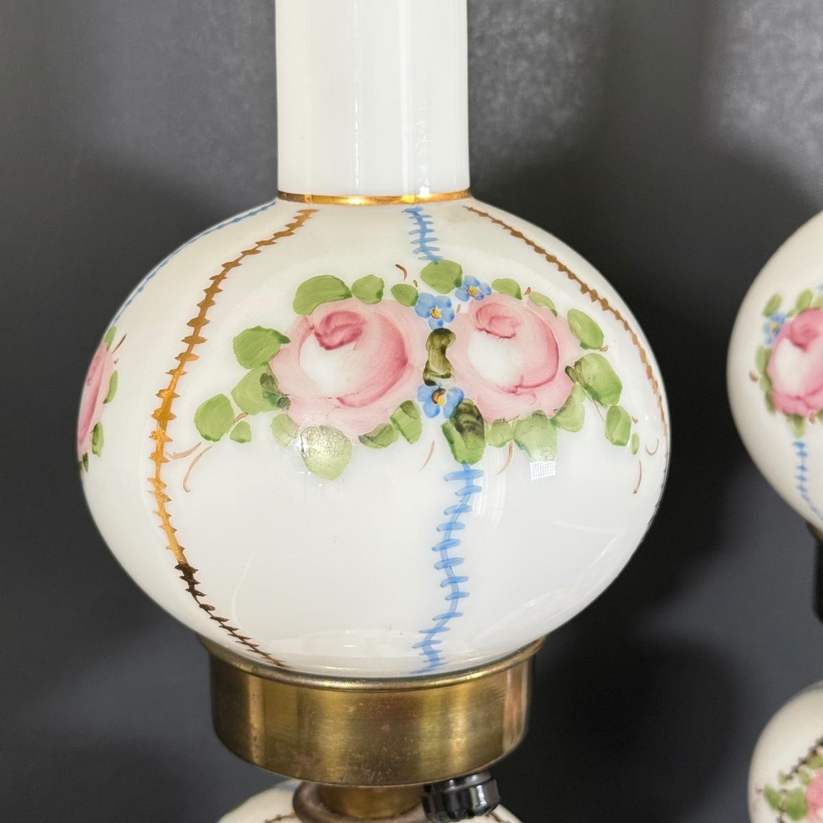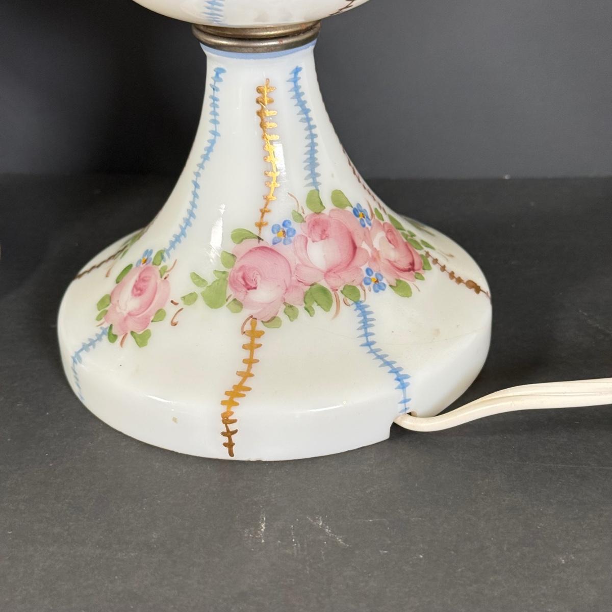 LOT 78L: Pair of Vintage Hand Painted Floral Milk Glass Electric Lamps