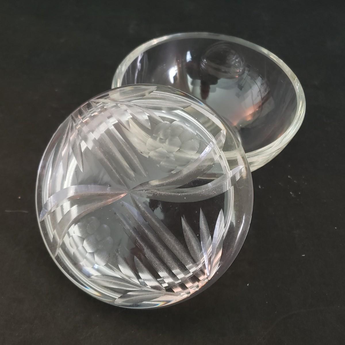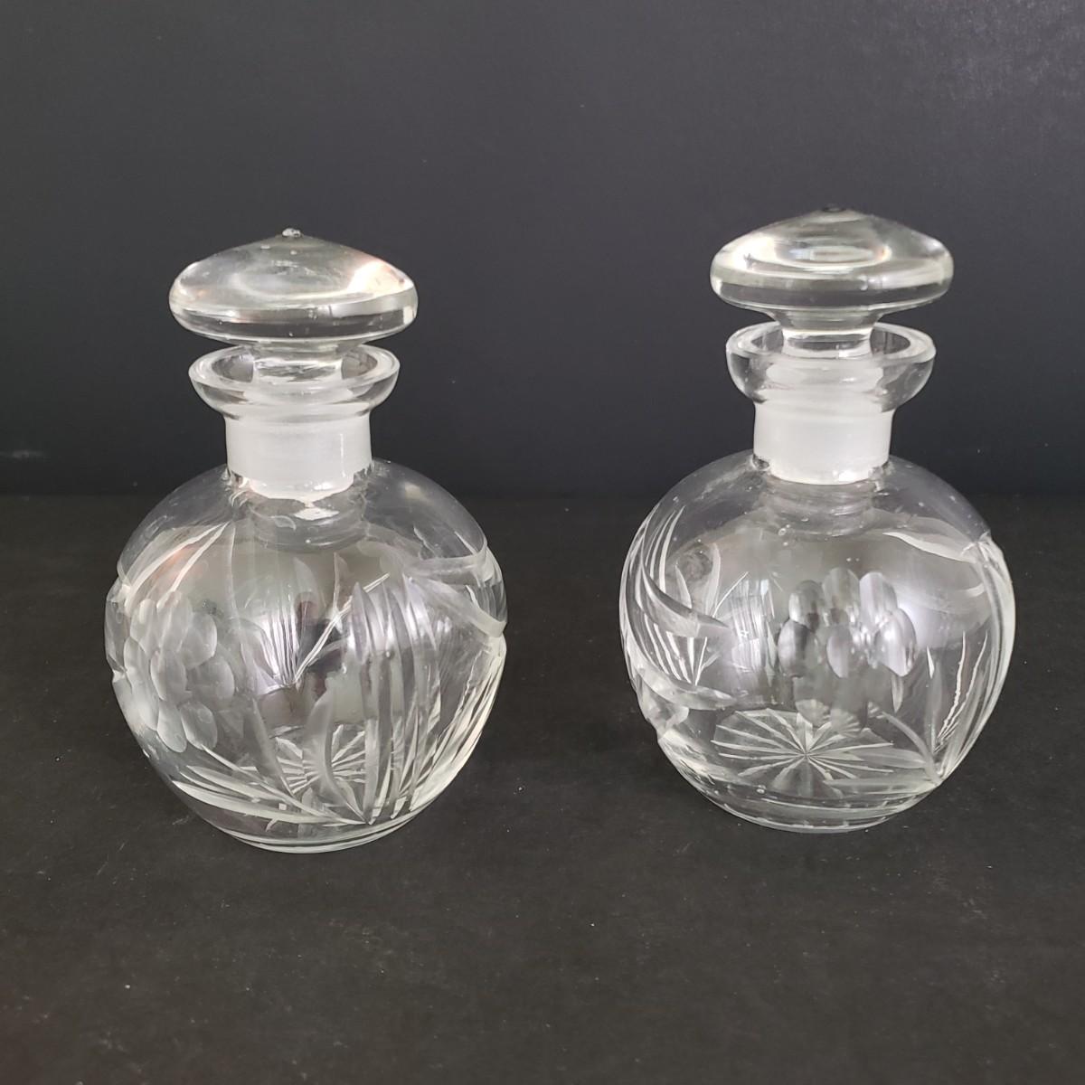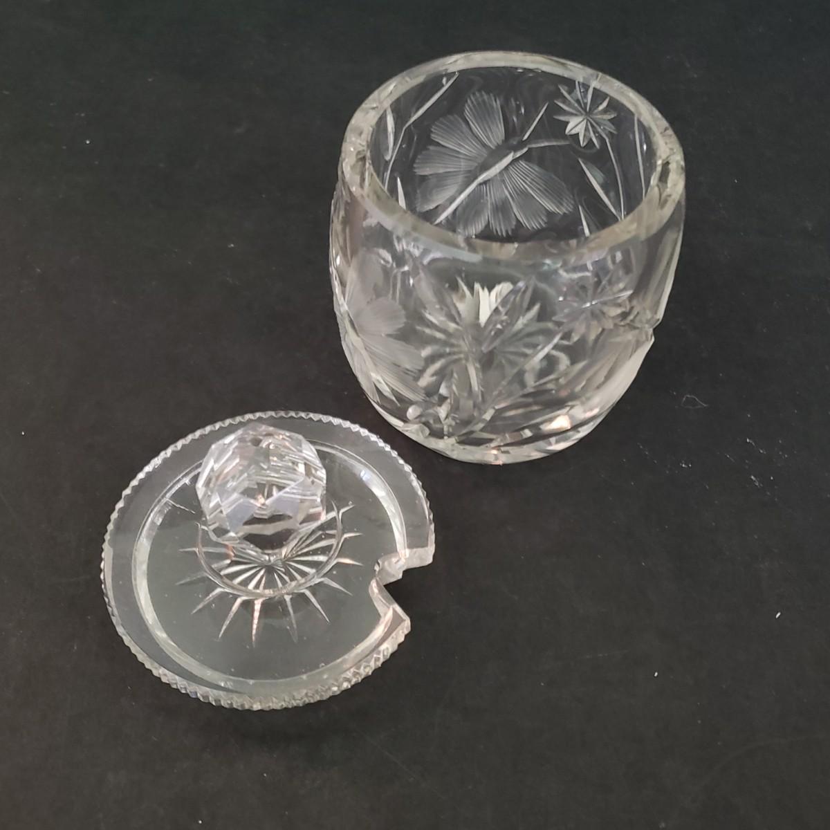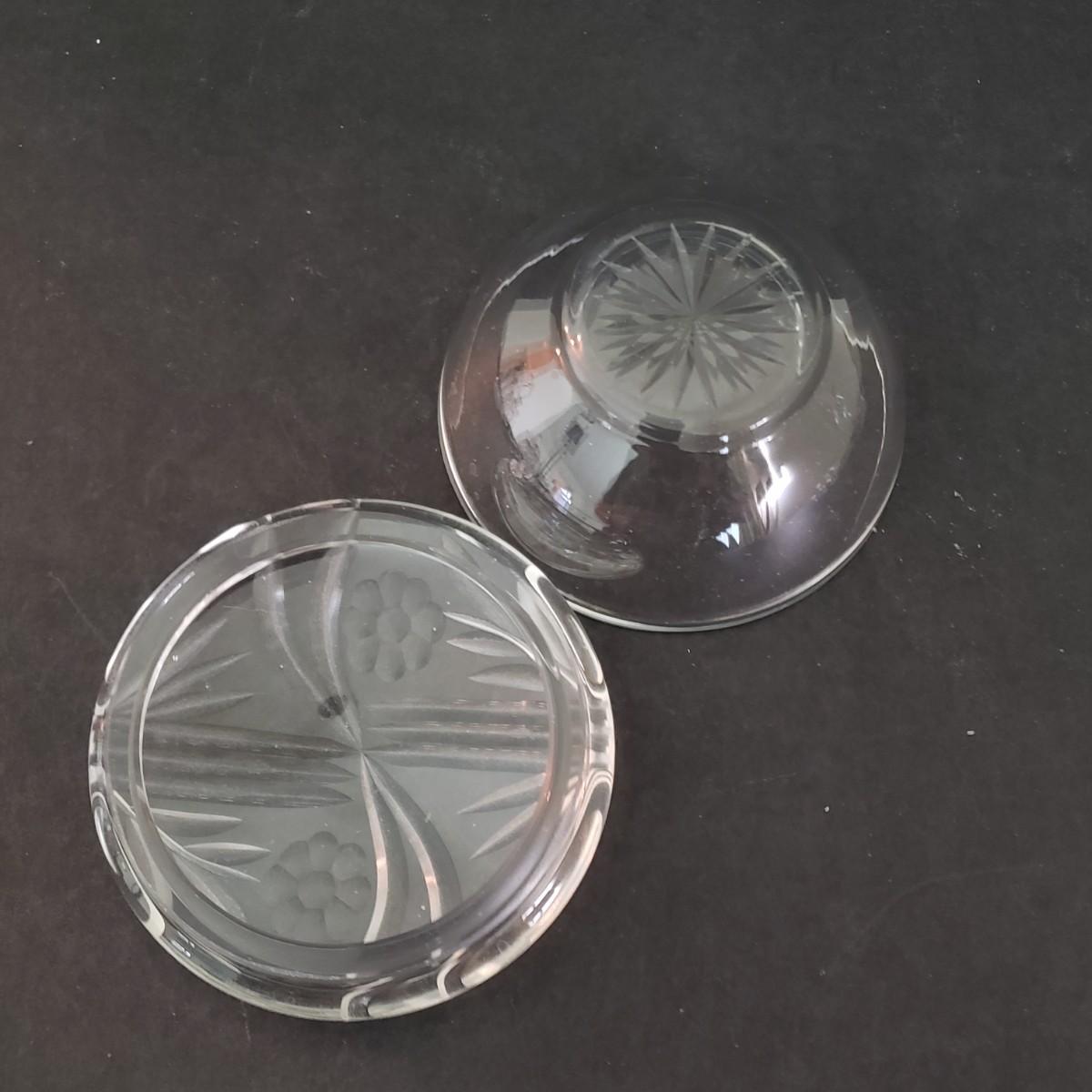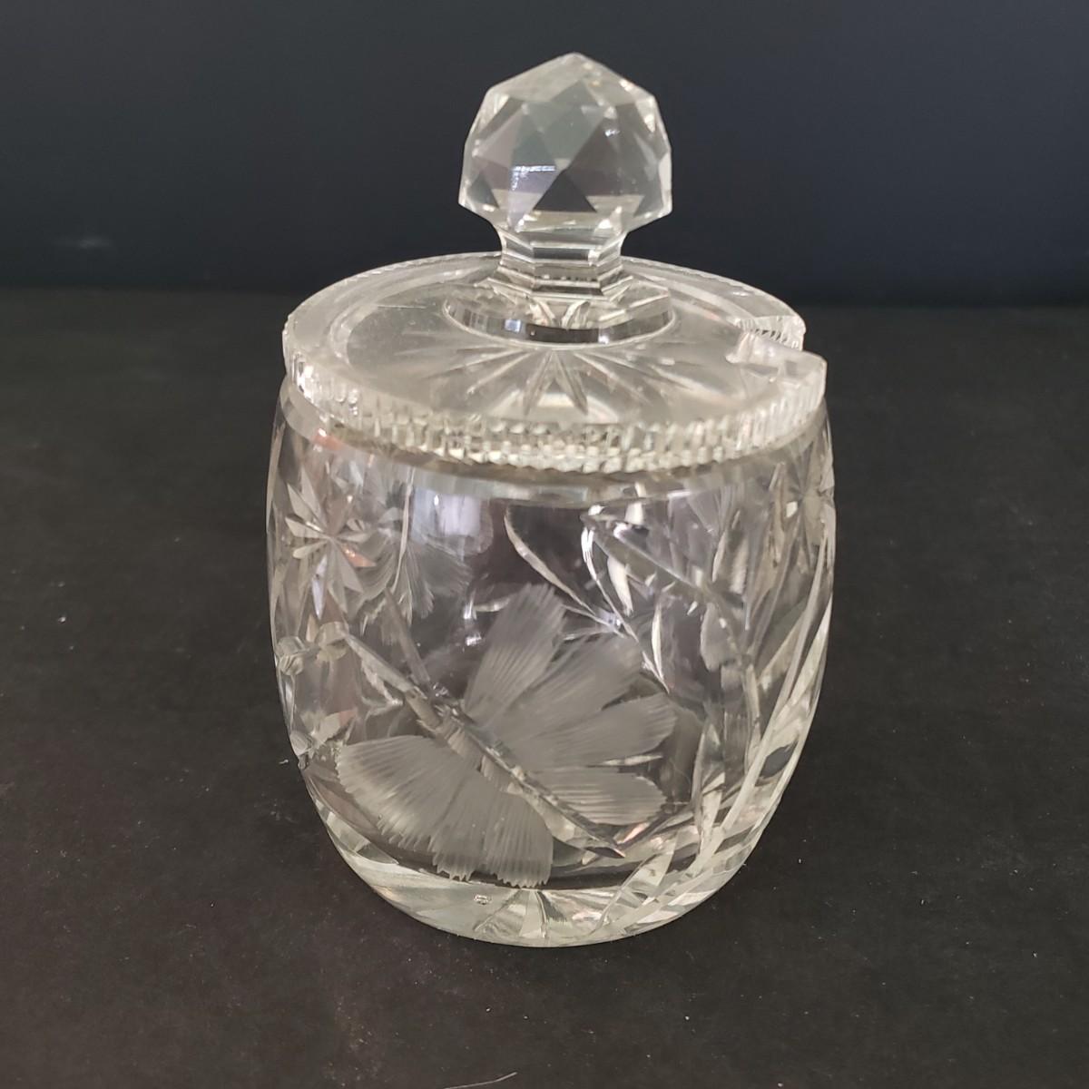LOT 86D: Etched Glass Cruets, Condiment Jar, Trinket Dish, and More