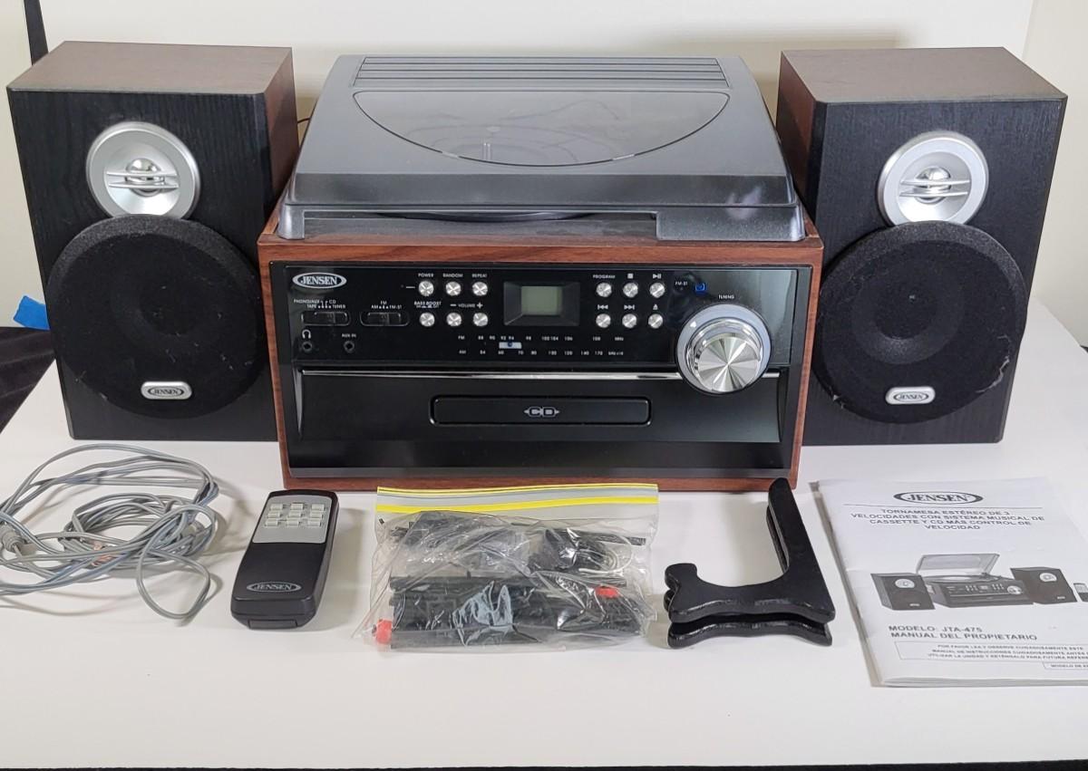 LOT 111L: Jensen JTA-475 3-Speed Turntable with CD, Cassette, and AM/FM Stereo Radio