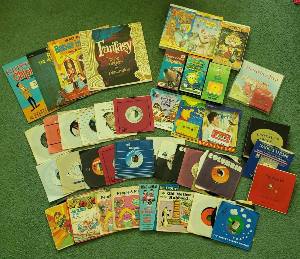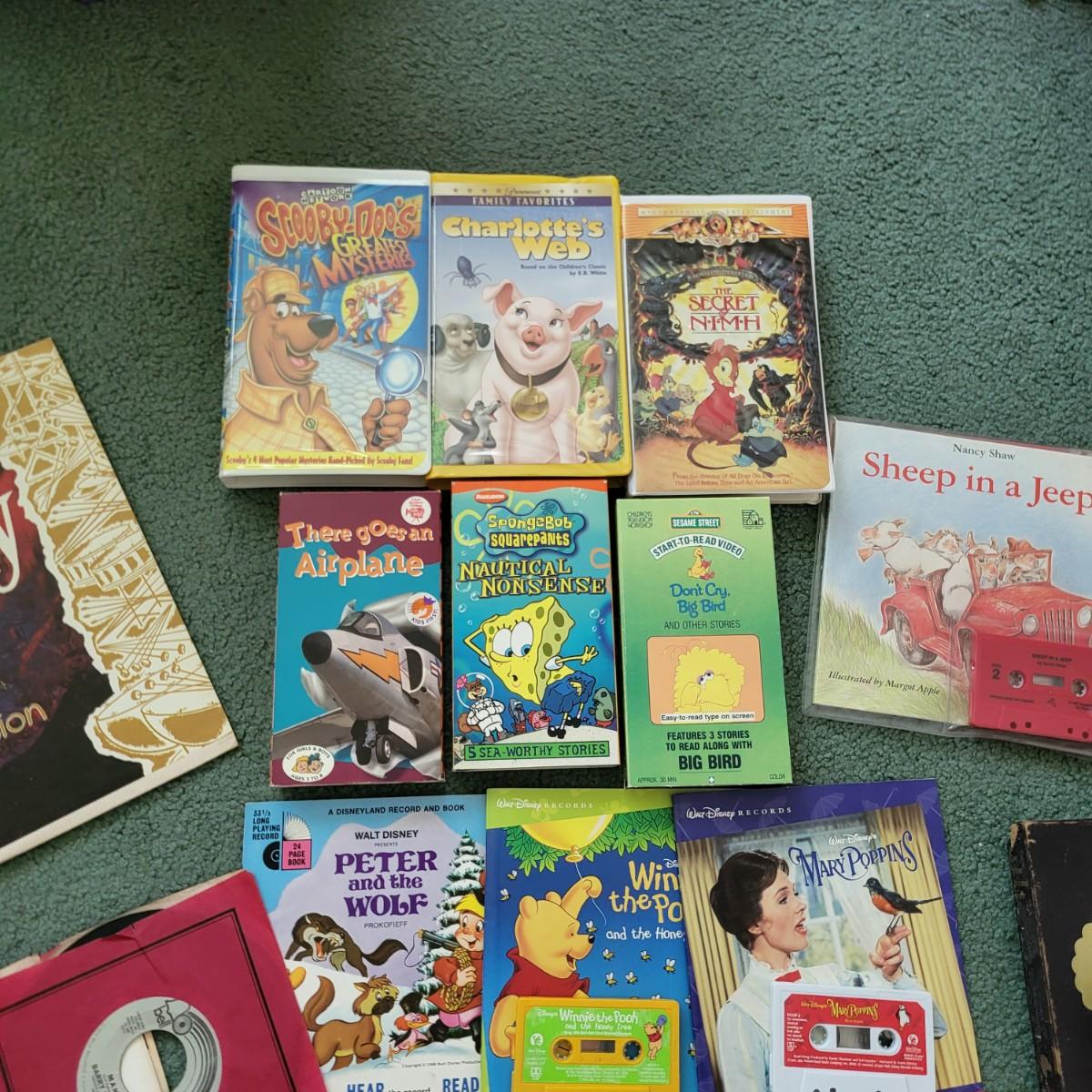 LOT 112L: Assorted Vintage Children VHS Tapes and Vinyl Records