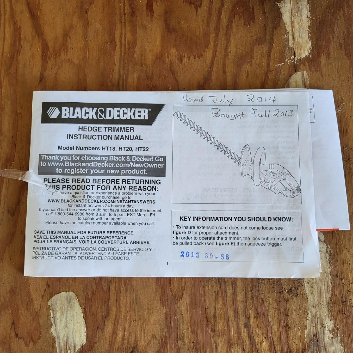 LOT 116G: Black and Decker HT22 Hedge Trimmer