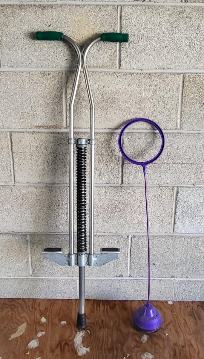 LOT 117G: Vintage Metal POGO Stick and Purple Skip It Toy