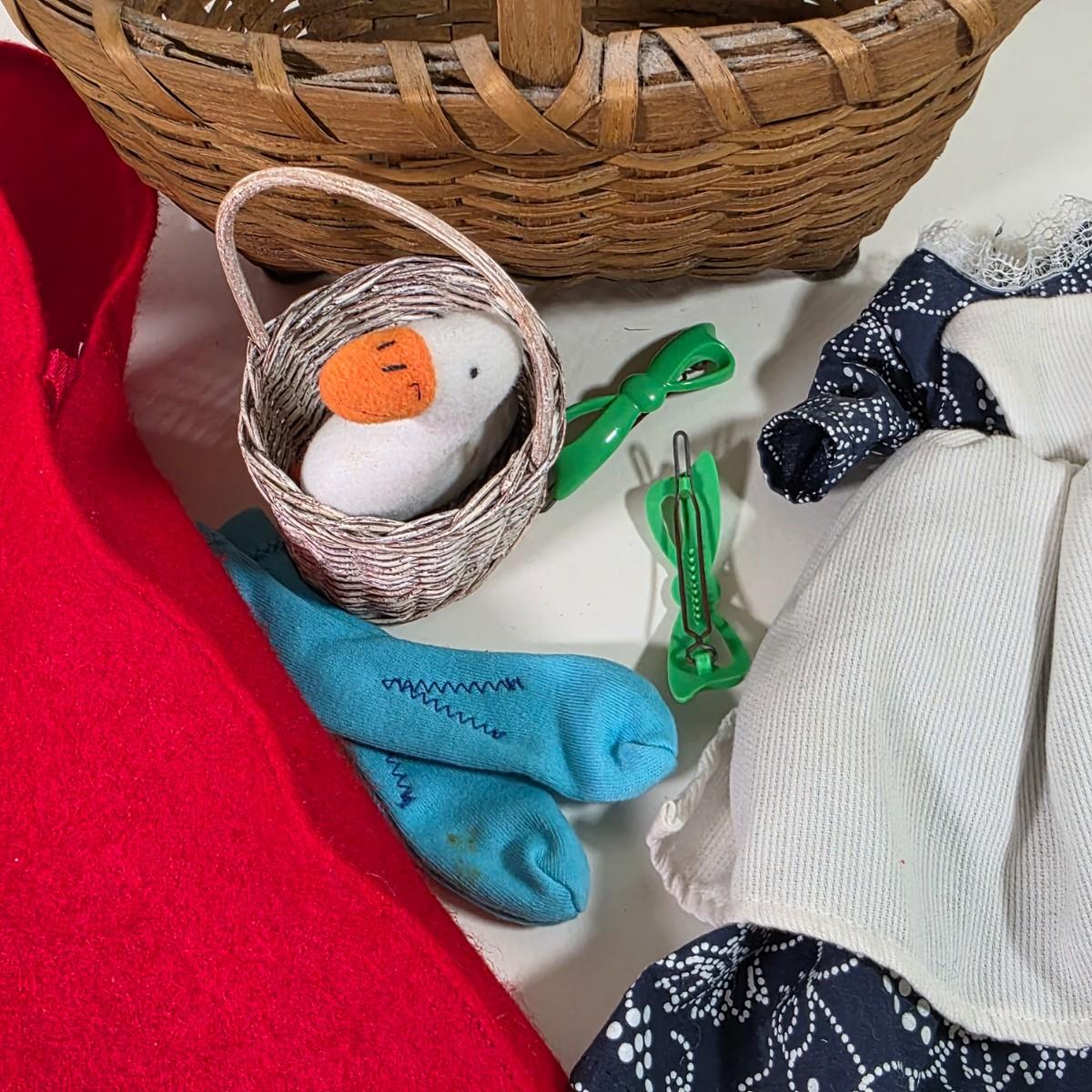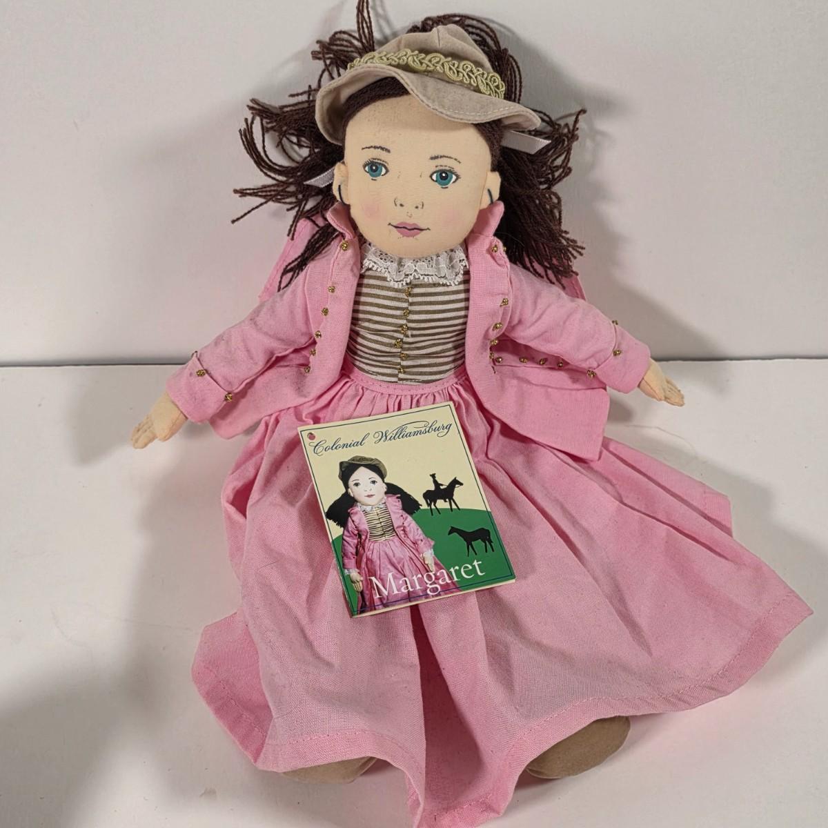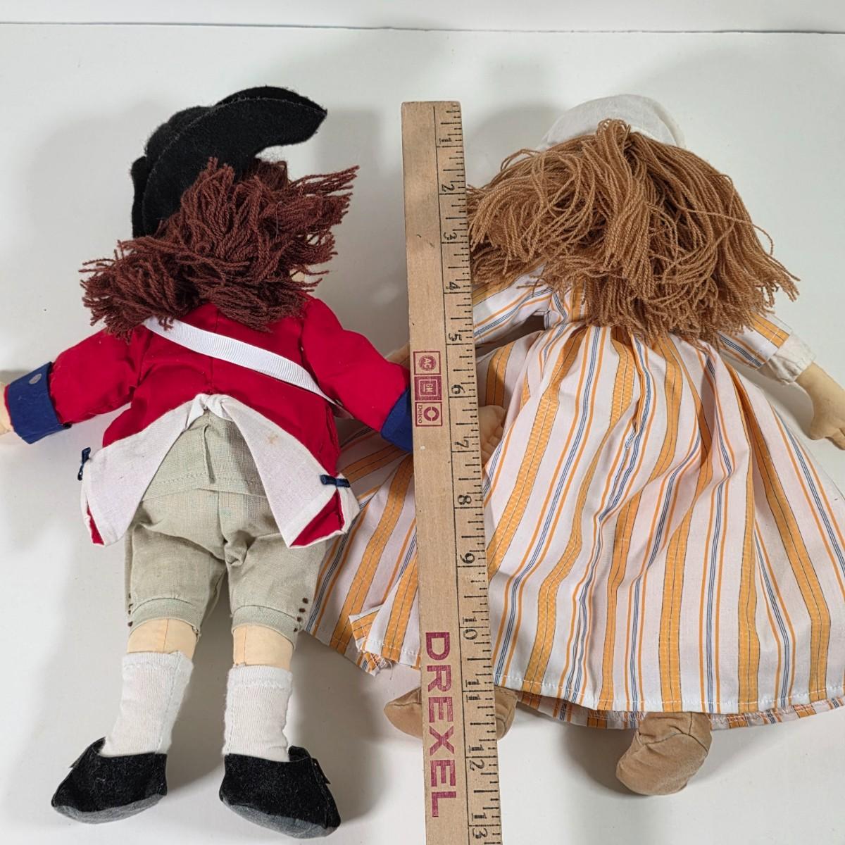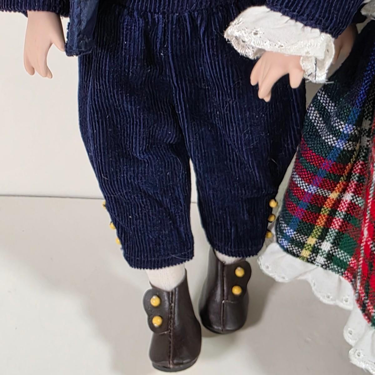 LOT 141D: Vintage Doll Collection W/Basket of Accessories, Including Heritage Signature Collection Erik & Eva Ski Dolls and Merry Makers Colonial Williamsburg Dolls