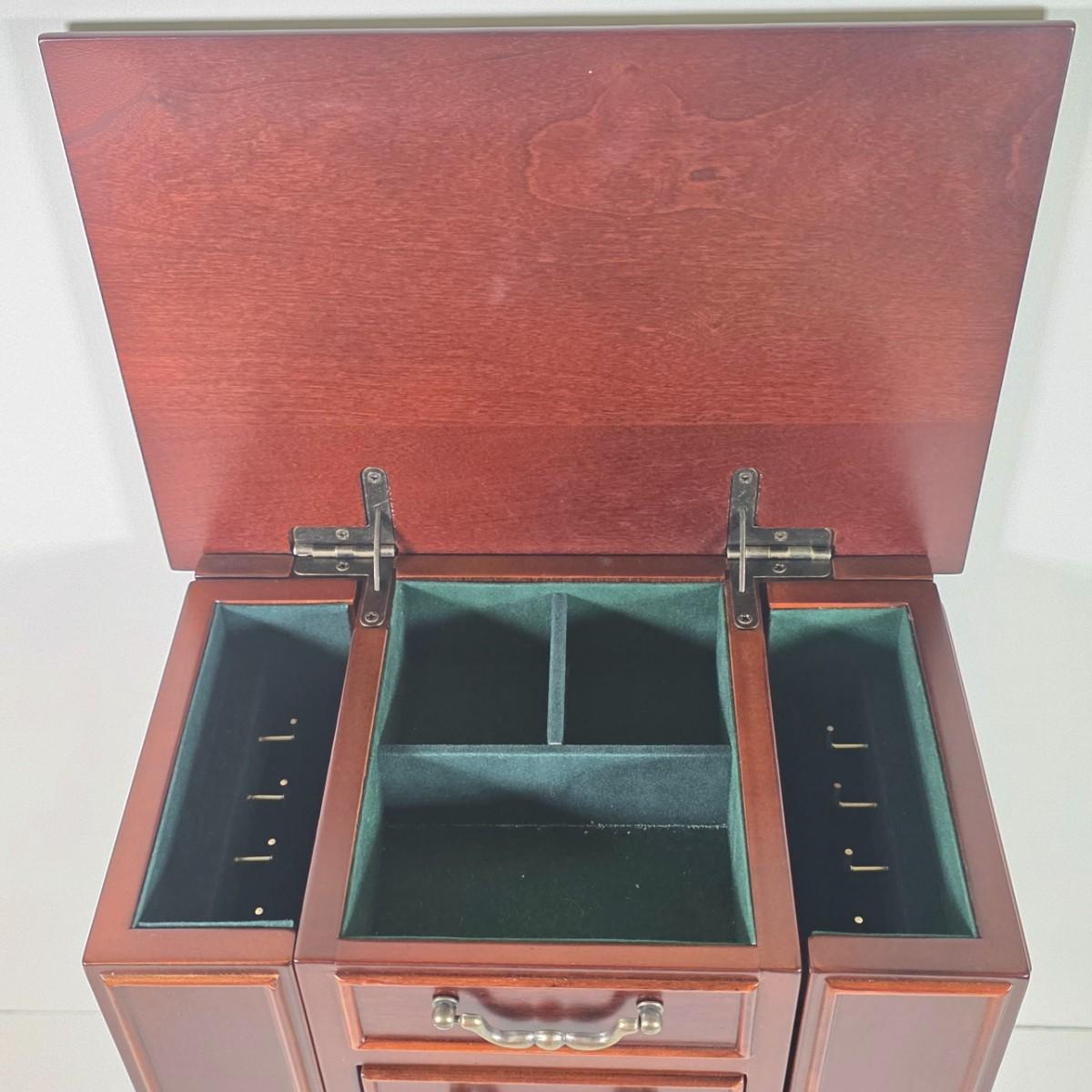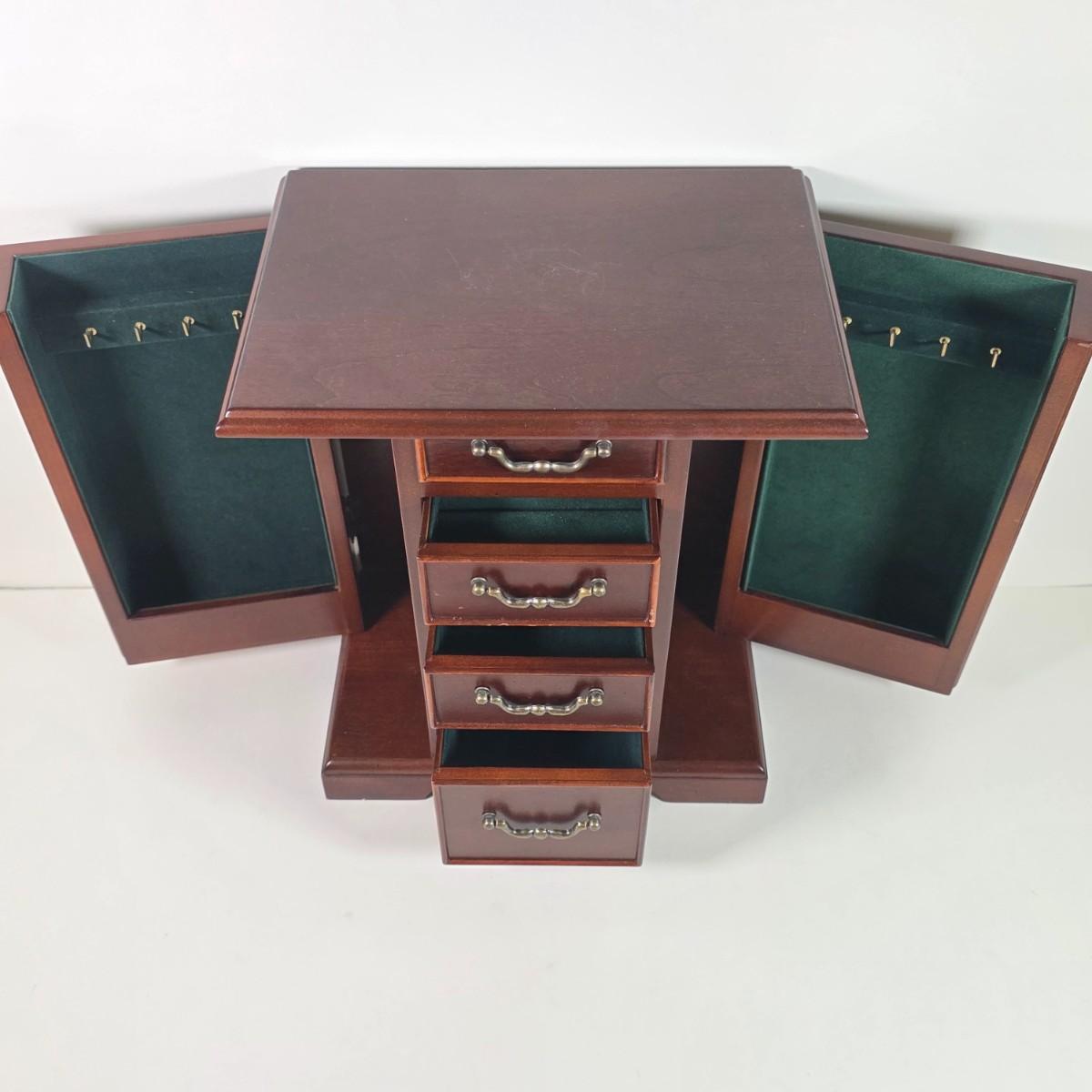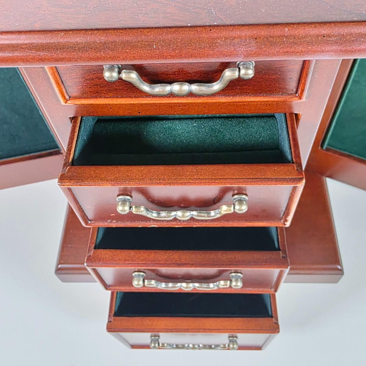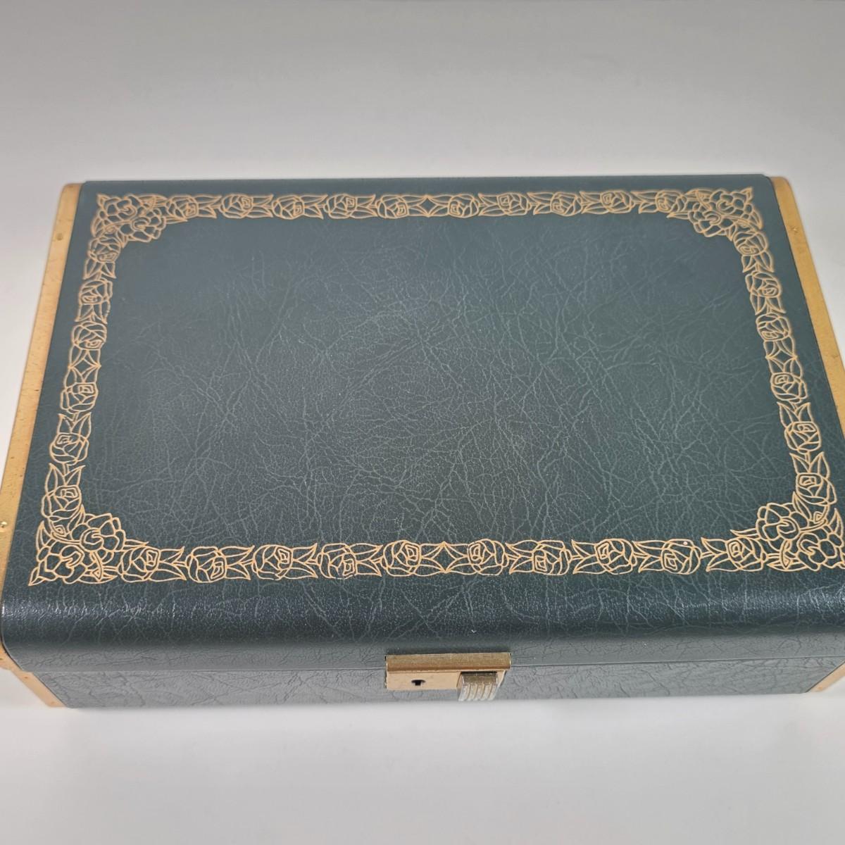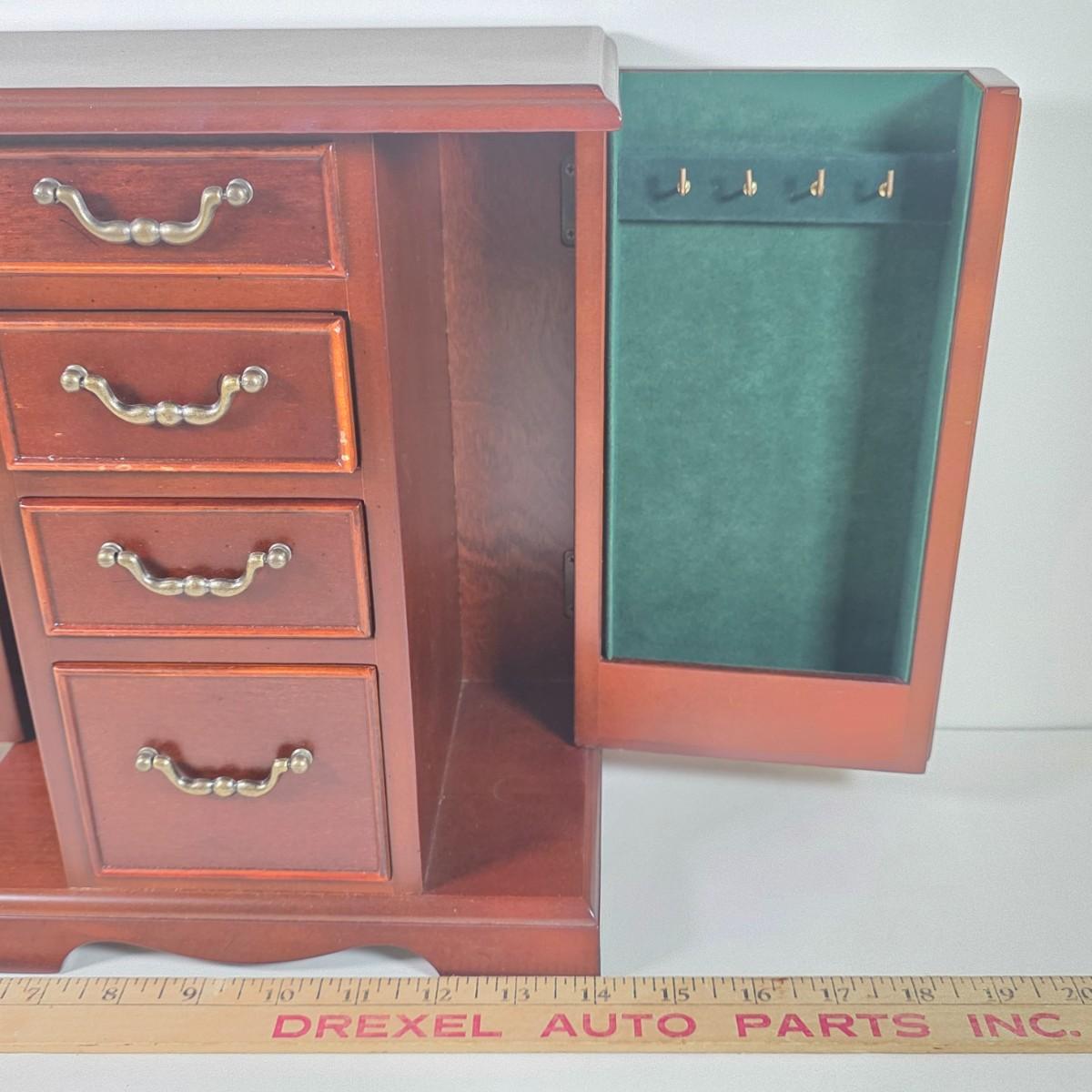 LOT 153D: Vintage Jewelry Boxes, Green Leather/ Gold Embossed Farrington Jewelry Box Filled W/Unique Costume Jewelry & More, Plus a Wood Bombay Company Armoire Jewelry Box